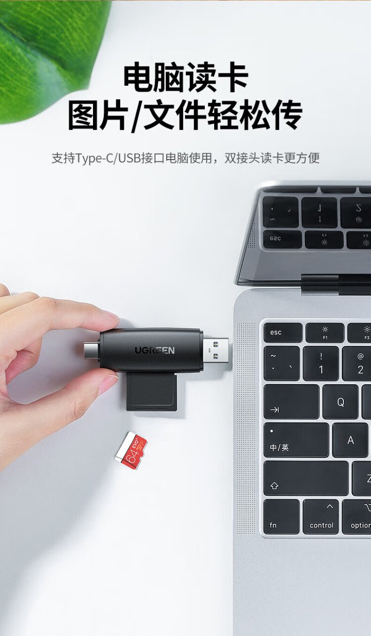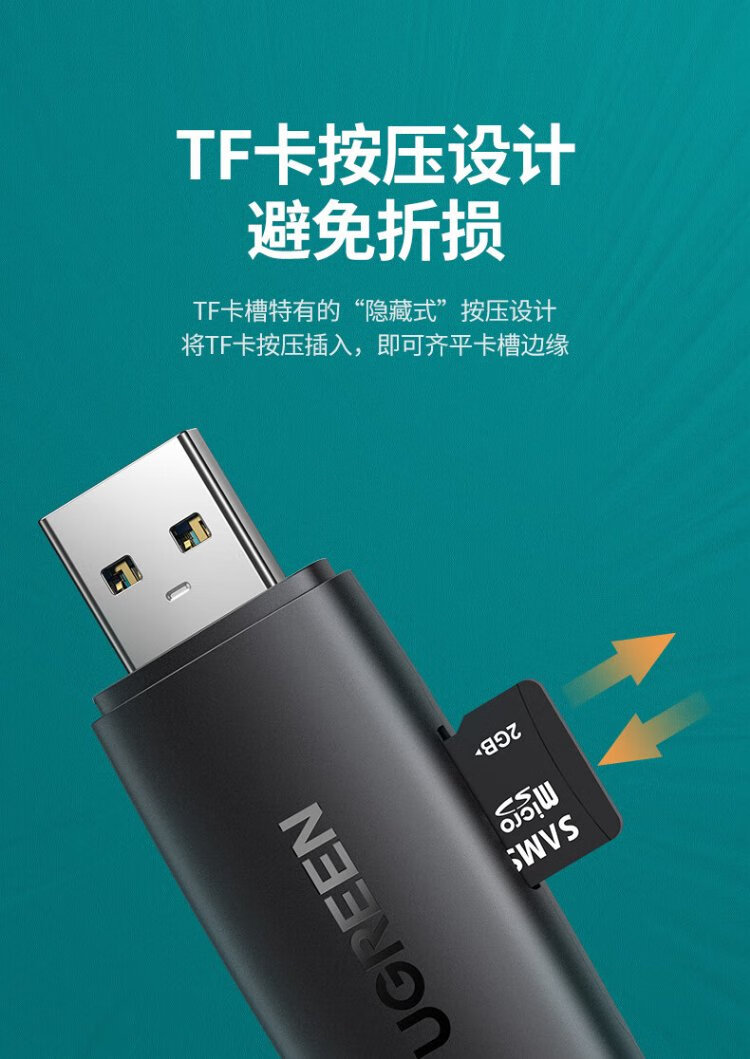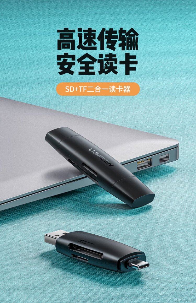 绿联 USB3.0读卡器高速TF/SD多功能二合一2.0读卡器支持单反相机行车记录仪安防监控OTG手机iPad内存卡 【USB+Type-C】3.0双卡单读