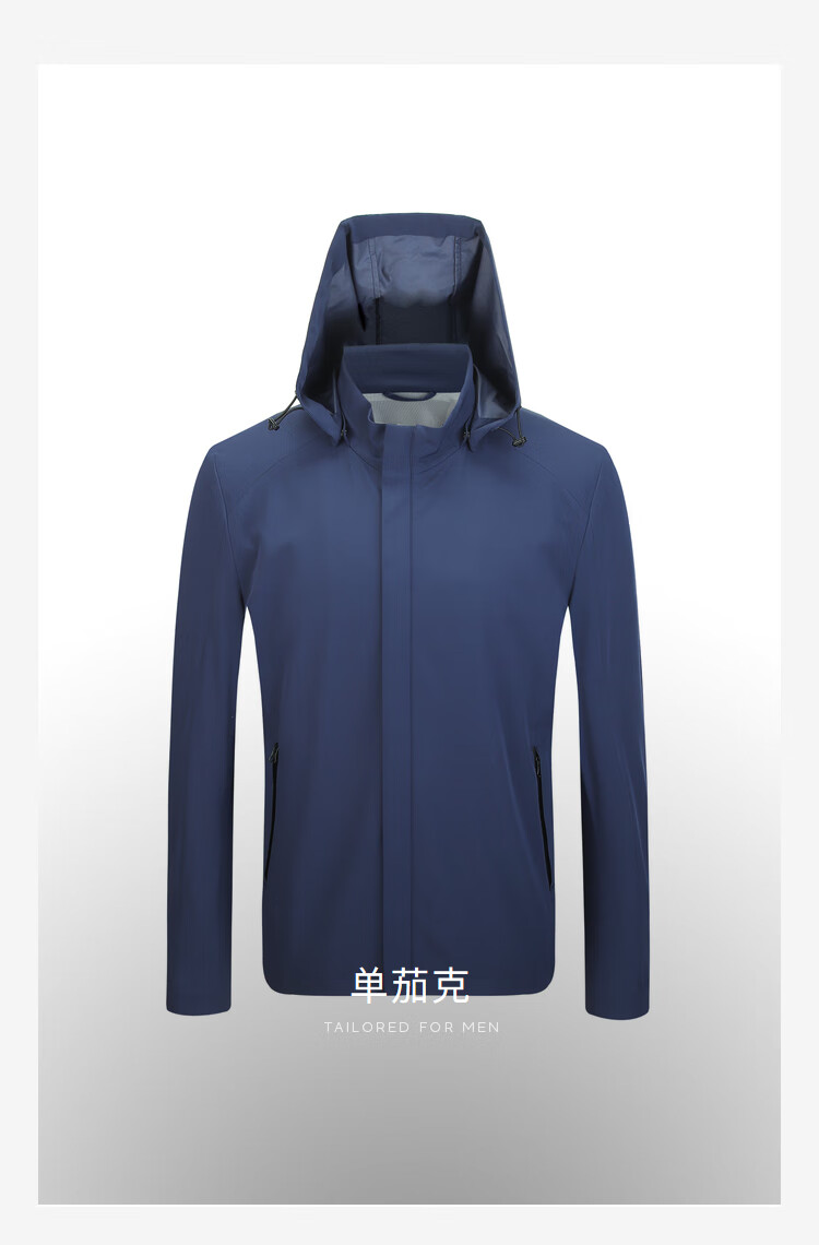 YOUNGOR single executive jacket men's stand-up collar hooded removable single jacket polyester fiber not easy to wrinkle, shape-keeping, elastic and durable VJJK424974FQA navy blue M 170/92A