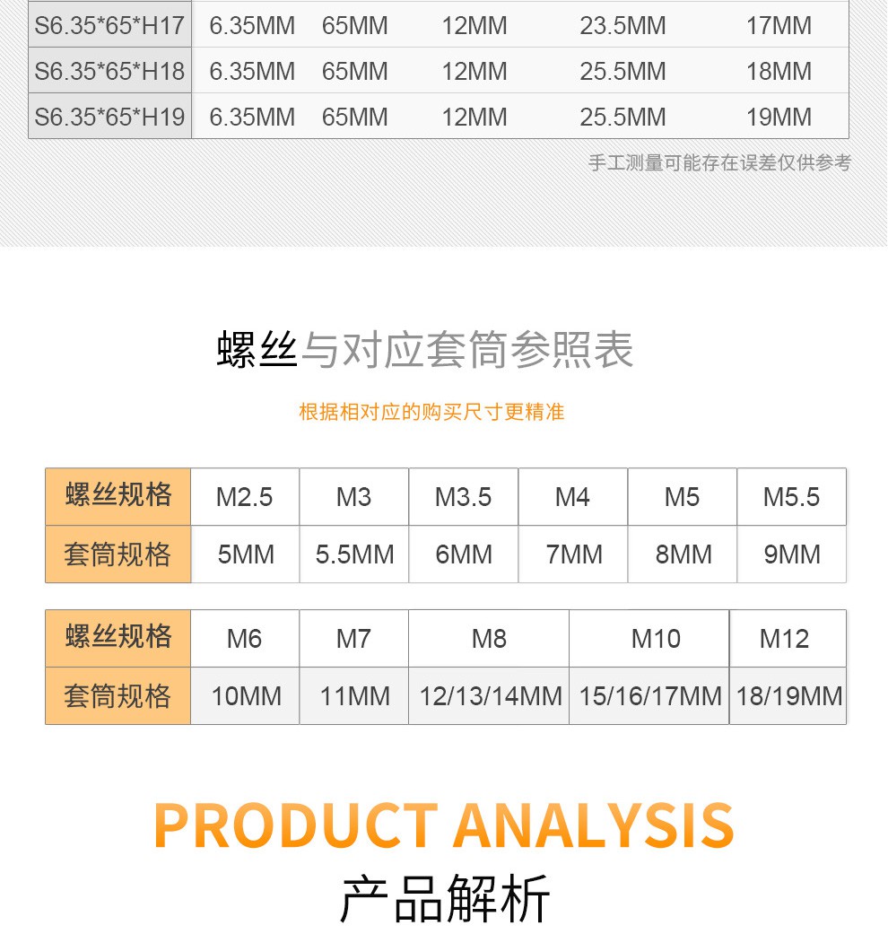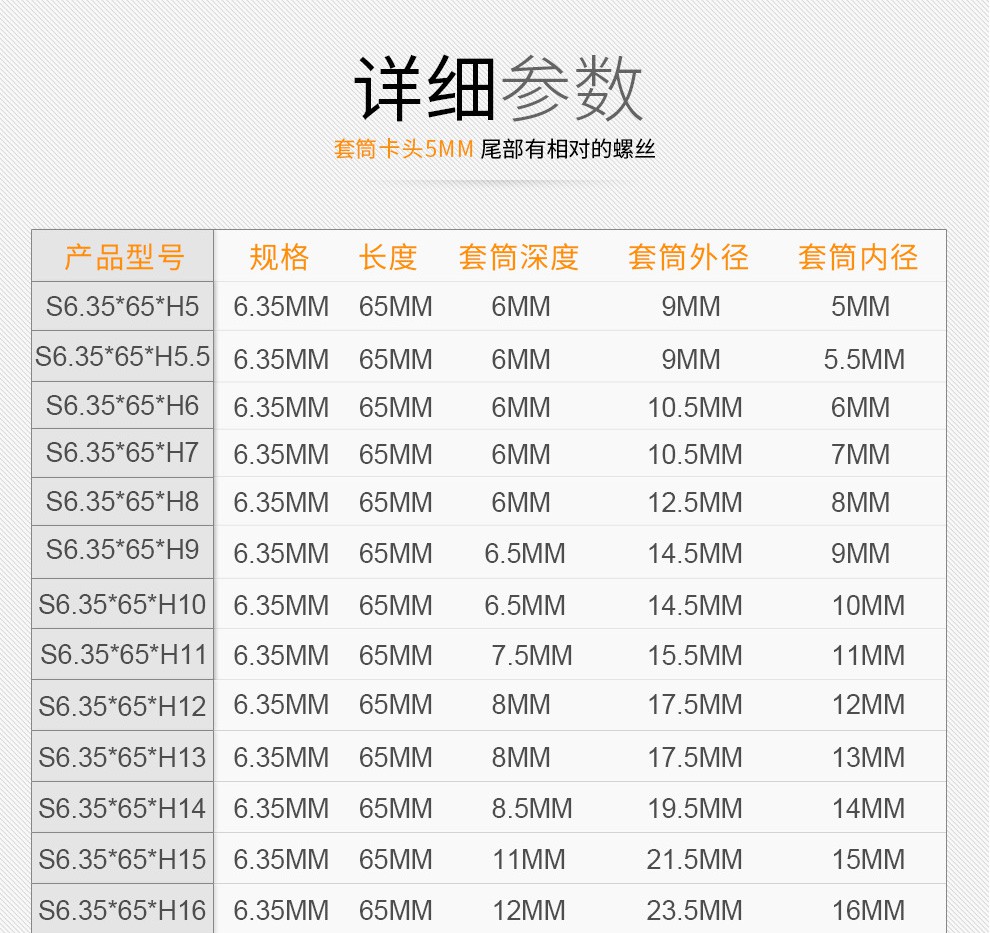 HB Hanbon style external hexagonal electric screwdriver 6.35mm inner hexagonal socket bit 1/4 electric screwdriver S6.35*65*H8*5 only