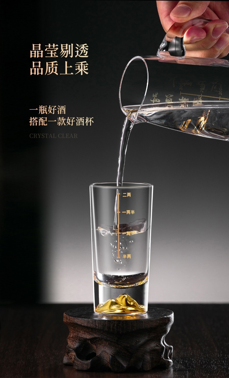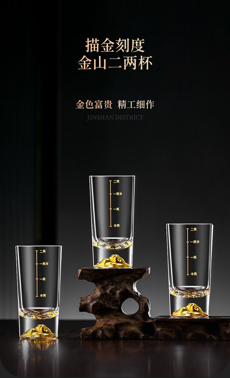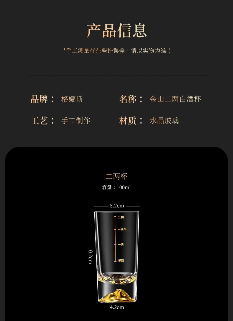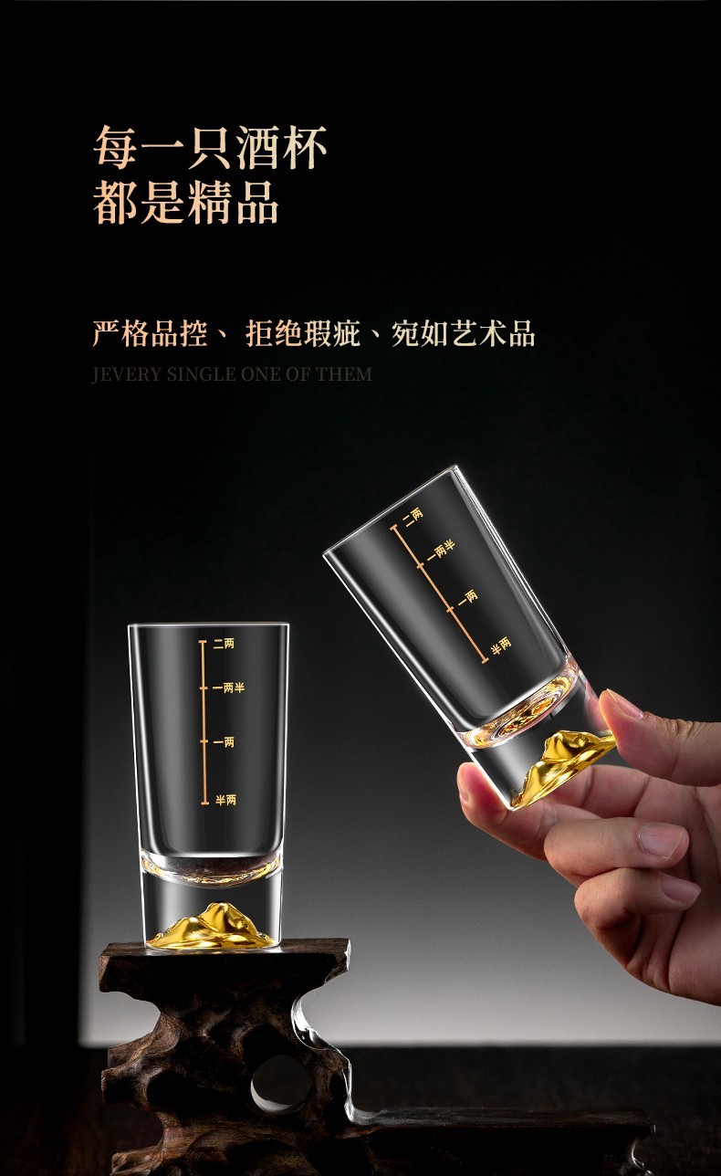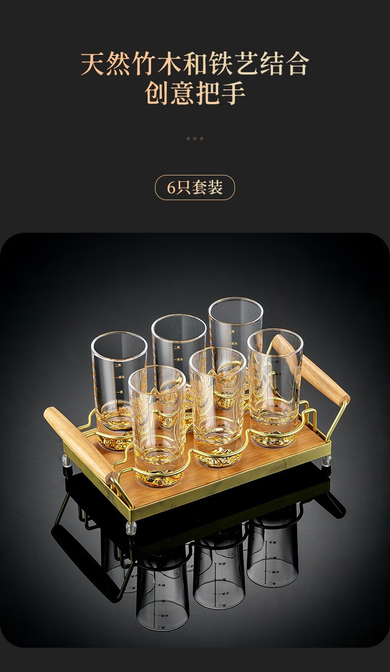 Genas Jinshan Erliang white wine glass set with scale wine divider for home use 2 liang crystal glass high-end wine glass 100ml Jinshan Erliang cup 6 pieces + gold cup holder