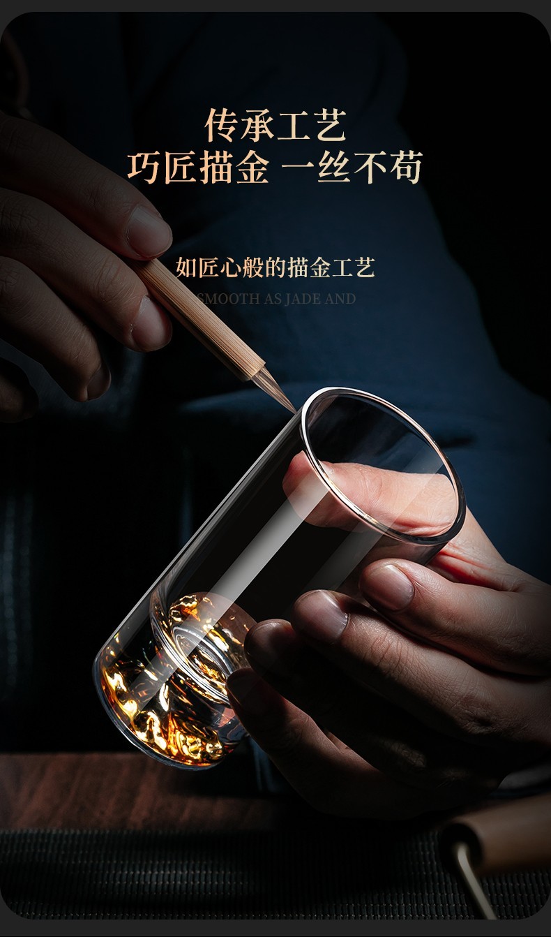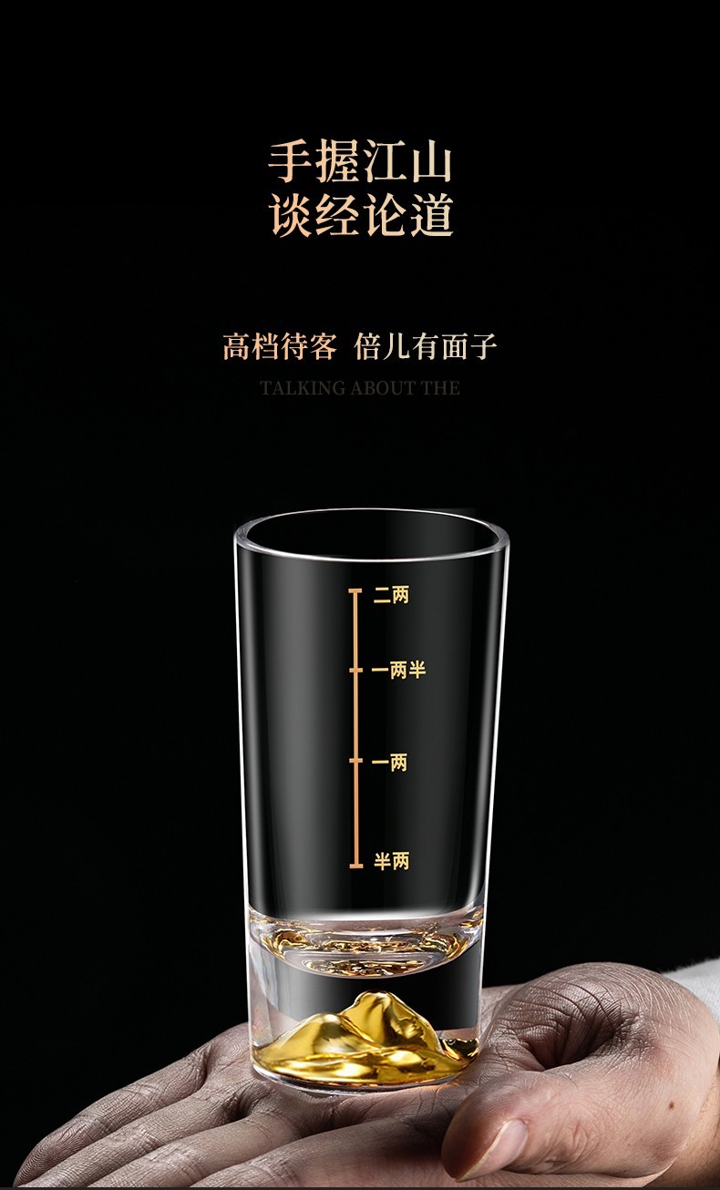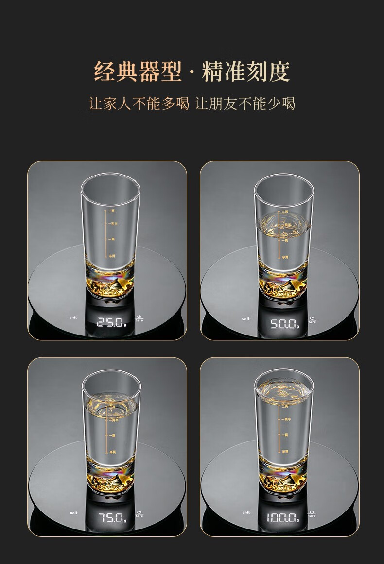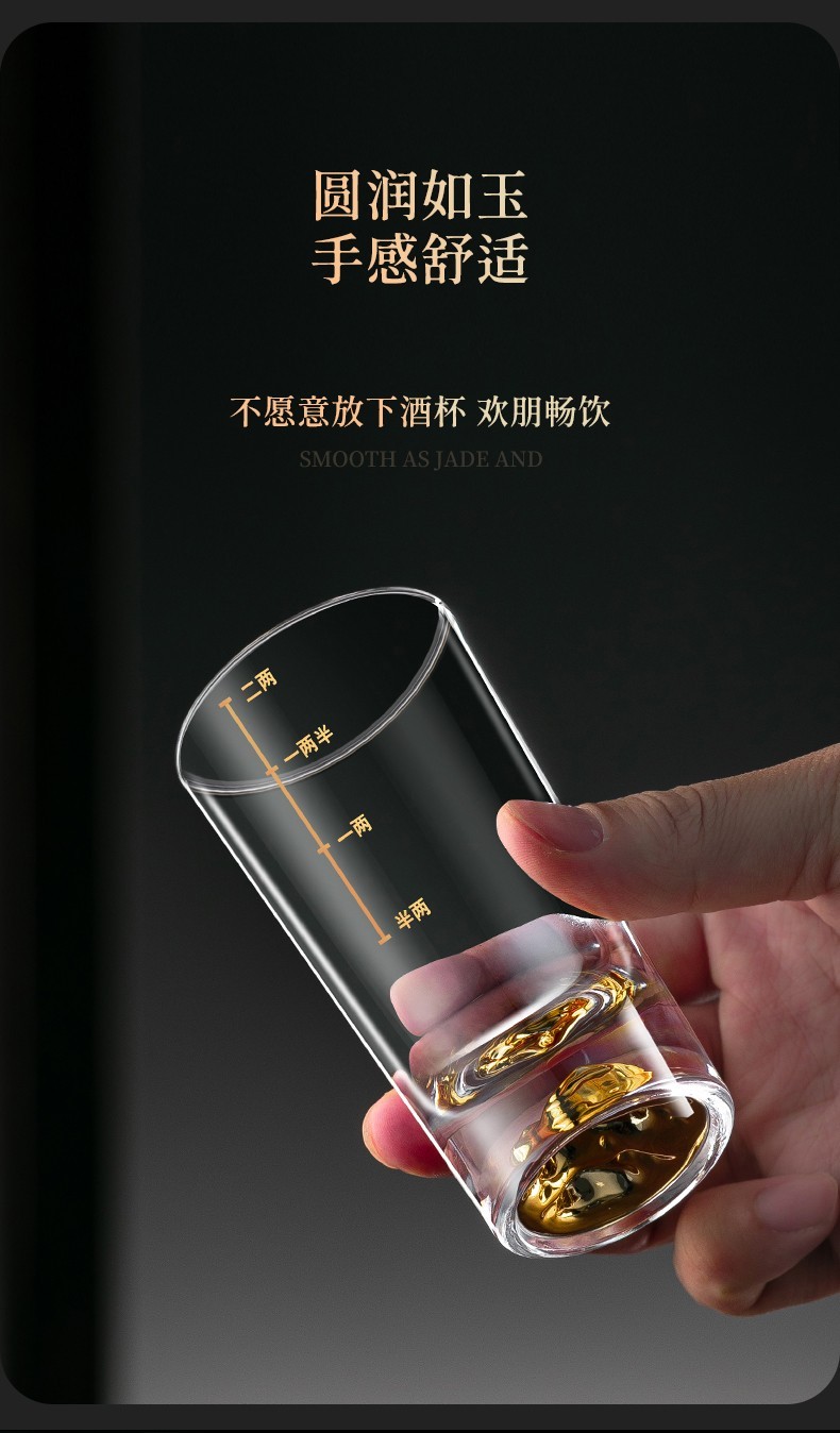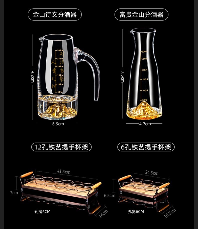 Genas Jinshan Erliang white wine glass set with scale wine divider for home use 2 liang crystal glass high-end wine glass 100ml Jinshan Erliang cup 6 pieces + gold cup holder