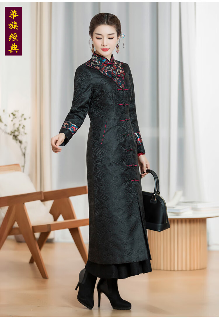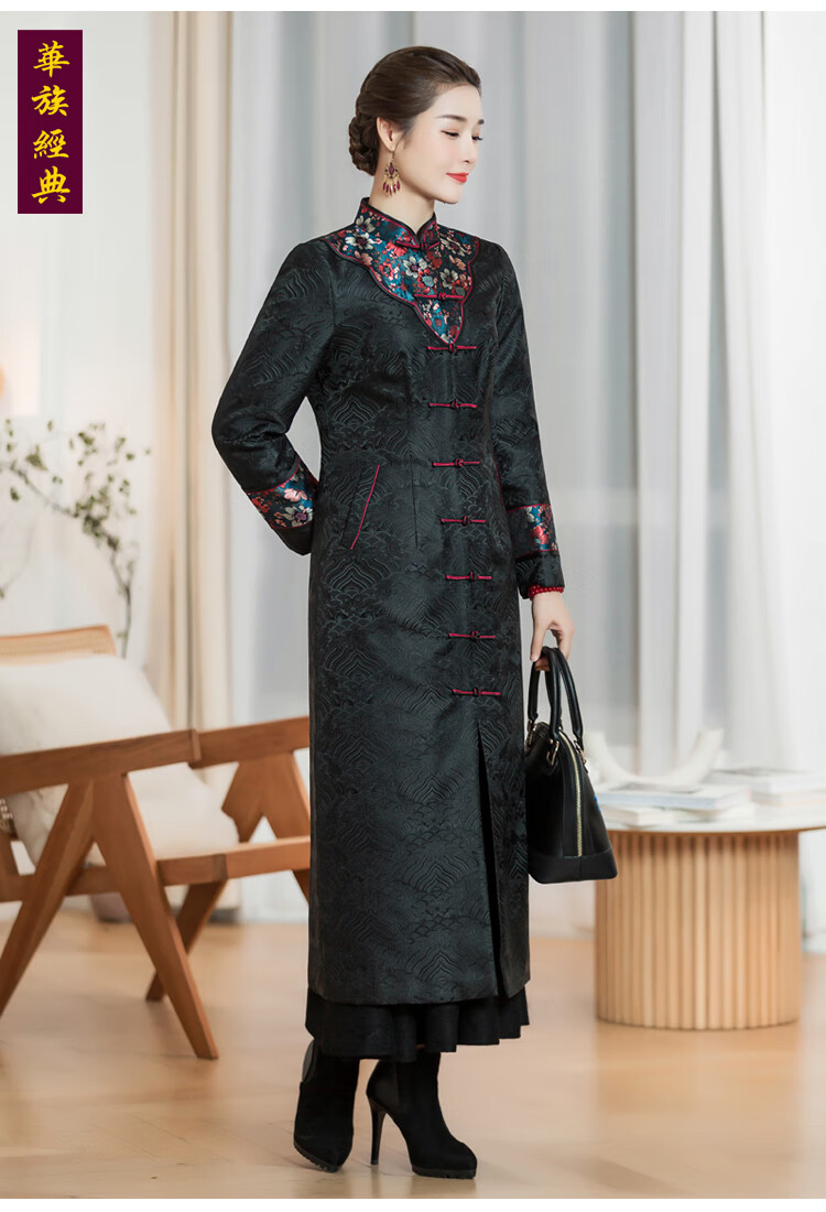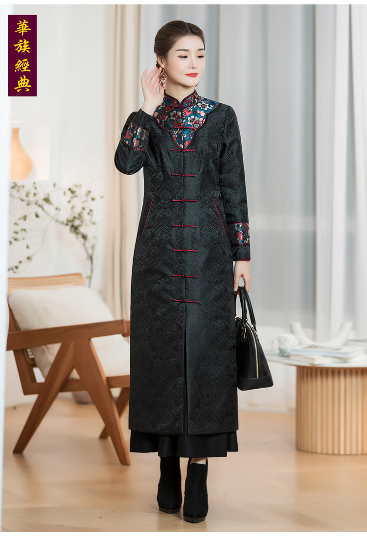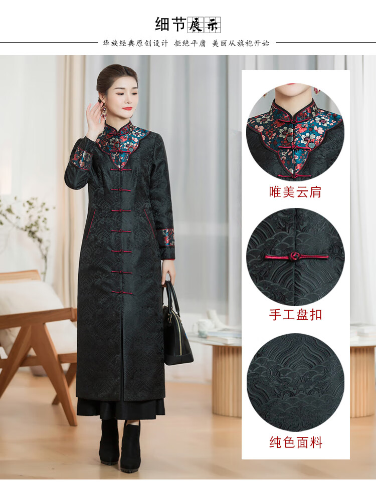 Chinese classic quilted cheongsam jacket 2021 autumn and winter Chinese retro placket heavy-duty thickened Tang suit windbreaker for women black - pre-sale 30 days XL