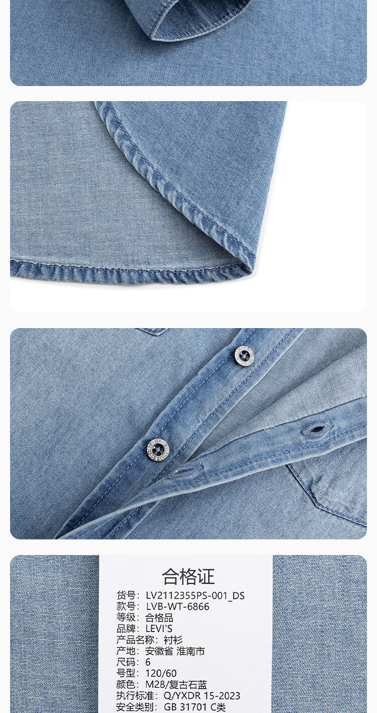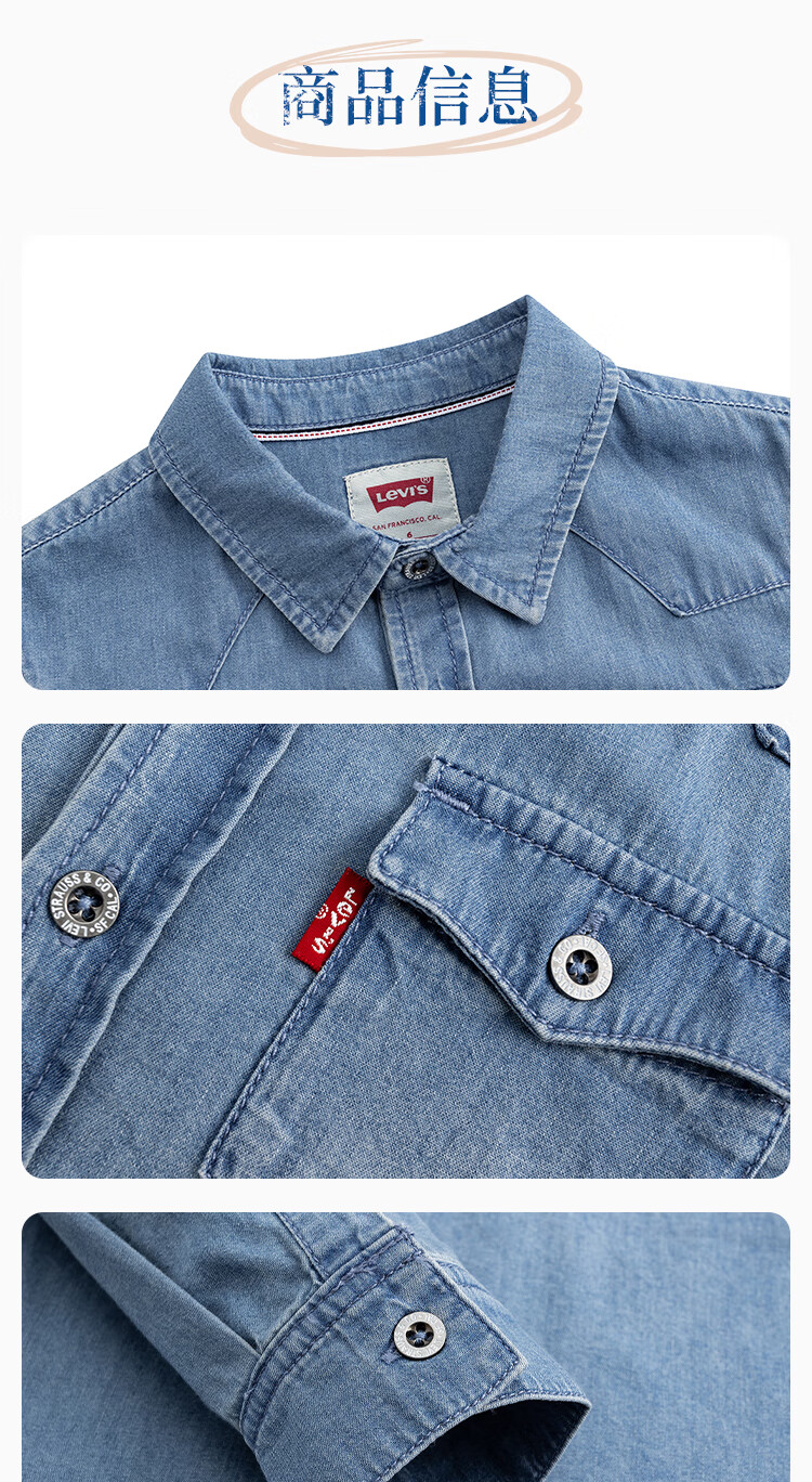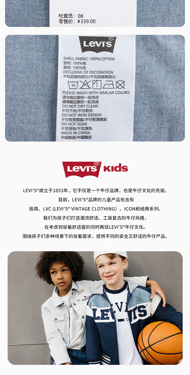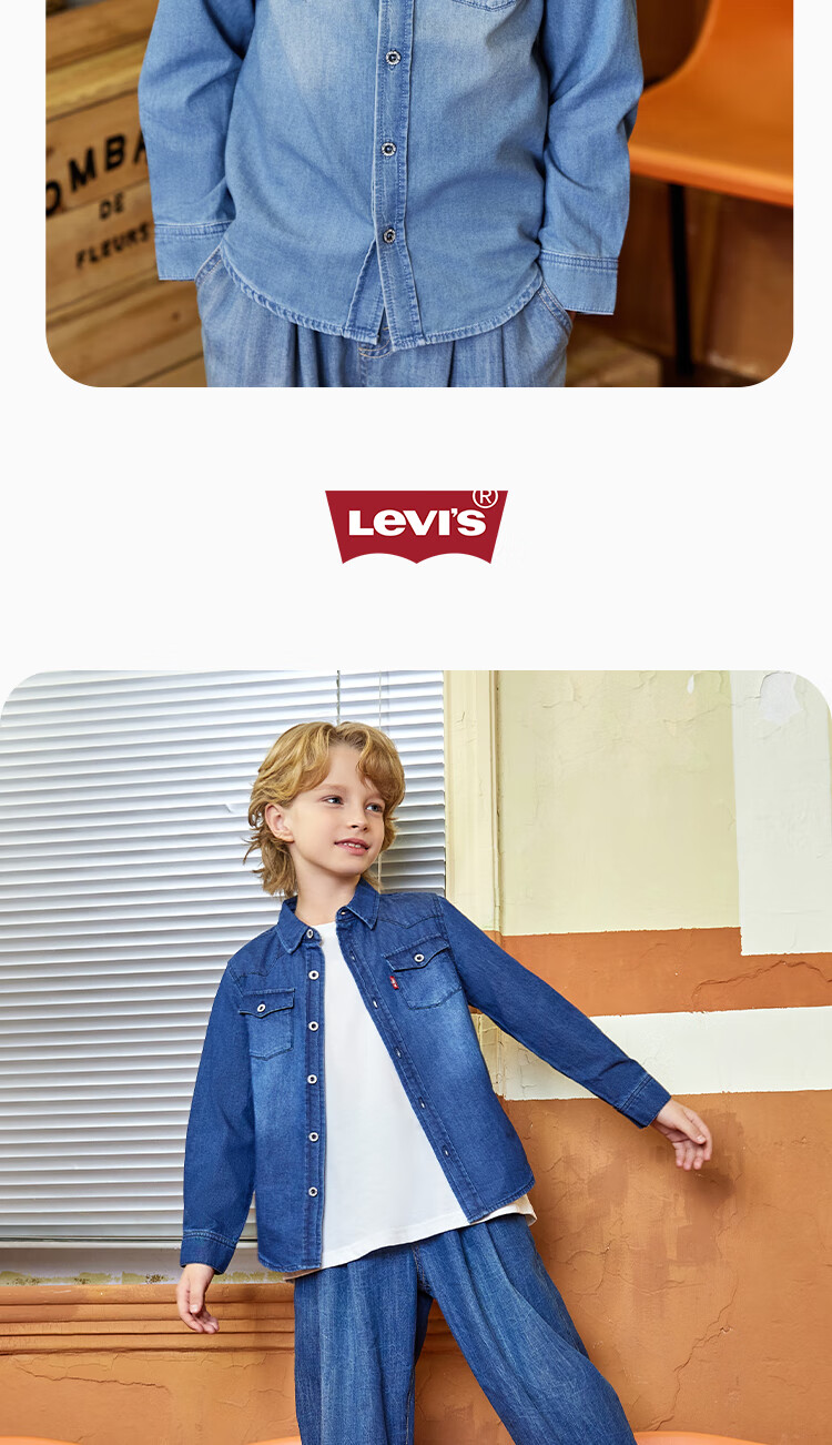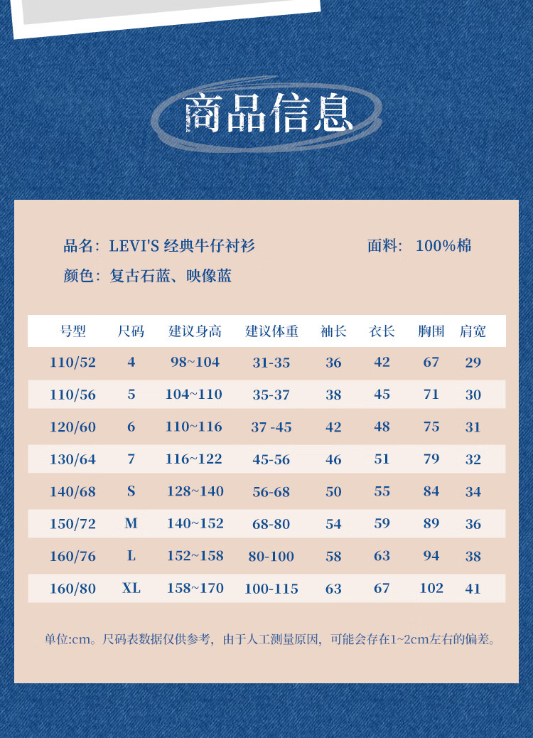 Levi s Levi's children's denim shirt spring and autumn pure cotton comfortable children's long-sleeved shirt retro stone blue 110/52 recommended height 98-104cm