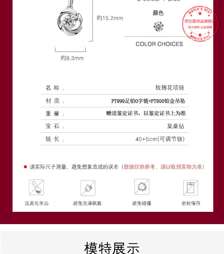 LAOLATU 999 platinum necklace for women PT950 platinum rose pendant light luxury Chinese Valentine's Day gift for girlfriend and wife 999 platinum necklace + pt950 moissanite pendant
