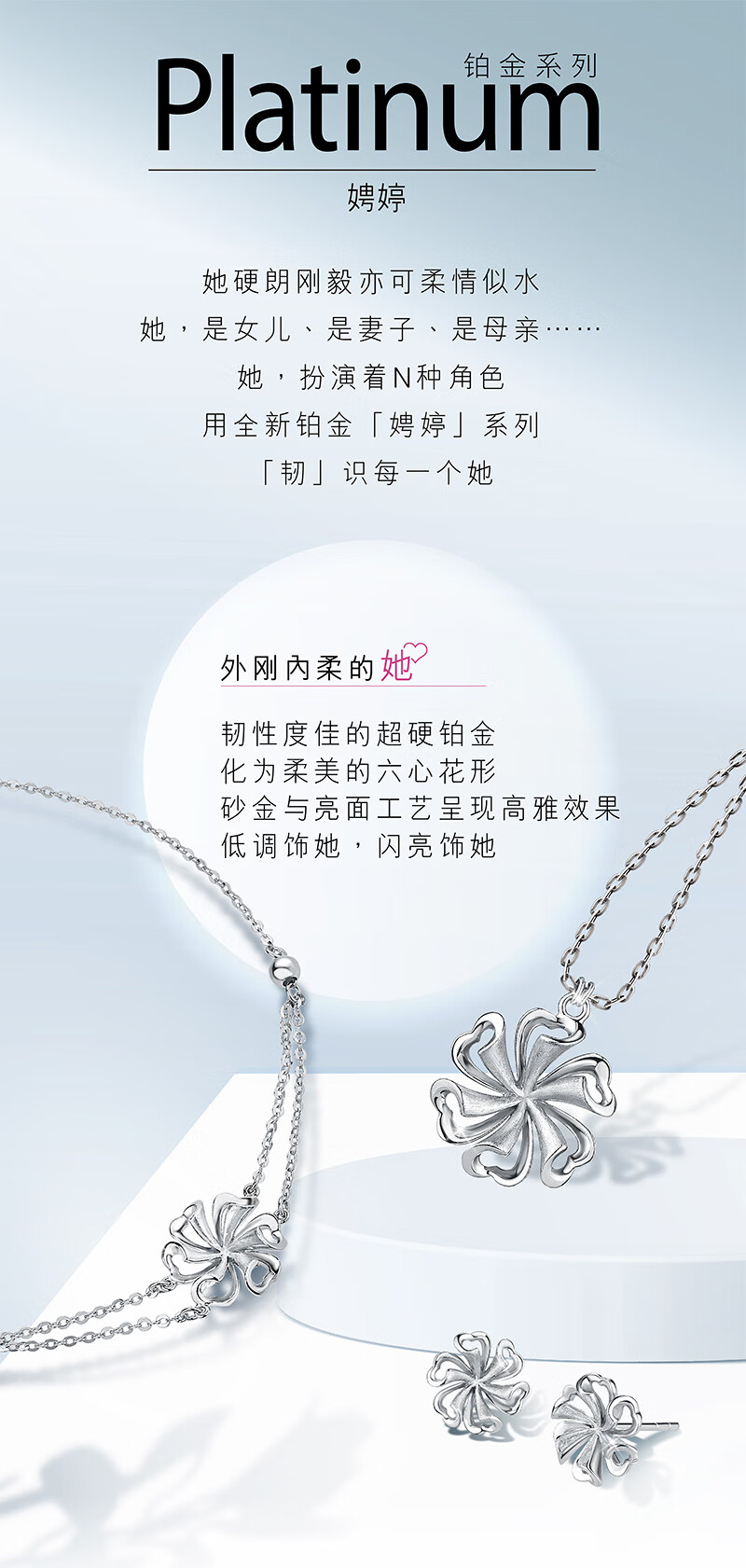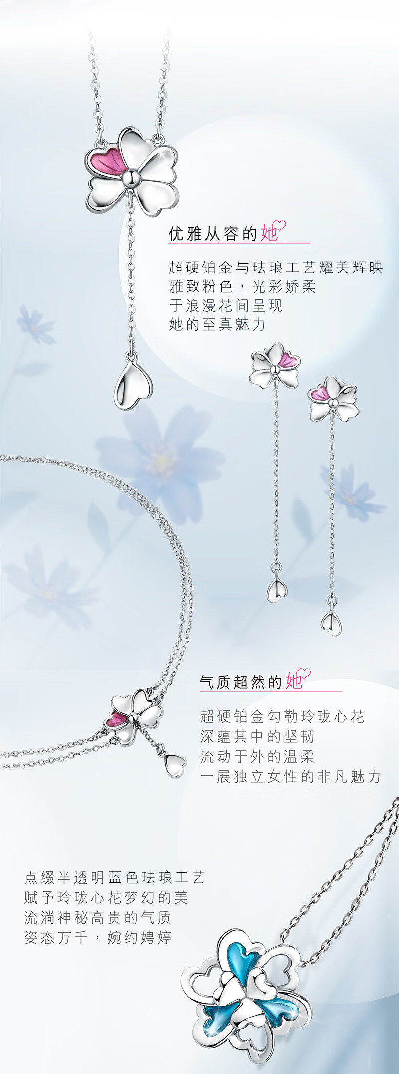 Lukfook Jewelry Pingting Series Platinum 950 Sakura Honey Platinum Necklace Set Chain Gift EFT1P30012 Total Weight 4.03 Grams