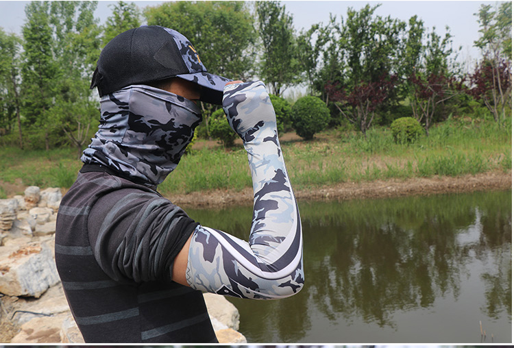 Panleda new outdoor fishing sunscreen ice silk fishing hat sleeves face towel gloves four-piece set fishing gear new gray suit