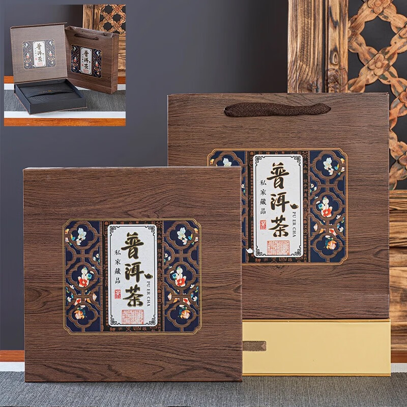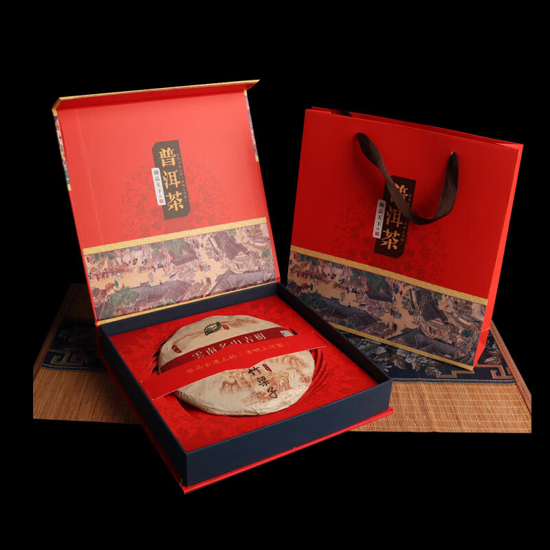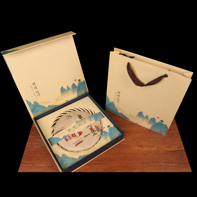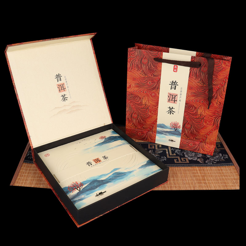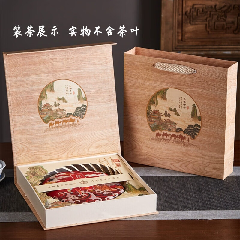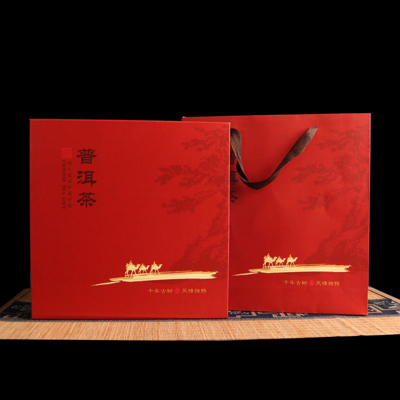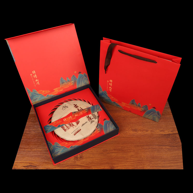 Tuojin new Pu'er tea 357g universal tea cake packaging gift box Qizi cake Fuding white tea high-end packaging tea box Pu'er tea red empty box + handbag