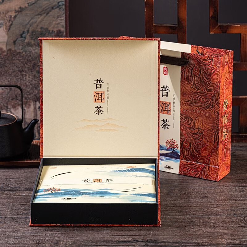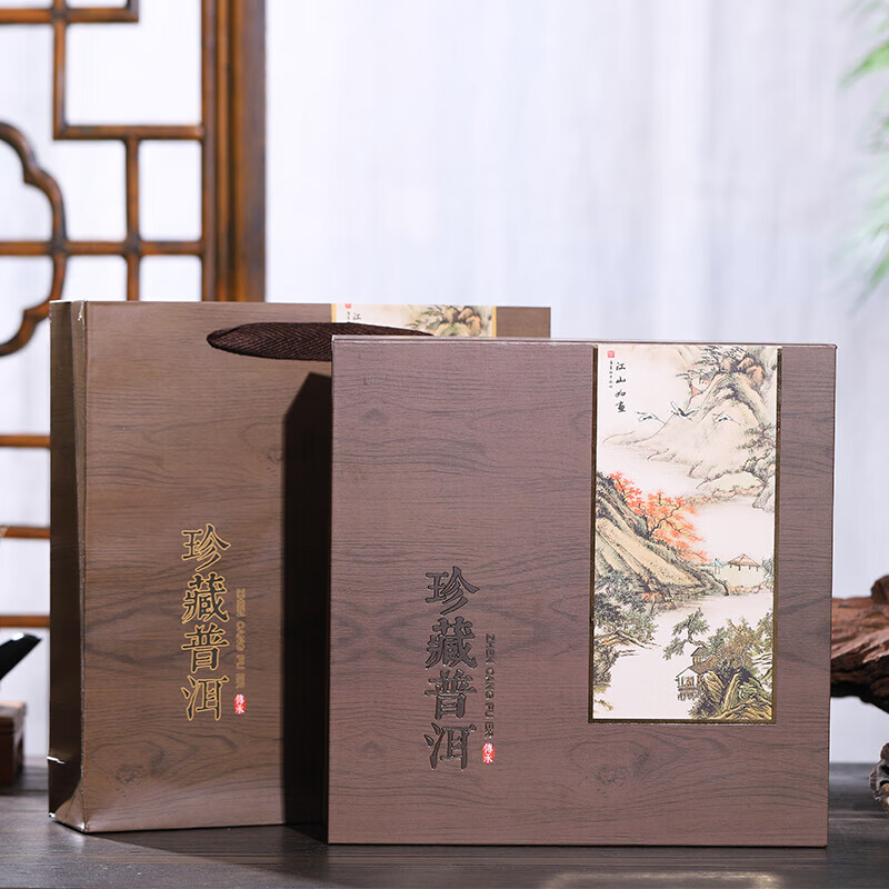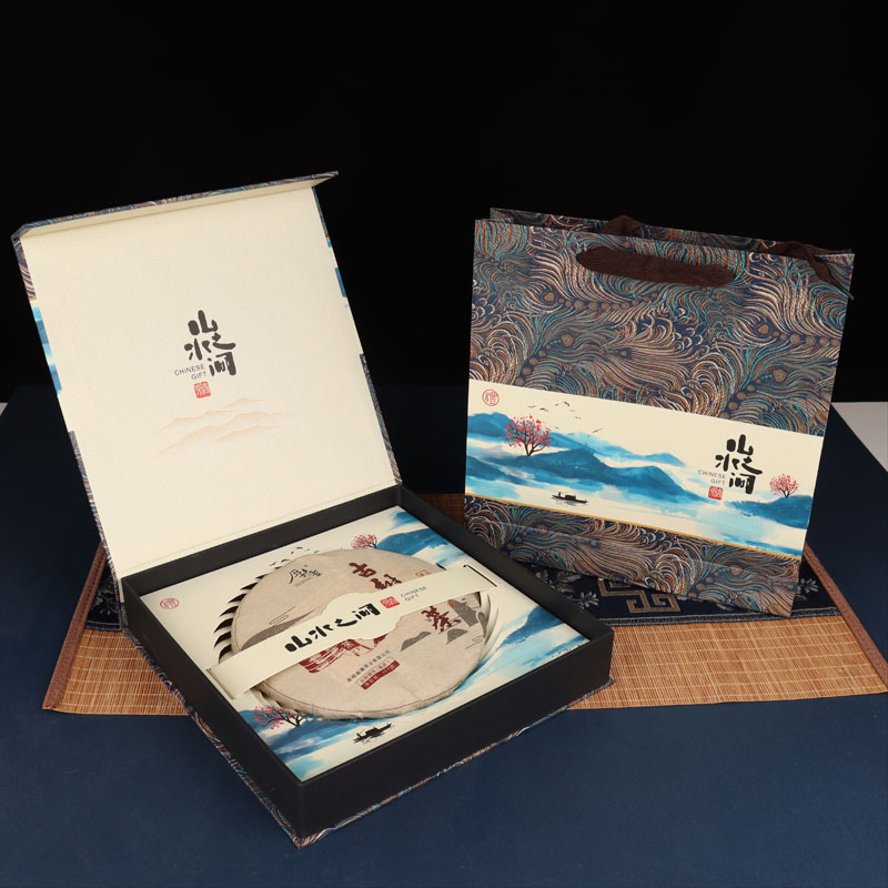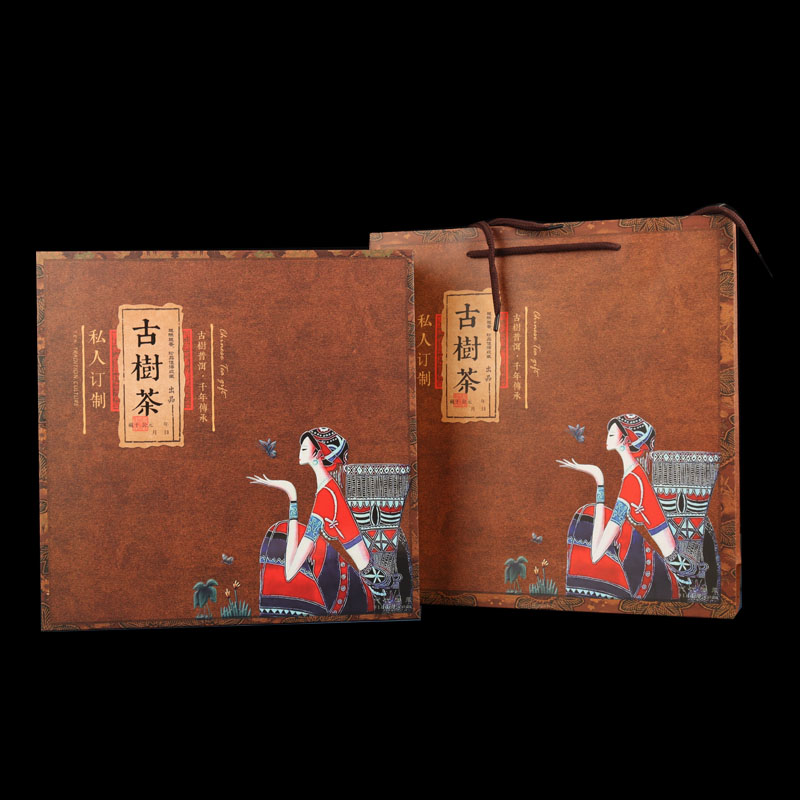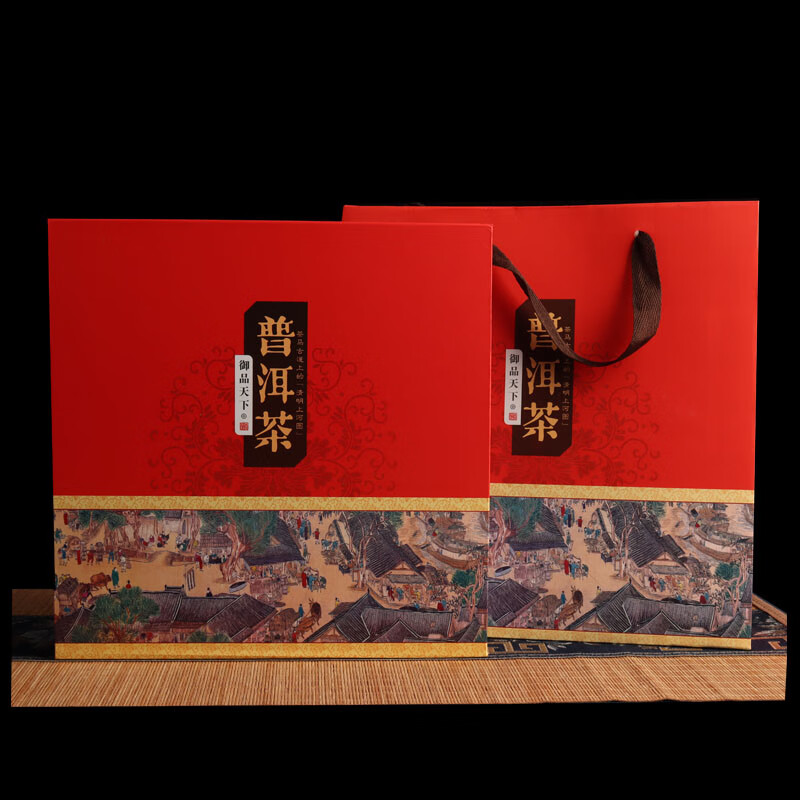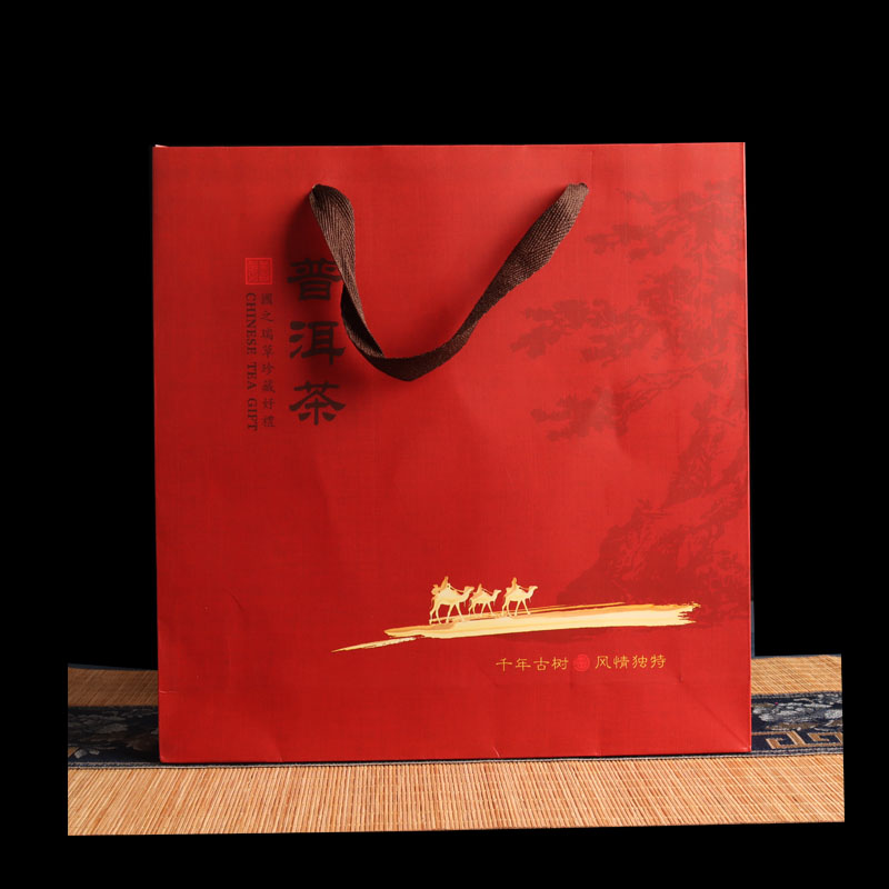 Tuojin new Pu'er tea 357g universal tea cake packaging gift box Qizi cake Fuding white tea high-end packaging tea box Pu'er tea red empty box + handbag