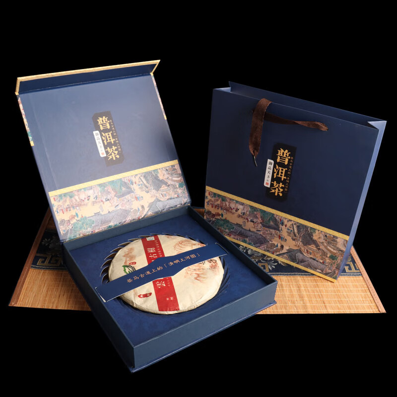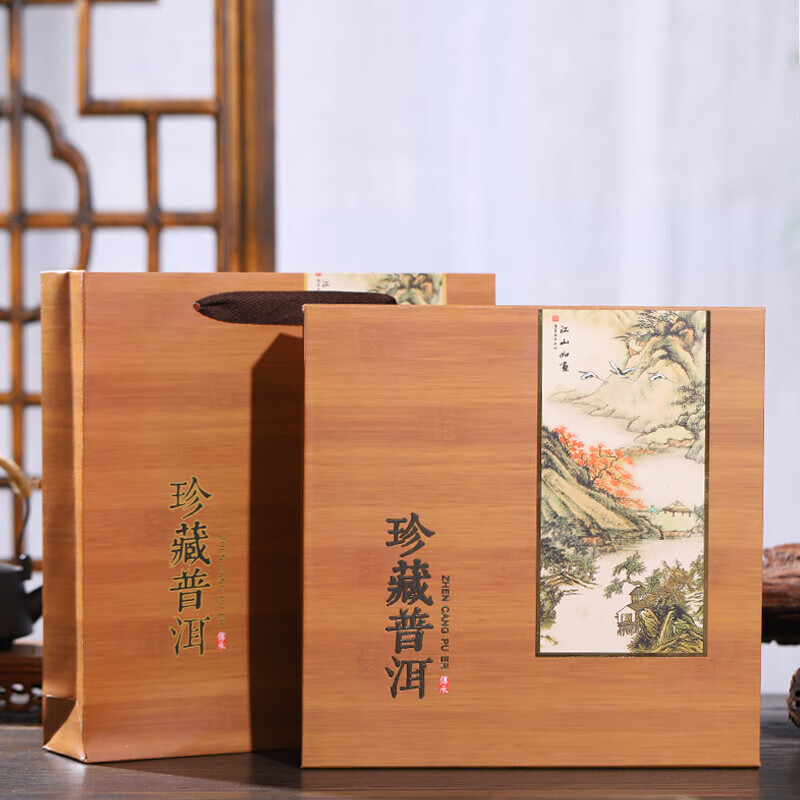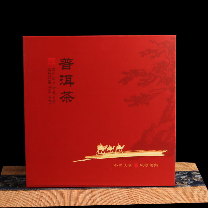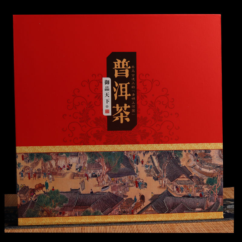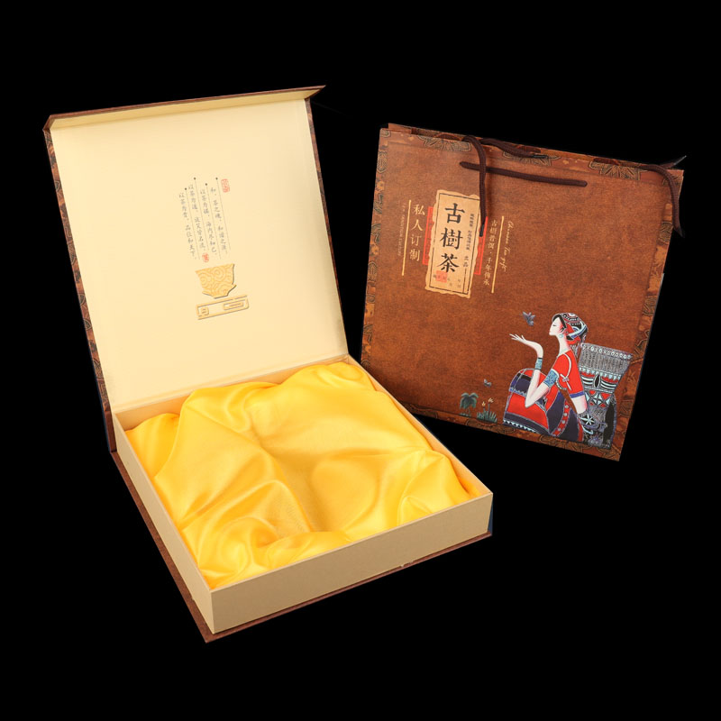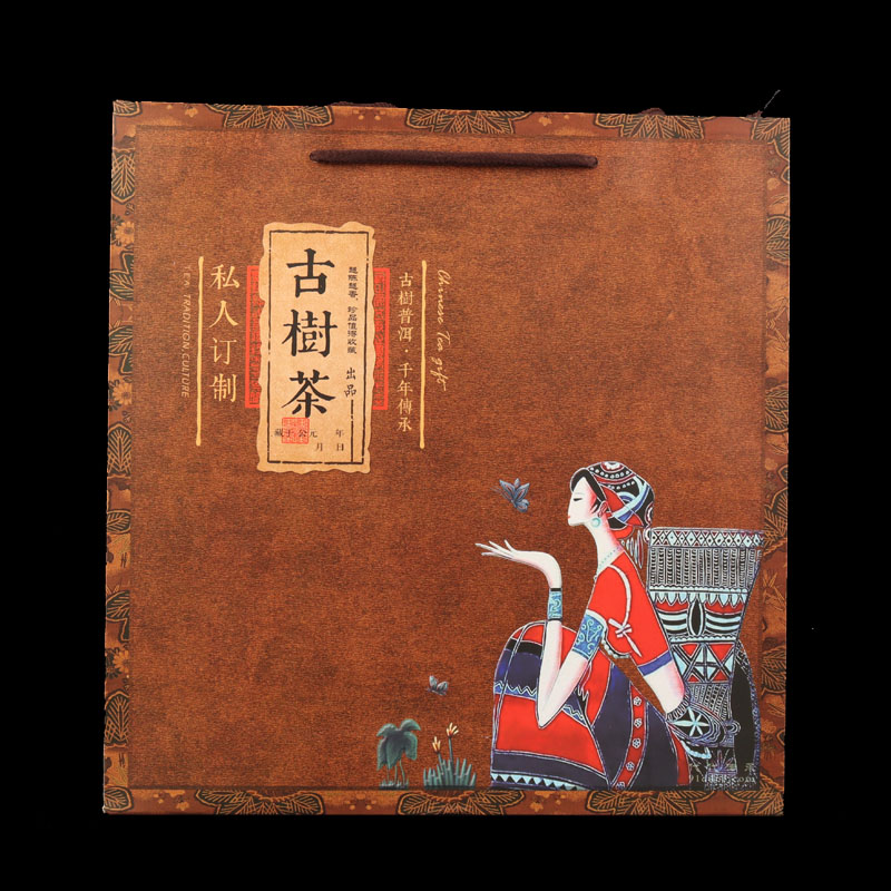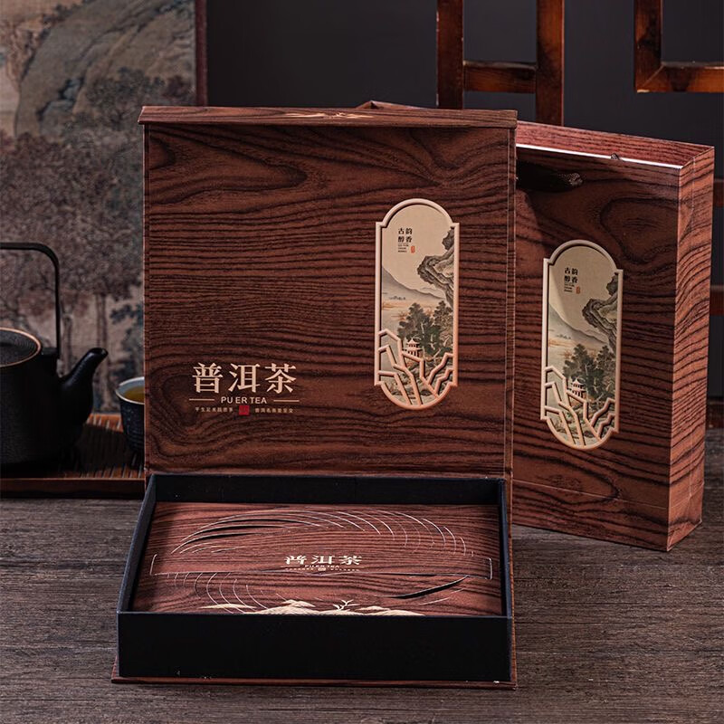 Tuojin new Pu'er tea 357g universal tea cake packaging gift box Qizi cake Fuding white tea high-end packaging tea box Pu'er tea red empty box + handbag