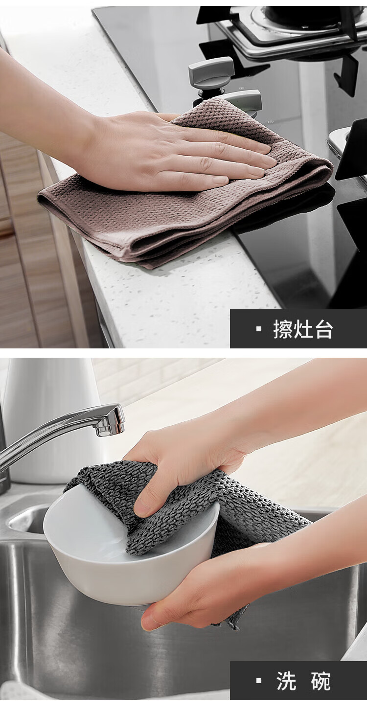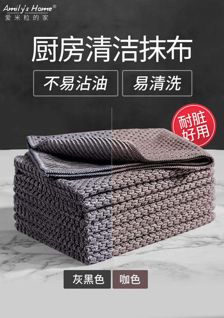 Aimili's home kitchen rag, absorbent, dishcloth, not easy to stain with oil, tablecloth, wipe table, stove, towel, linen, coffee color, 4 pieces 30*40cm