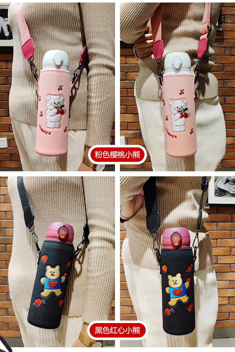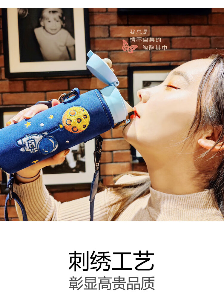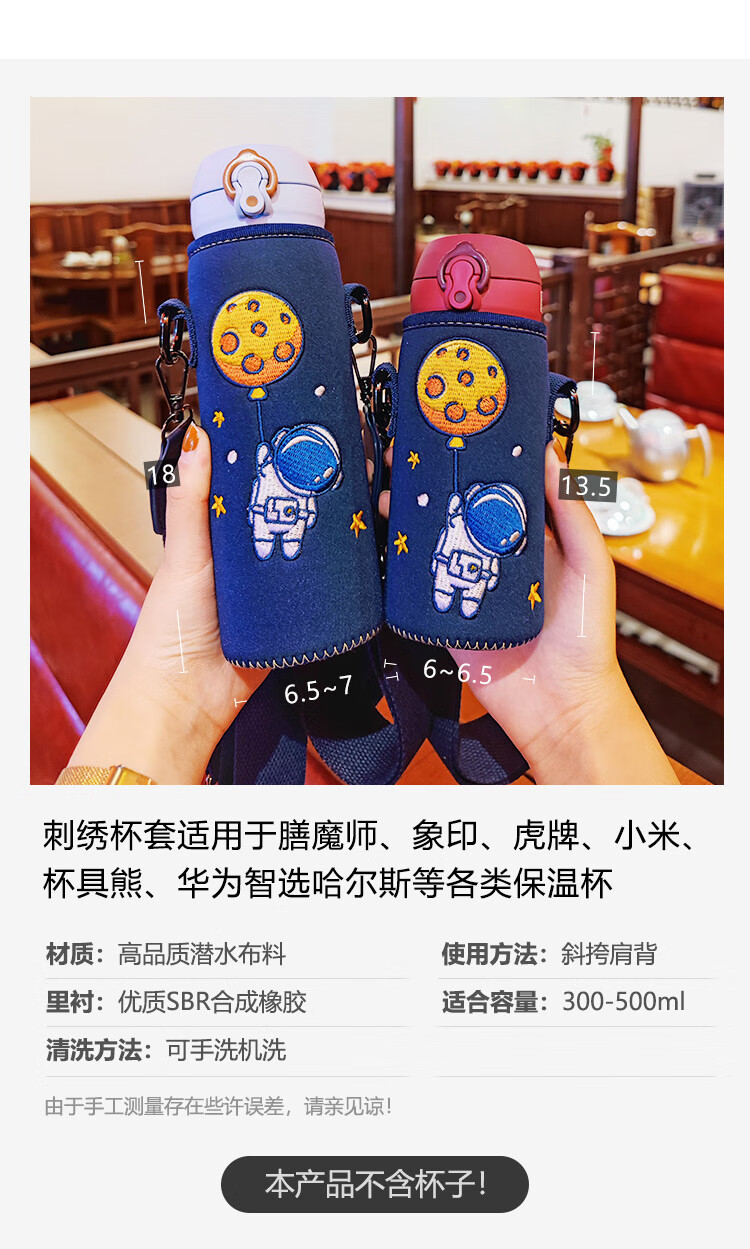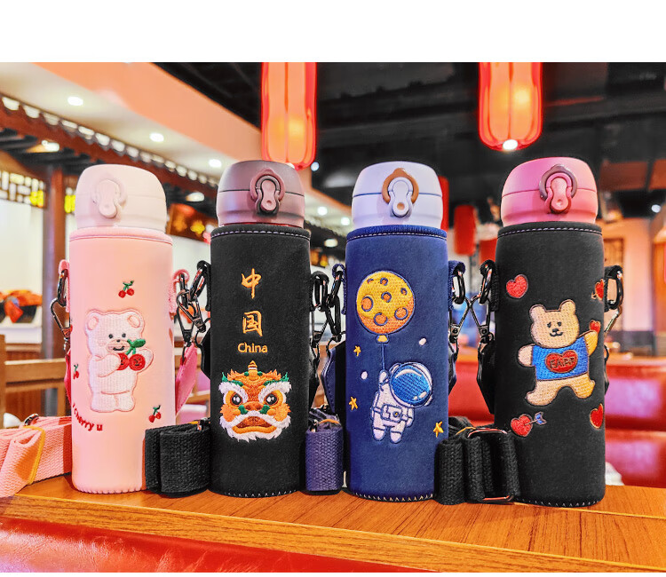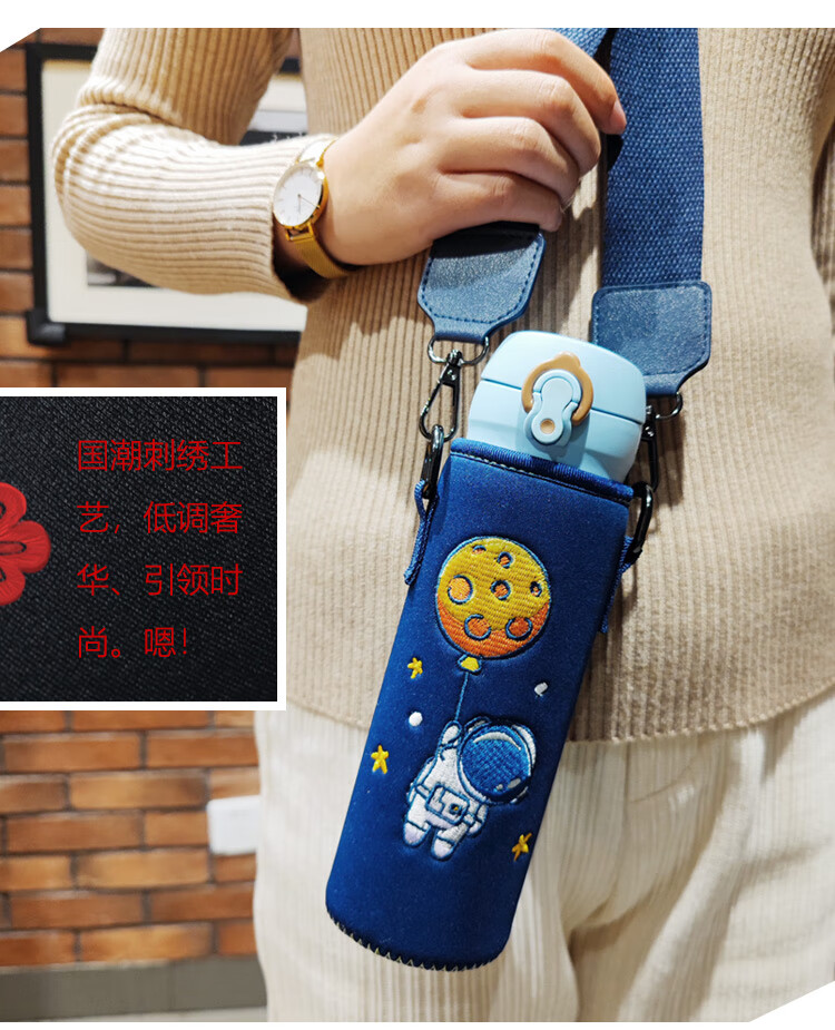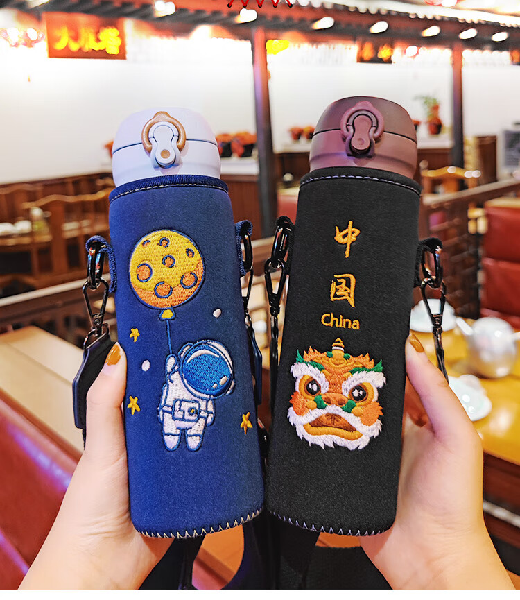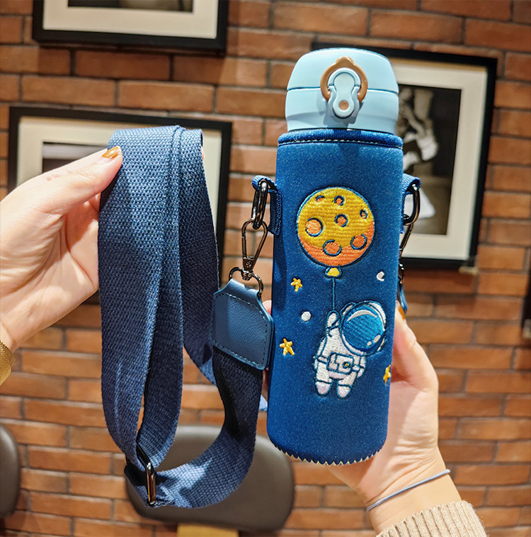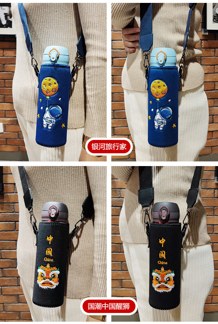 Bolikin national trend embroidered thermos cup cover universal zodiac water cup cover protective cover crossbody strap shoulder strap portable cup cover 350ml 500ml anti-scalding embroidered Galaxy Traveler 480-500ml