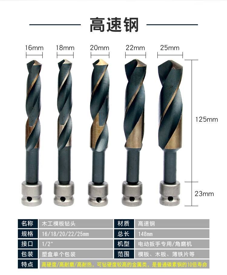 Promise twist drill bit lengthened electric wrench special template drill conversion joint woodworking board opening punch drill bit high speed steel 22mm