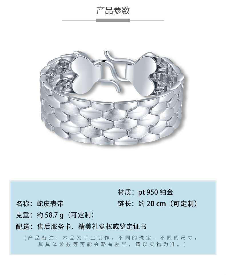 Yubo Workshop platinum bracelet men's pt950 platinum bracelet domineering full gold watch chain thick watch chain can be customized Platinum 950 18 cm 46-48 grams