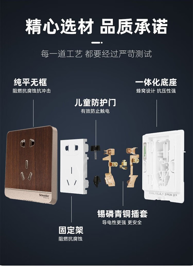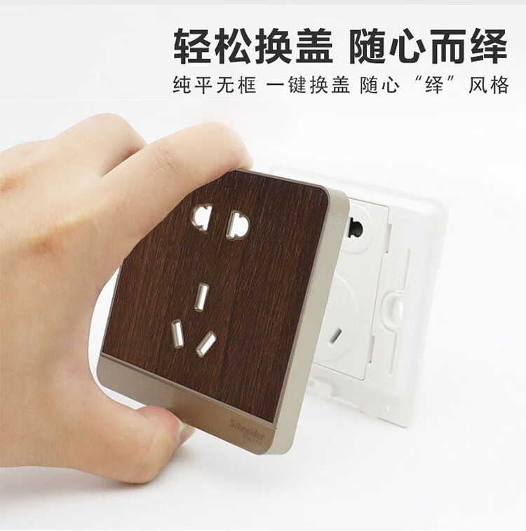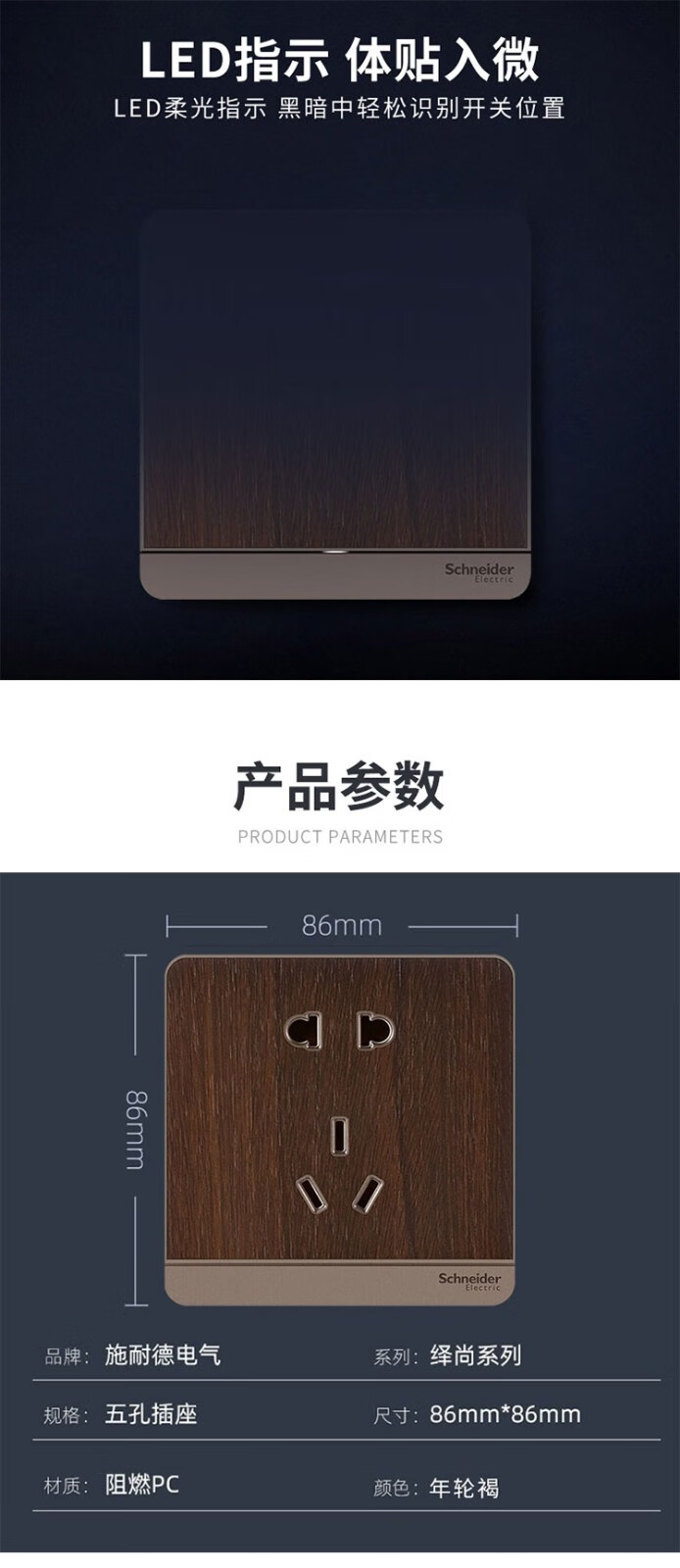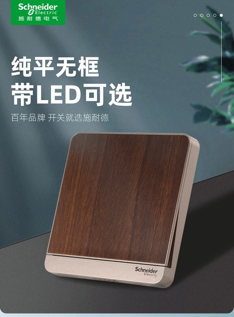 Schneider switch socket panel Yishang brown retro imitation solid wood material 86 type household wall power supply concealed with LED single open single control