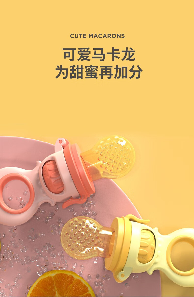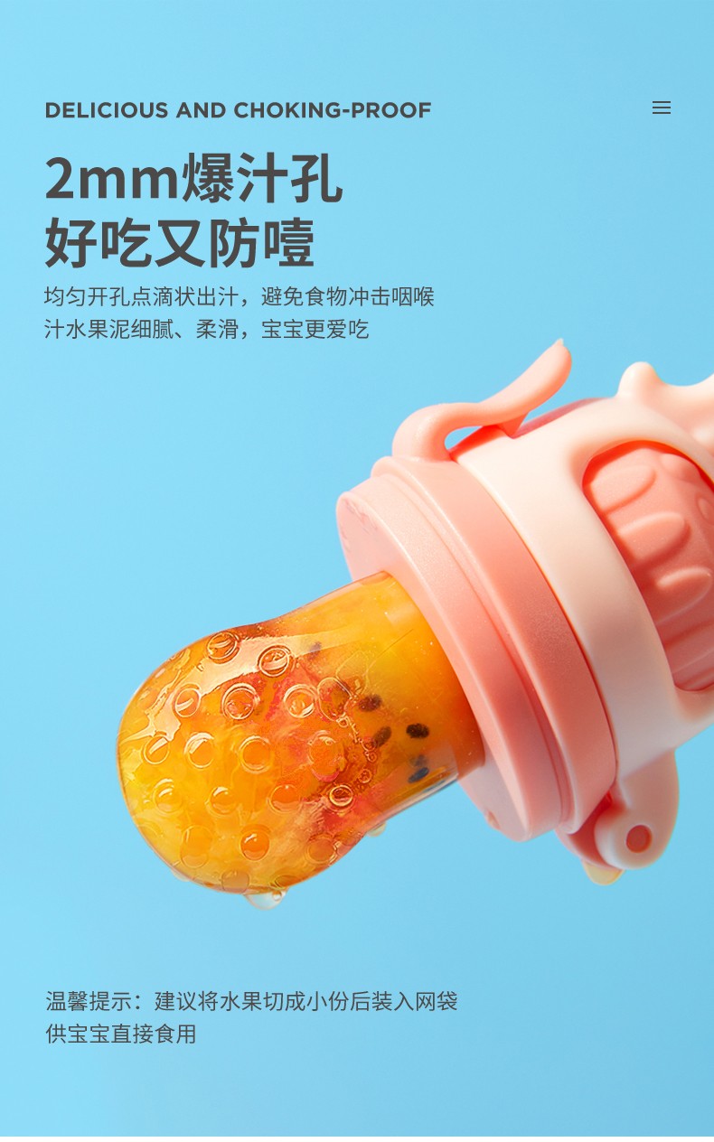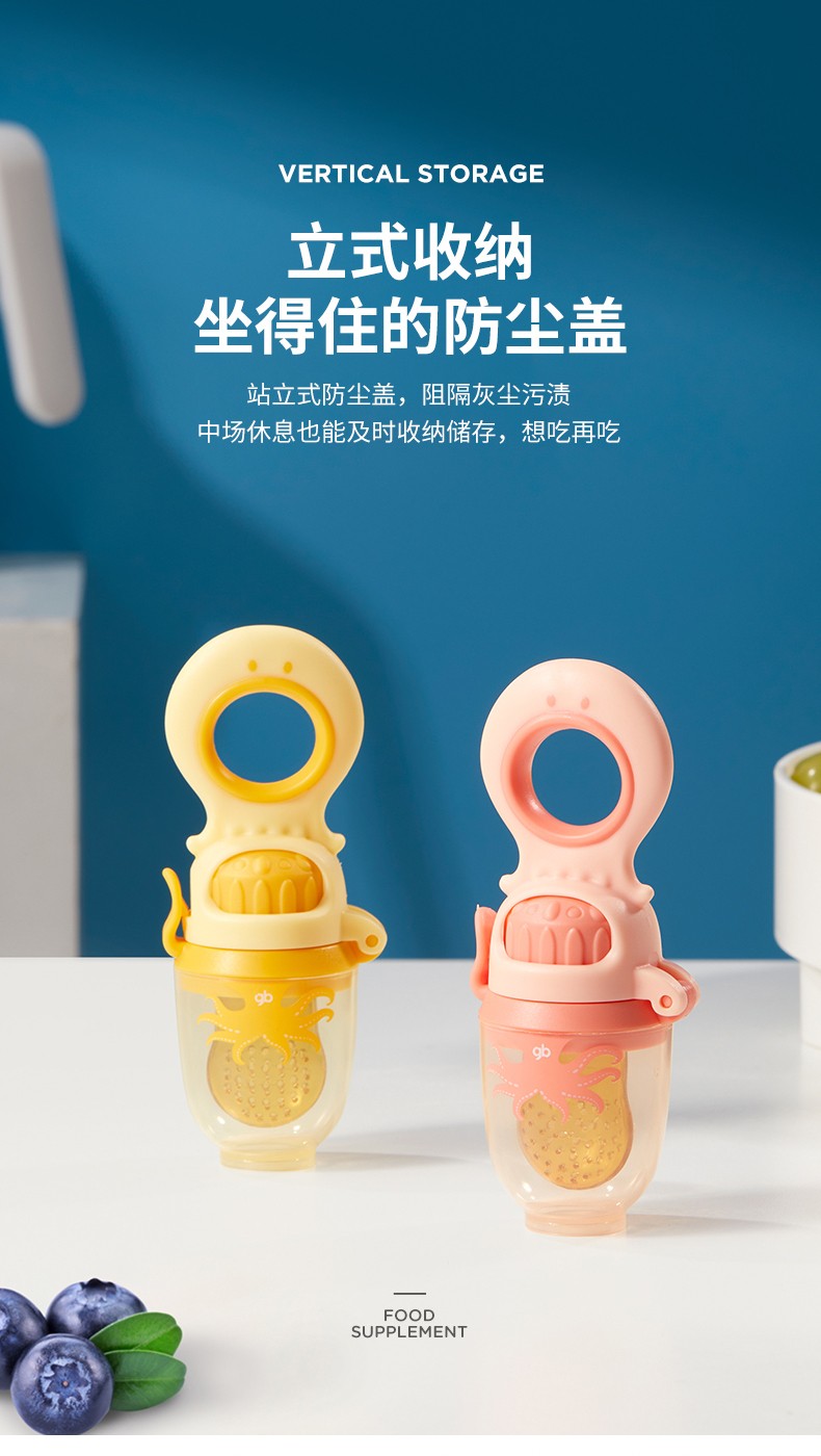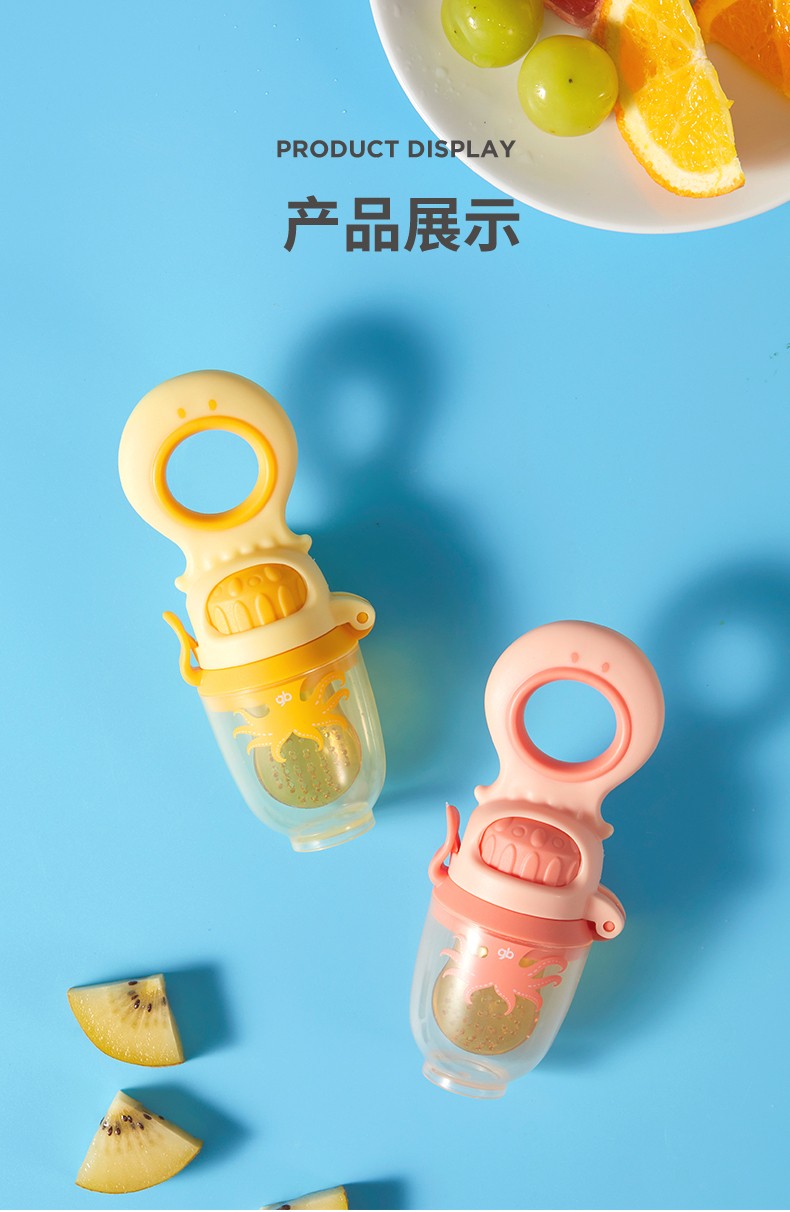 Goodbaby (gb) pushable bite bag baby infant fruit food supplement silicone juice fruit and vegetable bag molar soothing teether beige (with storage box + anti-lost chain)