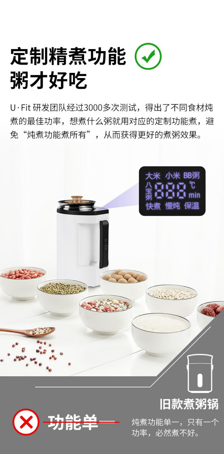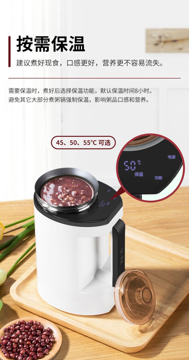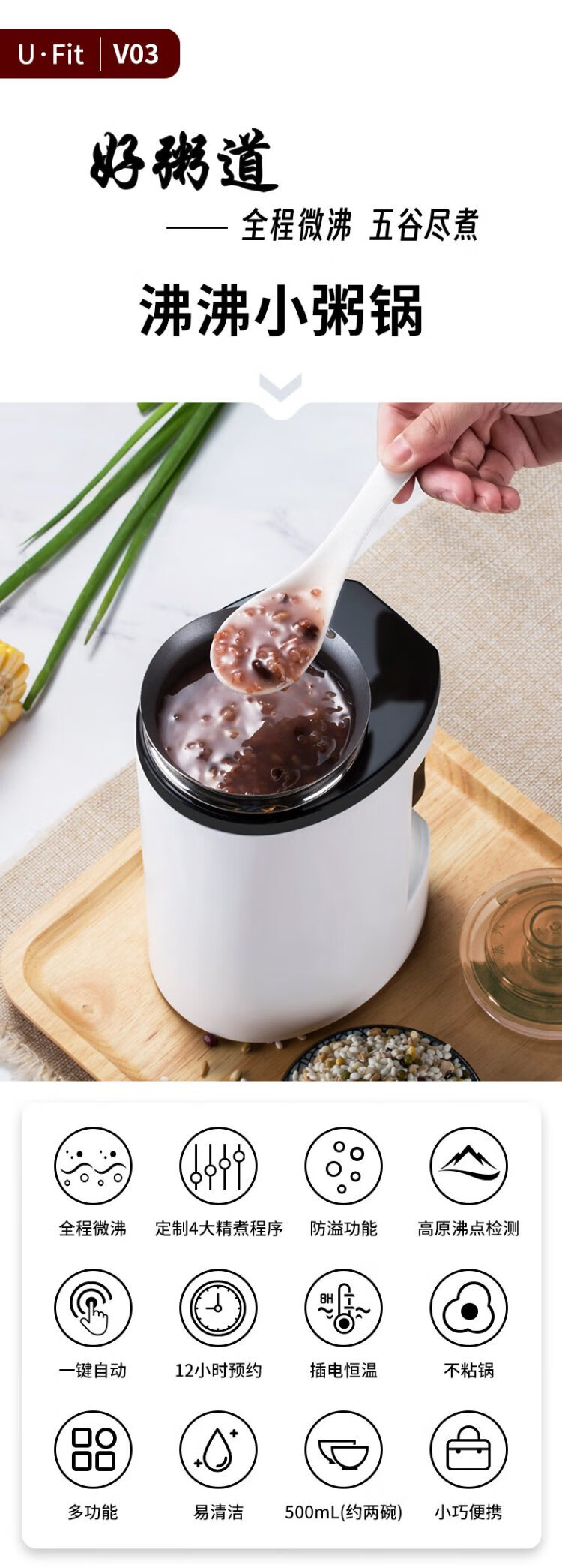 U FIT cooking multigrain porridge stew pot, special pot for cooking porridge, non-overflow pot, porridge cooking cup, one person porridge artifact, fully automatic, can be reserved for 1-2 people, soup making, white fungus, travel, portable small stew pot, multigrain porridge pot V03 0.5L