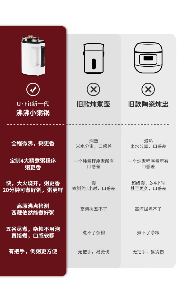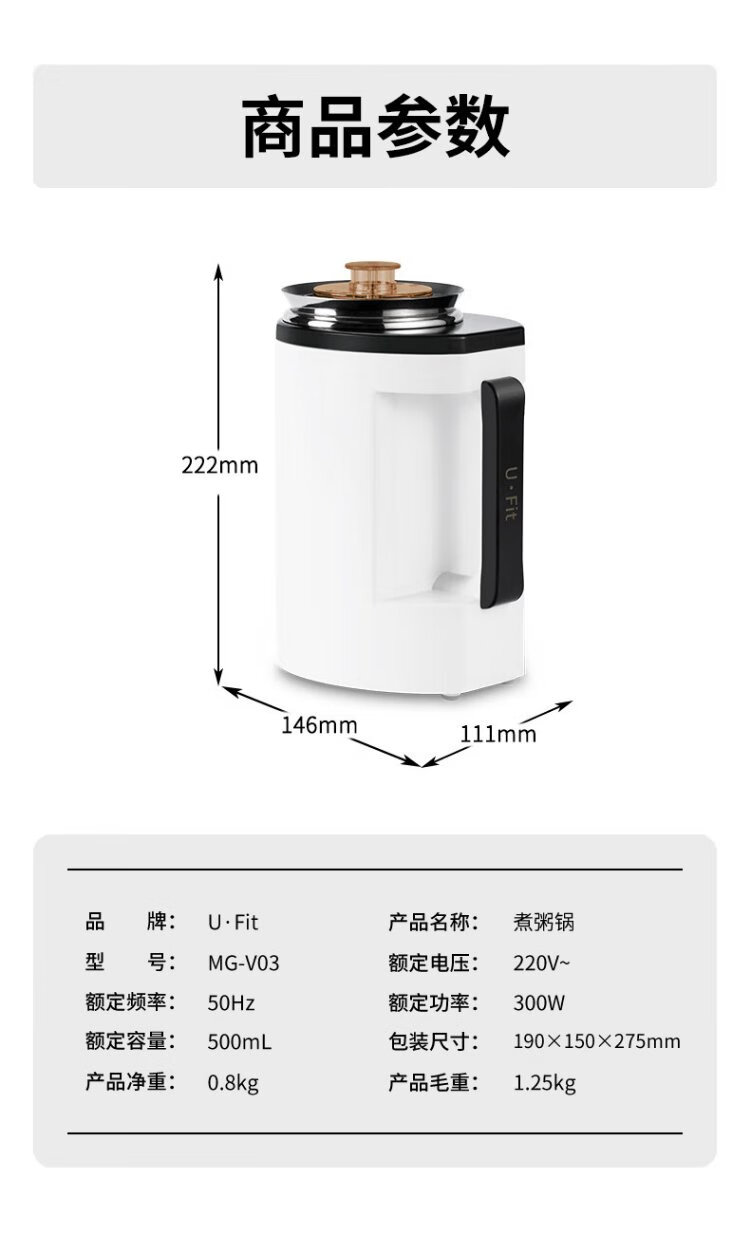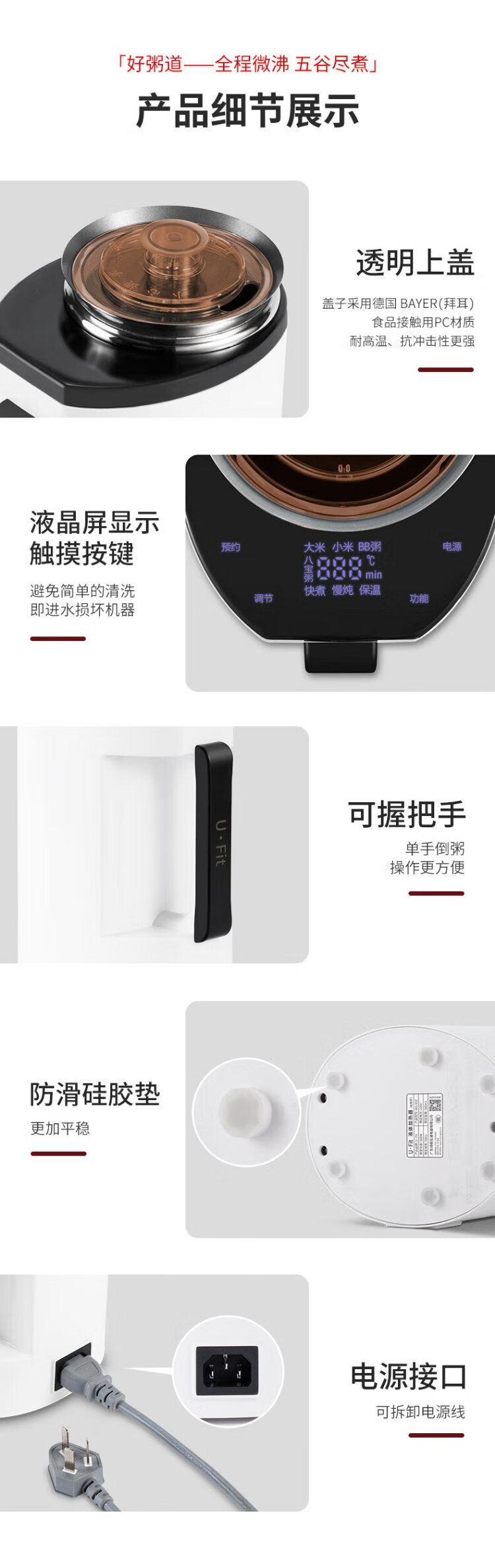 U FIT cooking multigrain porridge stew pot, special pot for cooking porridge, non-overflow pot, porridge cooking cup, one person porridge artifact, fully automatic, can be reserved for 1-2 people, soup making, white fungus, travel, portable small stew pot, multigrain porridge pot V03 0.5L