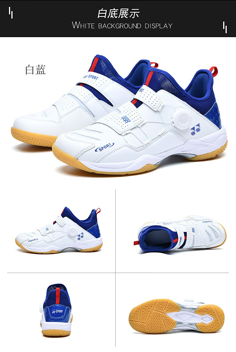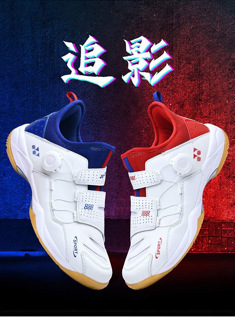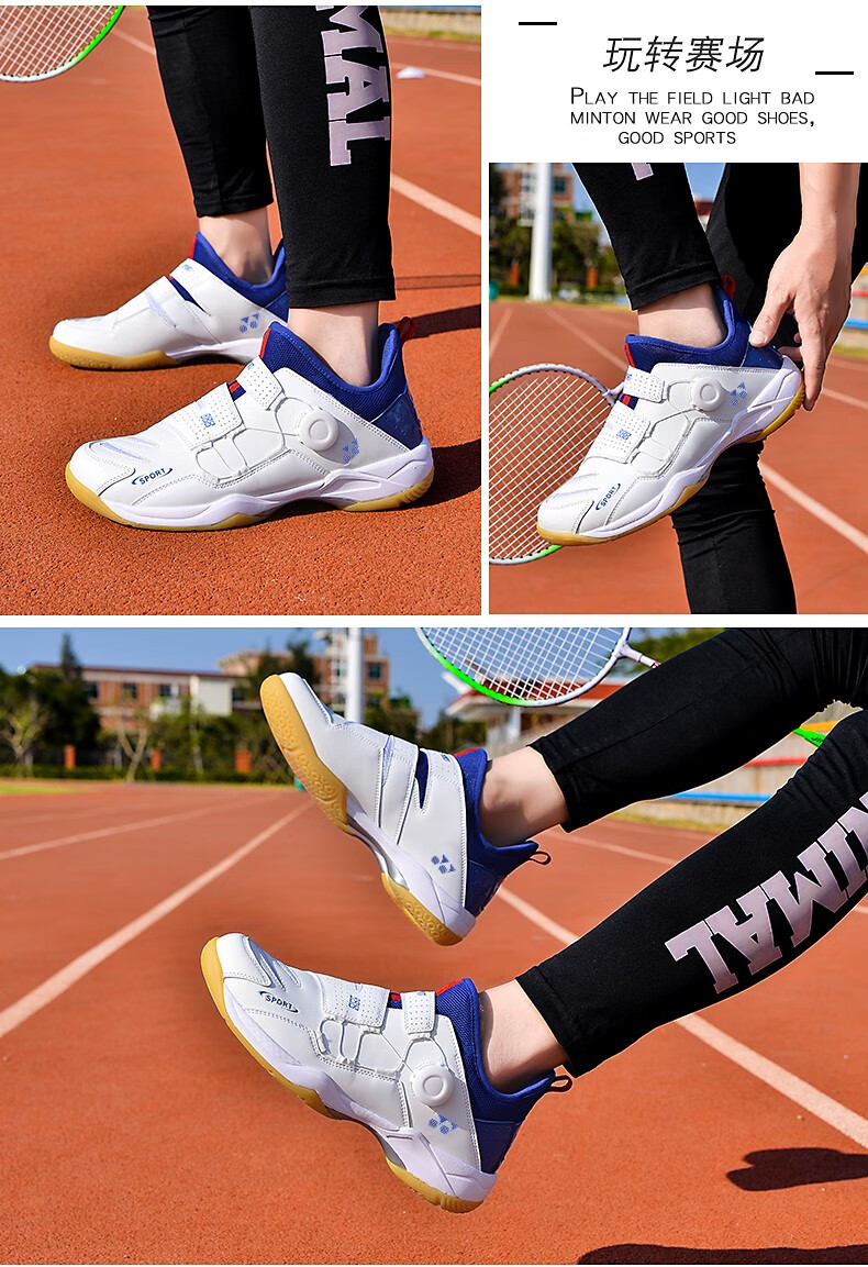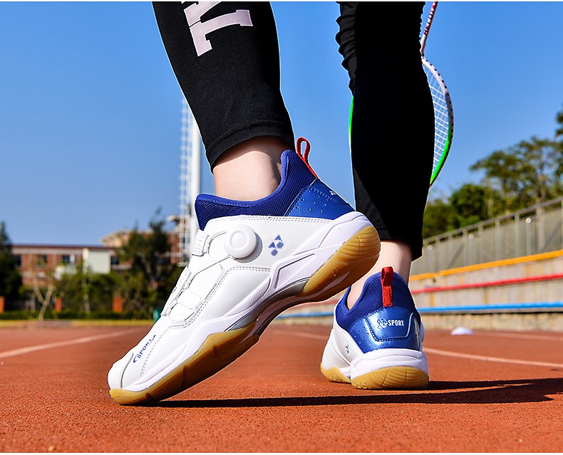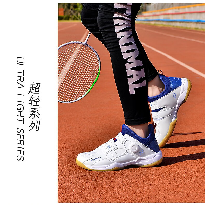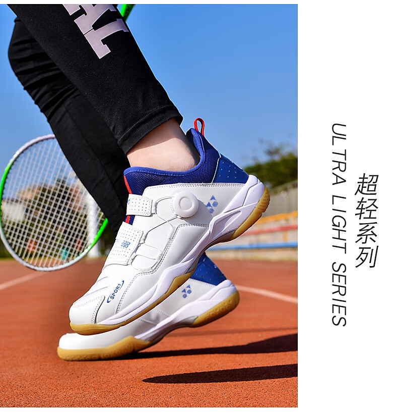 FEELACES badminton shoes, anti-twist, non-slip, wear-resistant, rotating buttons, lace-free, men's and women's sports training shoes, 182 white and blue, 42 standard sports shoe size