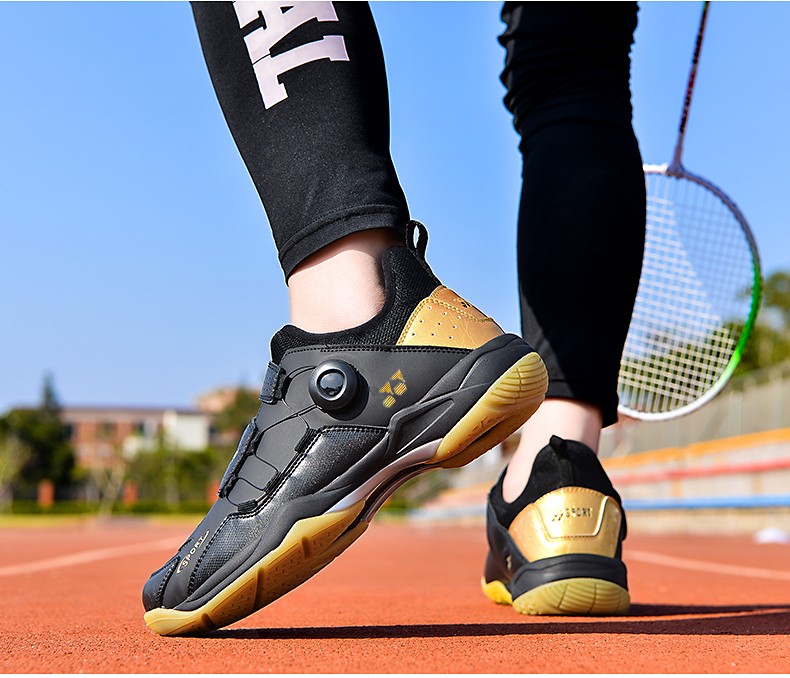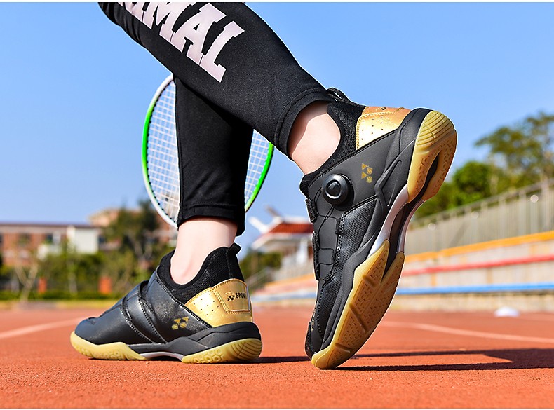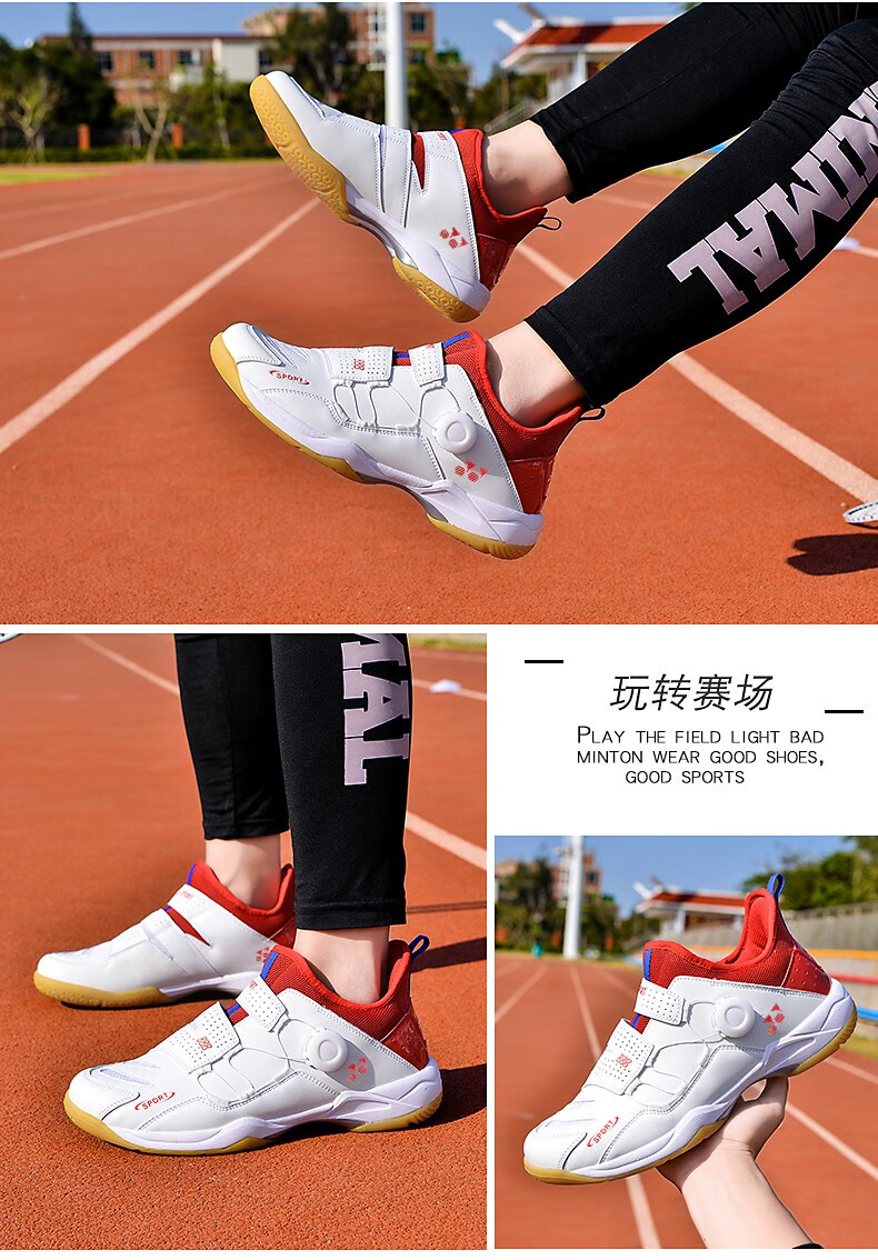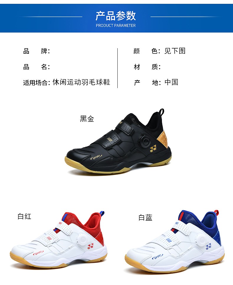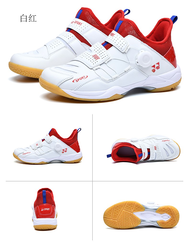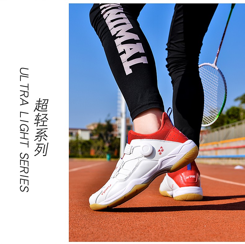 FEELACES badminton shoes, anti-twist, non-slip, wear-resistant, rotating buttons, lace-free, men's and women's sports training shoes, 182 white and blue, 42 standard sports shoe size
