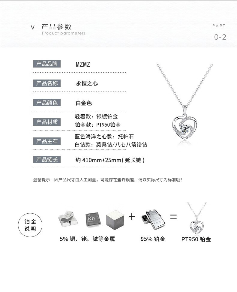 MZMZ Brand Eternal Heart Platinum Necklace Women's PT950 Moissanite Platinum Birthday Anniversary Gift for Girlfriend Ten Warehouses Nationwide/Next Day Delivery Light Luxury Style-Inlaid with Ocean Heart Topaz