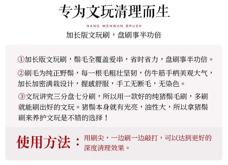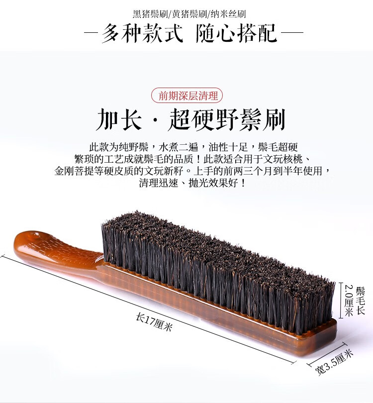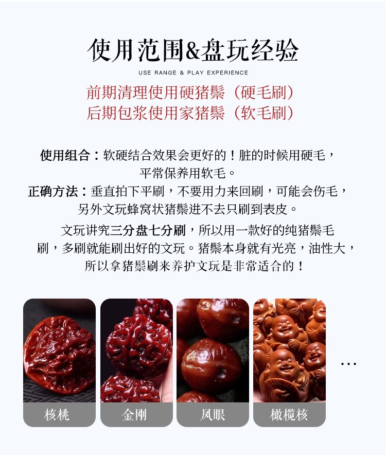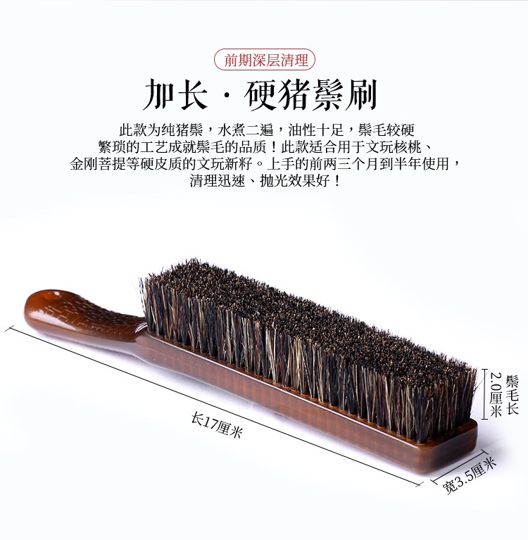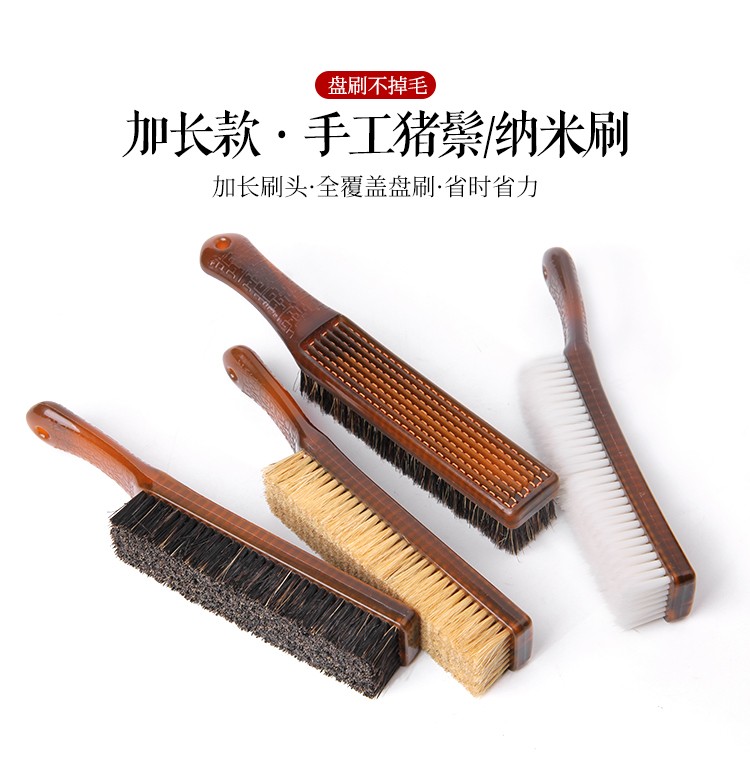 Oufanluo Wenwan Brush Nano Brush Size Rudraksha Olive Walnut Bracelet Maintenance Soft and Hard Boar Bristle Brush Set Style Four Imitation Beef Tendon Handle Nano Brush