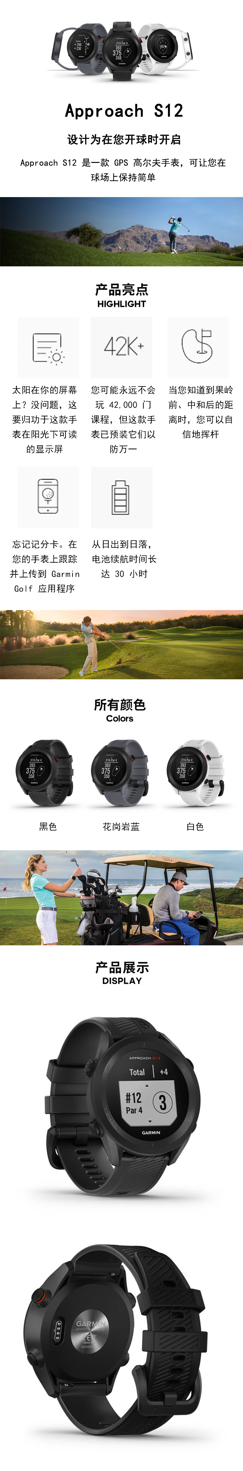 GARMIN Approach S12 GPS golf smart sports watch, readable in sunlight, long battery life, granite blue 010-02472-01