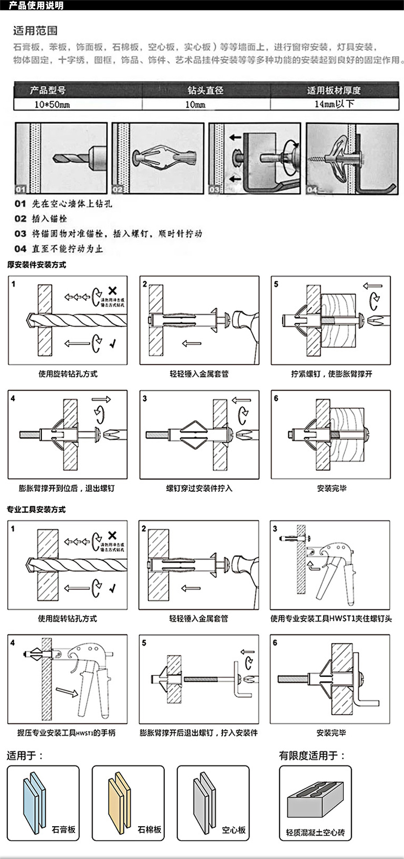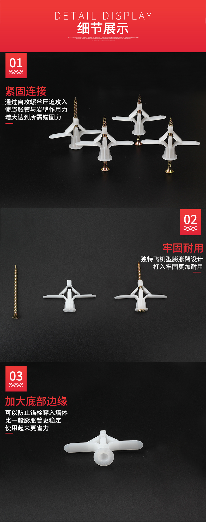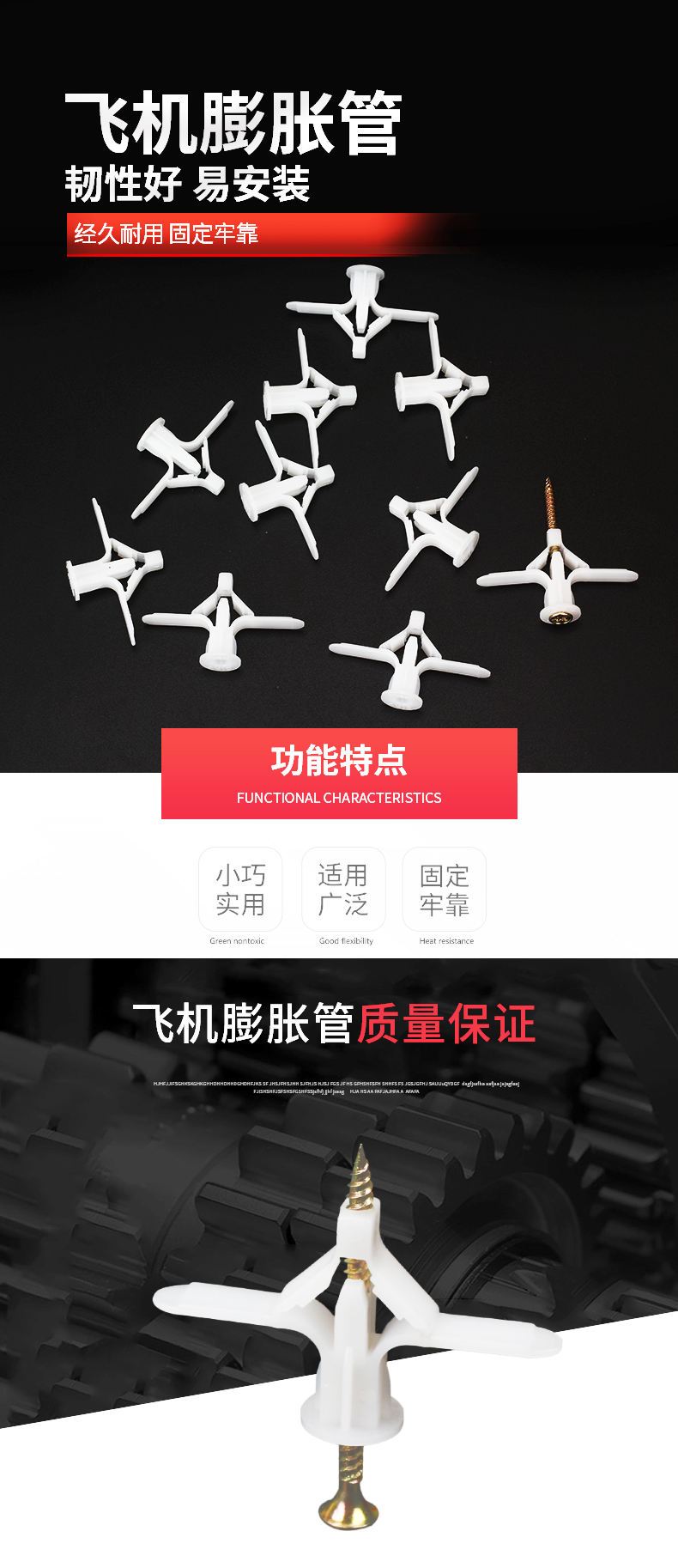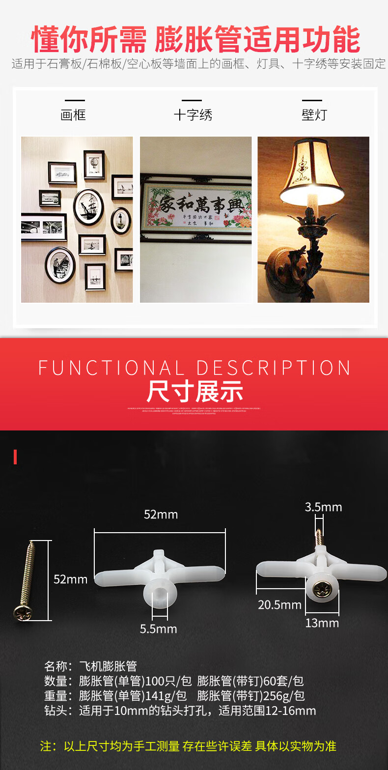 Open drawing: Aircraft expansion pipe, screw plug, curtain, gypsum board, hollow wall expansion anchor, self-tapping expansion plug, butterfly bolt, aircraft expansion pipe (with nails), about 60 sets/pack