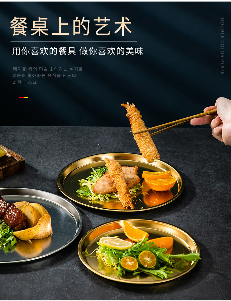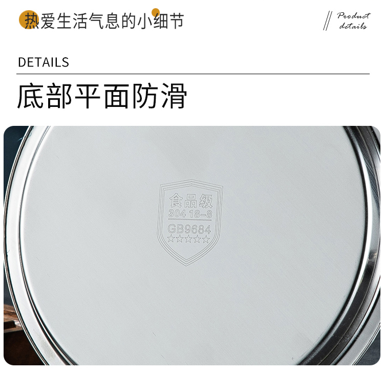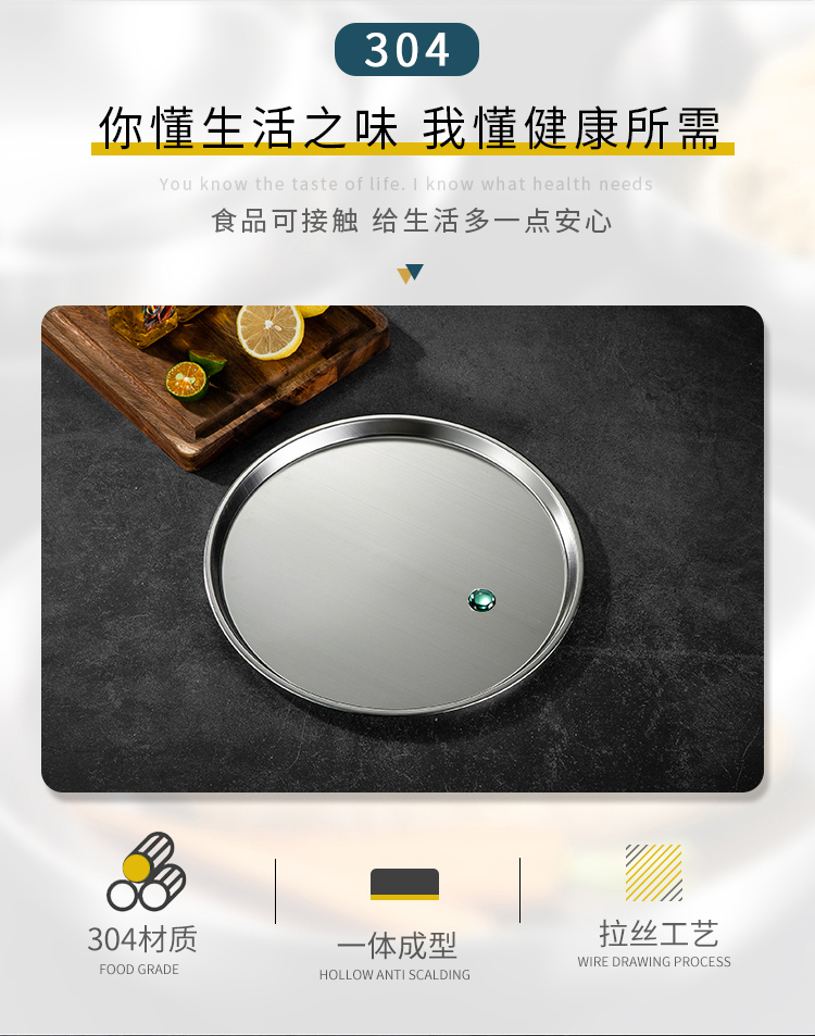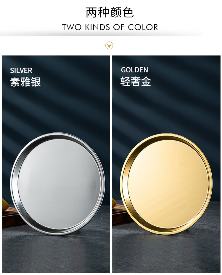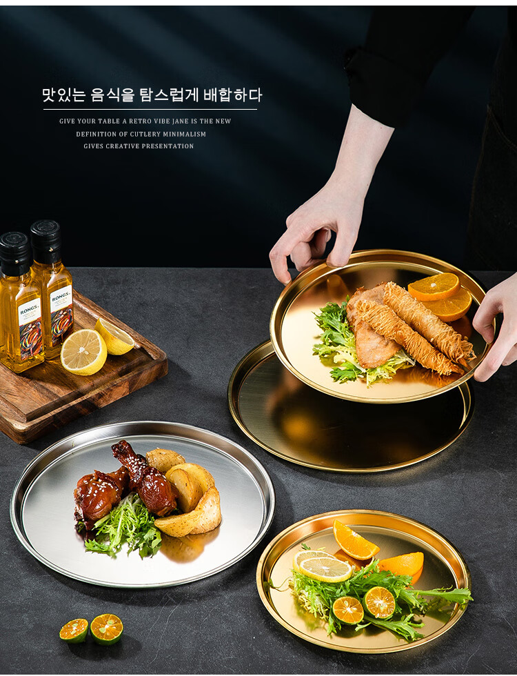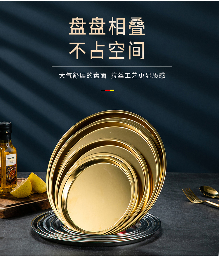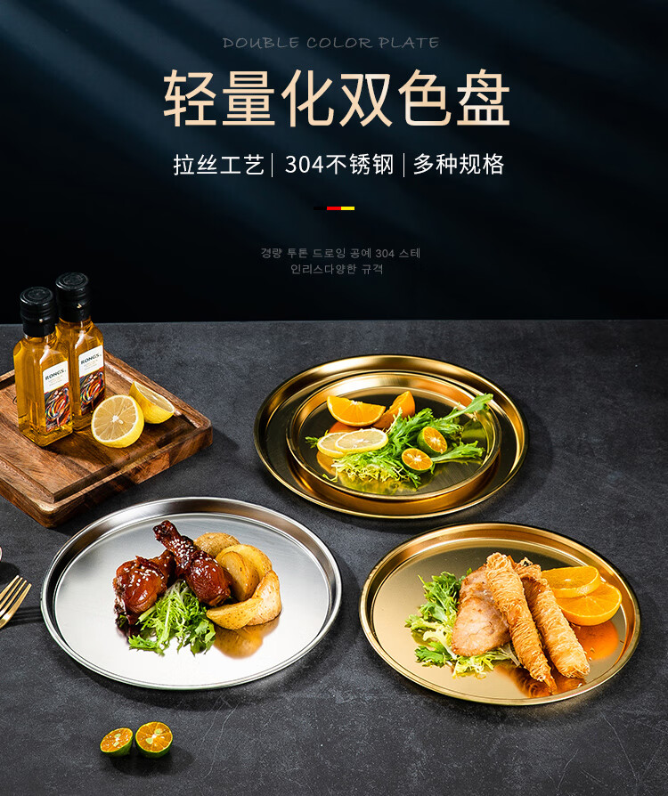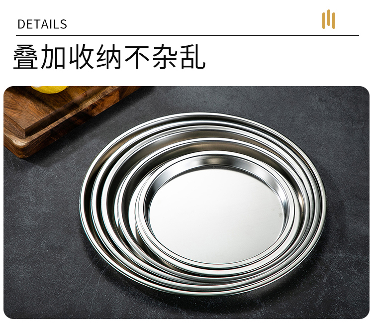 Meijia Kitchen Gang 304 stainless steel plate Home dining plate Nordic ins style Western plate steak plate tray flat bottom dessert plate 18cm silver flat bottom round plate-304 steel-