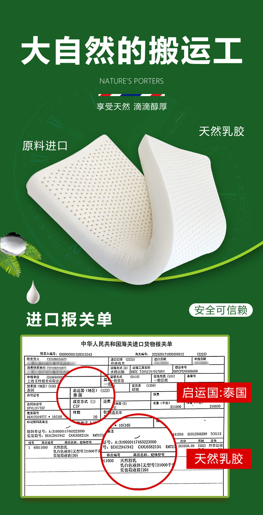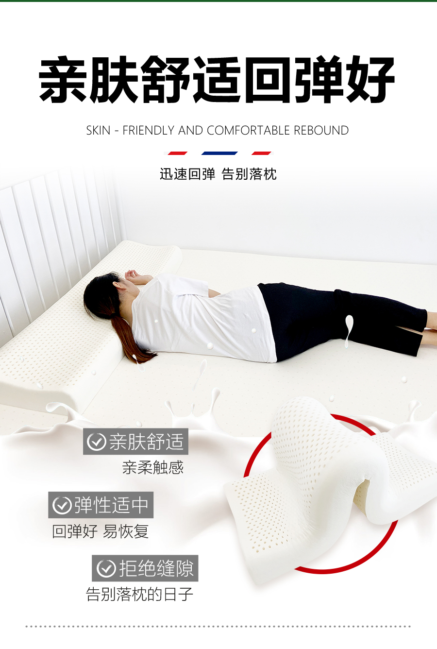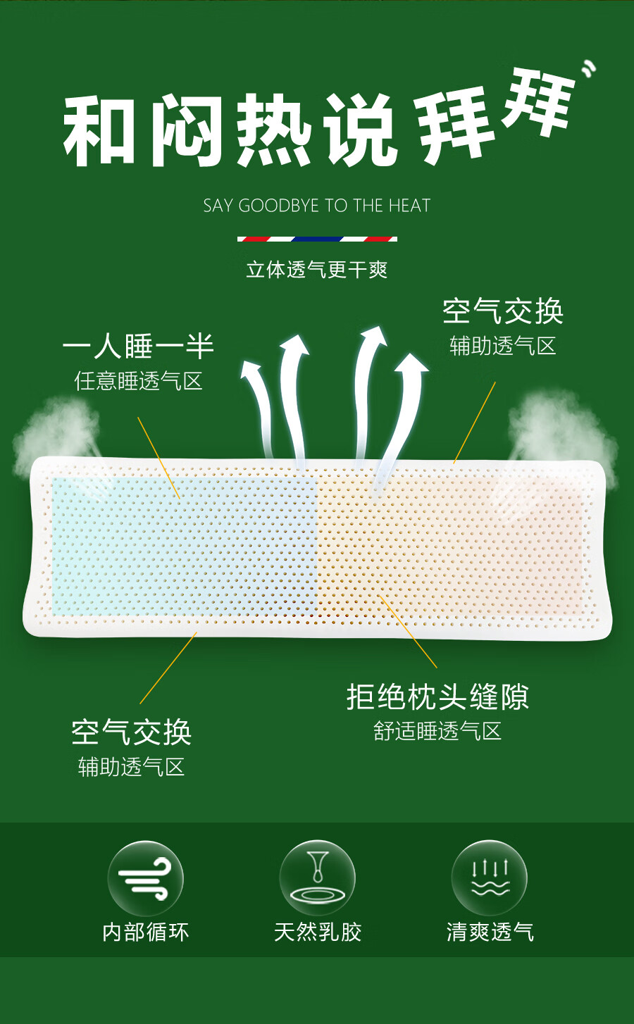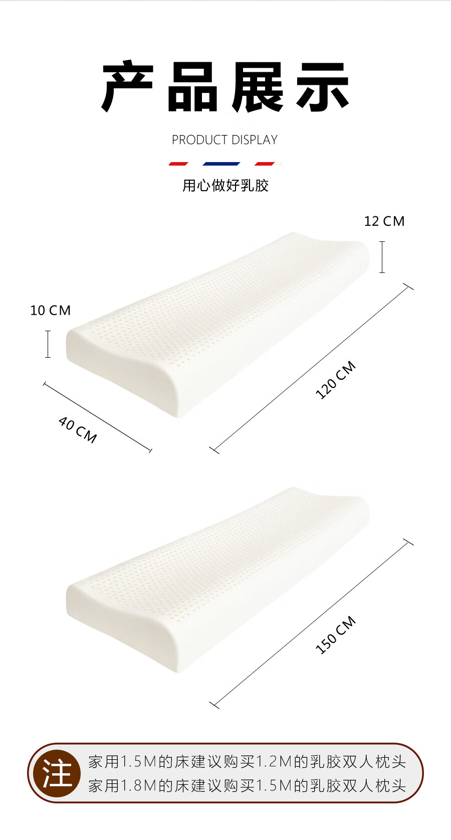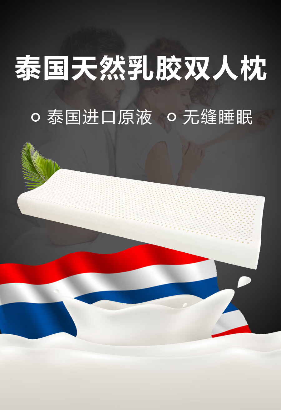Ever Rubber Dream double long pillow integrated latex pillow core strip for couples silicone 1.8m long 1.5m 1.2m extended medium and high pillow 1.5m long (blue jacket)