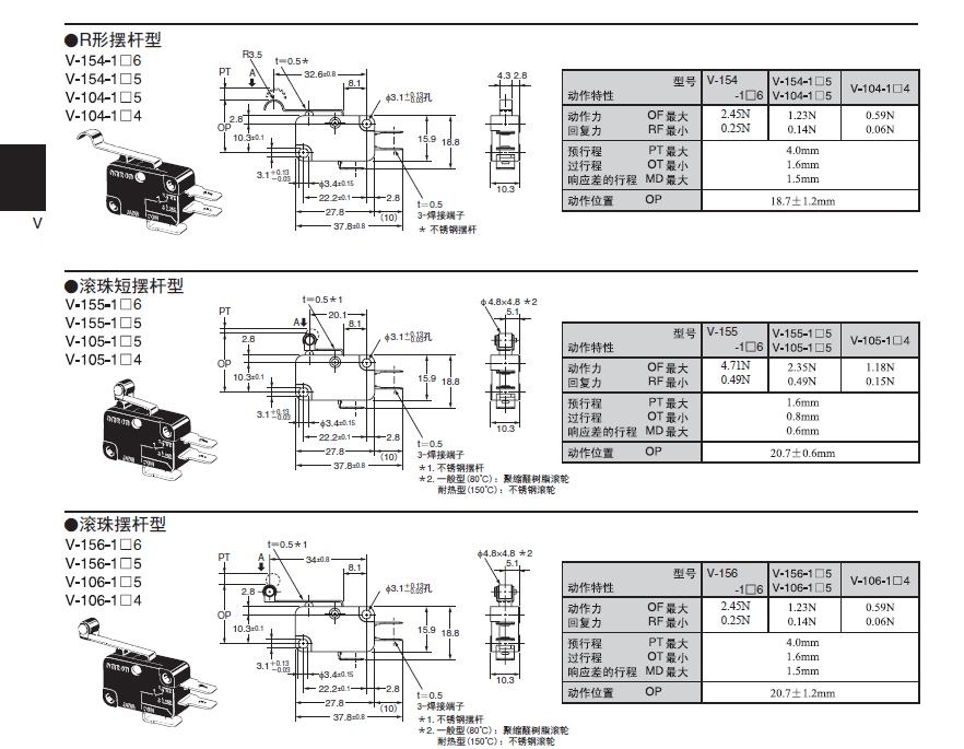 Omron original Omron OMRON small V-15 series micro switch travel switch limit switch V-155-1C25