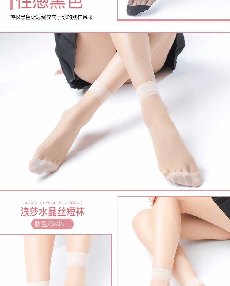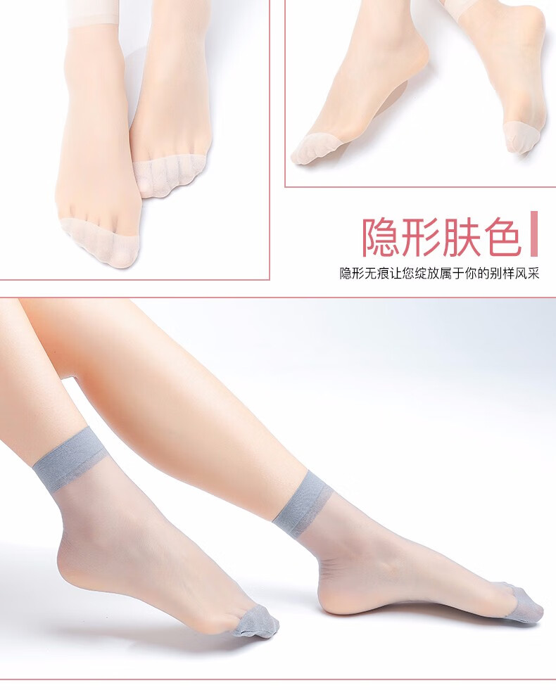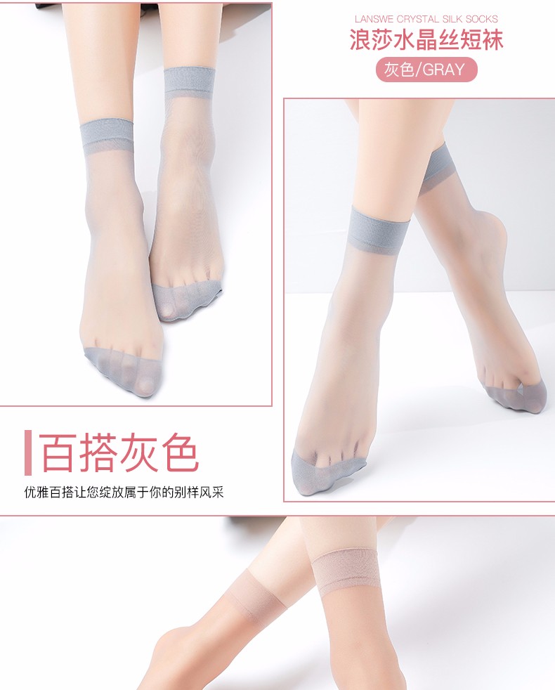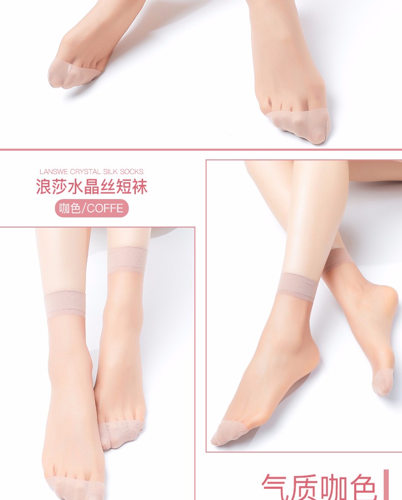Langsha Short Stockings Women's 10 Pairs Summer Thin Wear-Resistant Crystal Silk Breathable Socks Skin Color 10 Pairs One Size