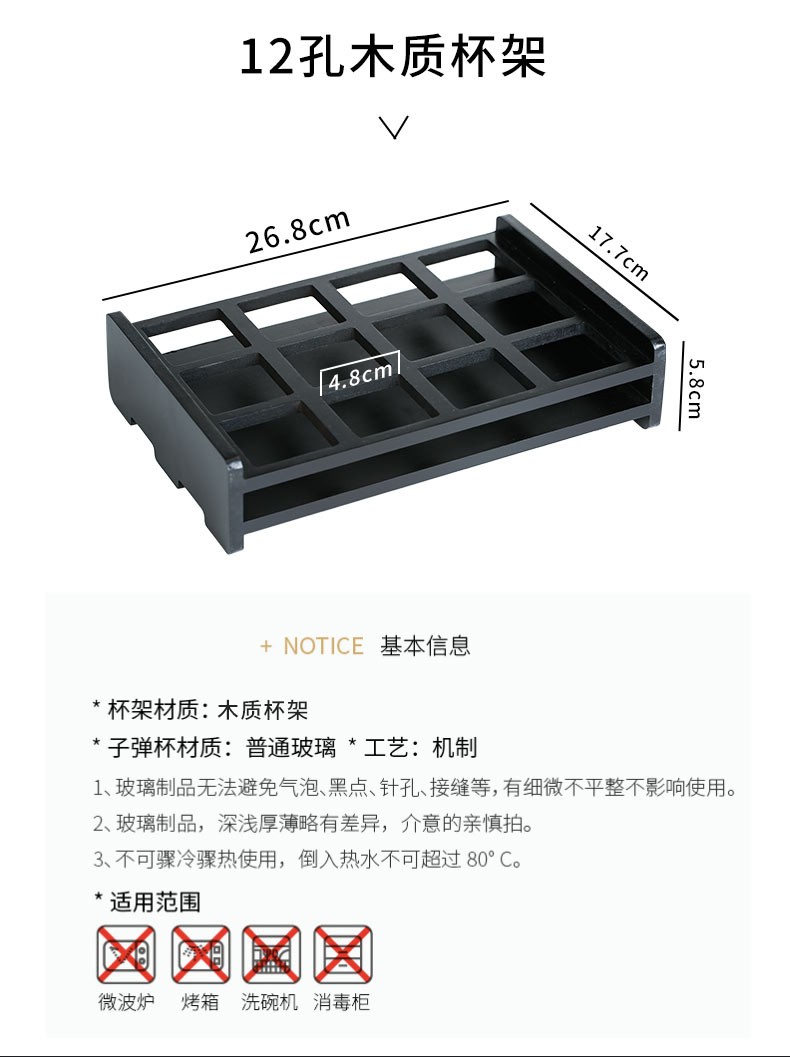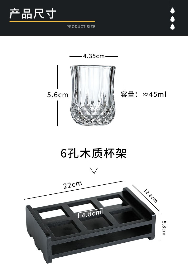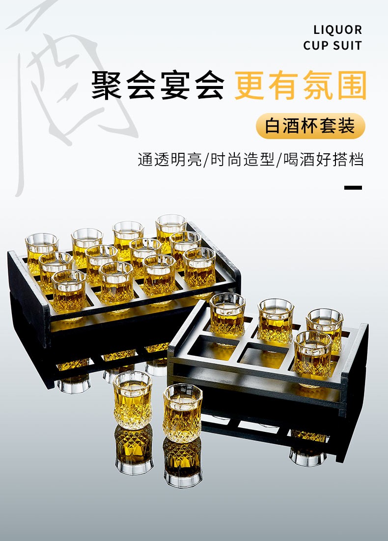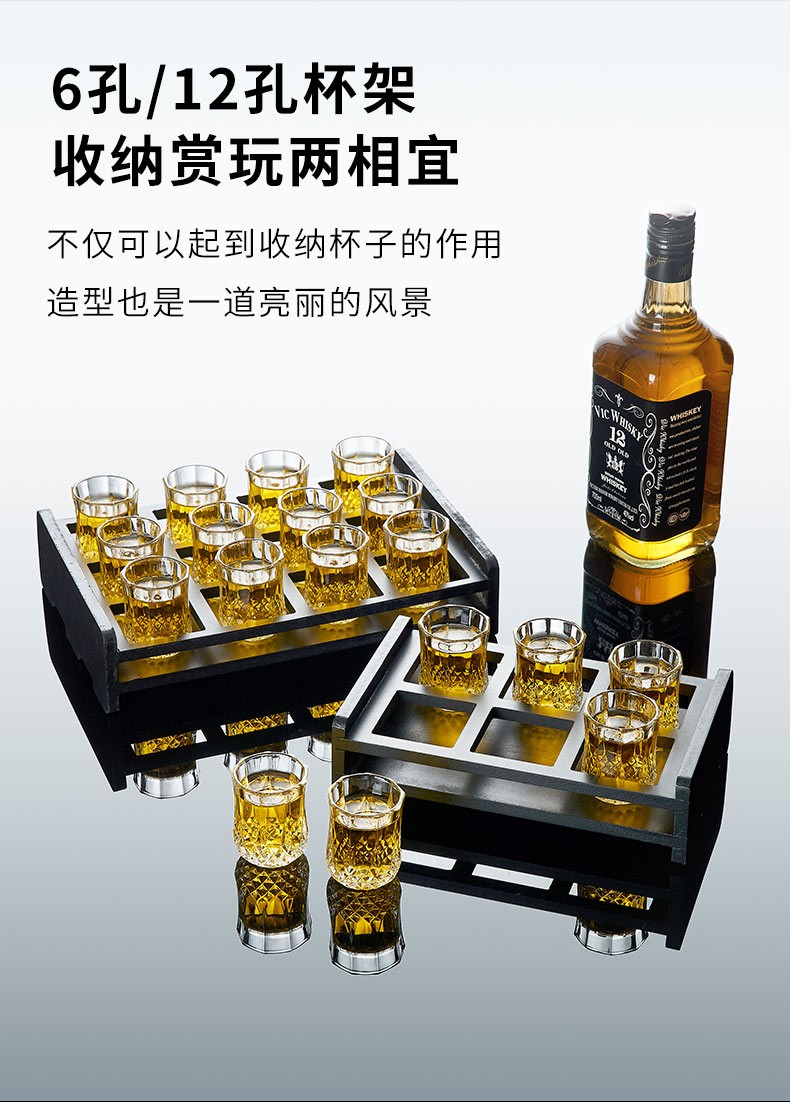 DELISOGA White wine glass for entertaining guests Home glass wine glass set KTV special foreign wine glass small one-shot spirits bullet cup 12 pieces 45ML wine glass + 12 hole cup holder