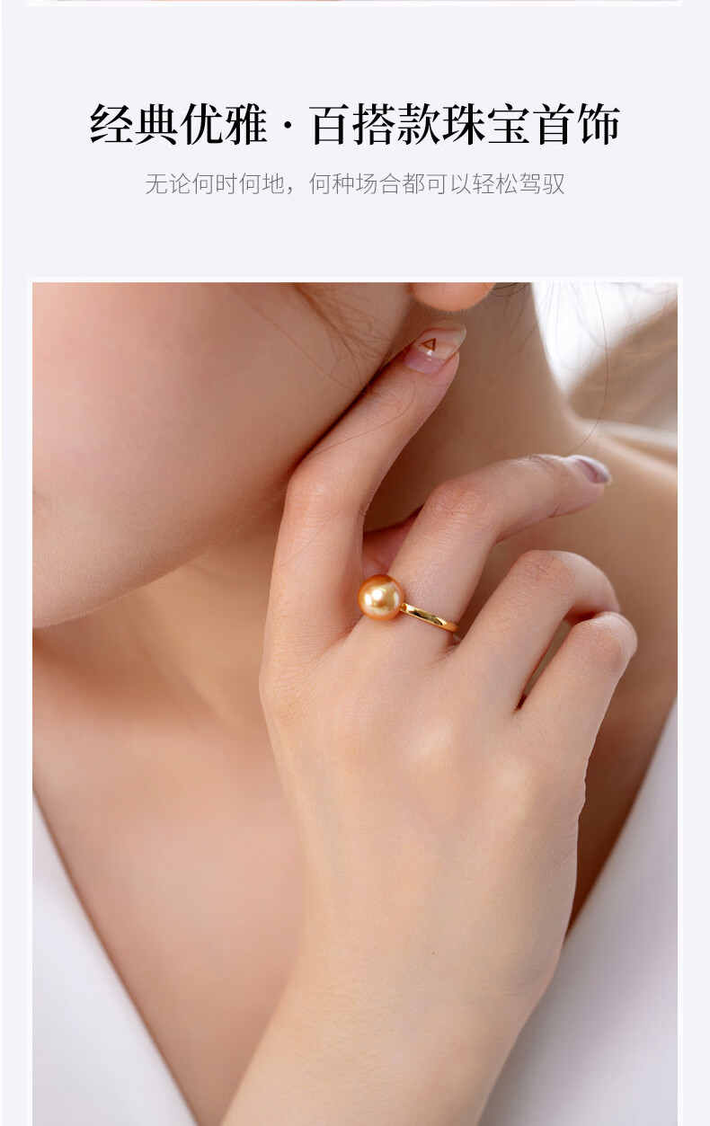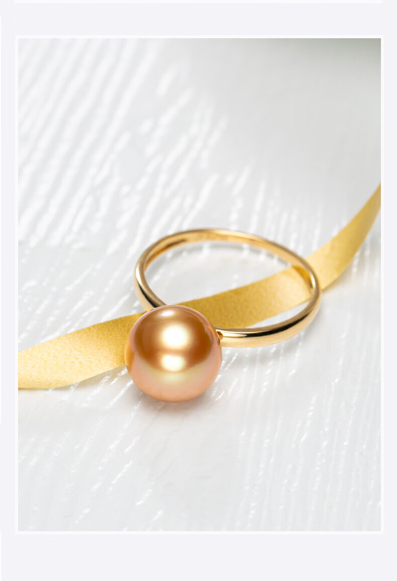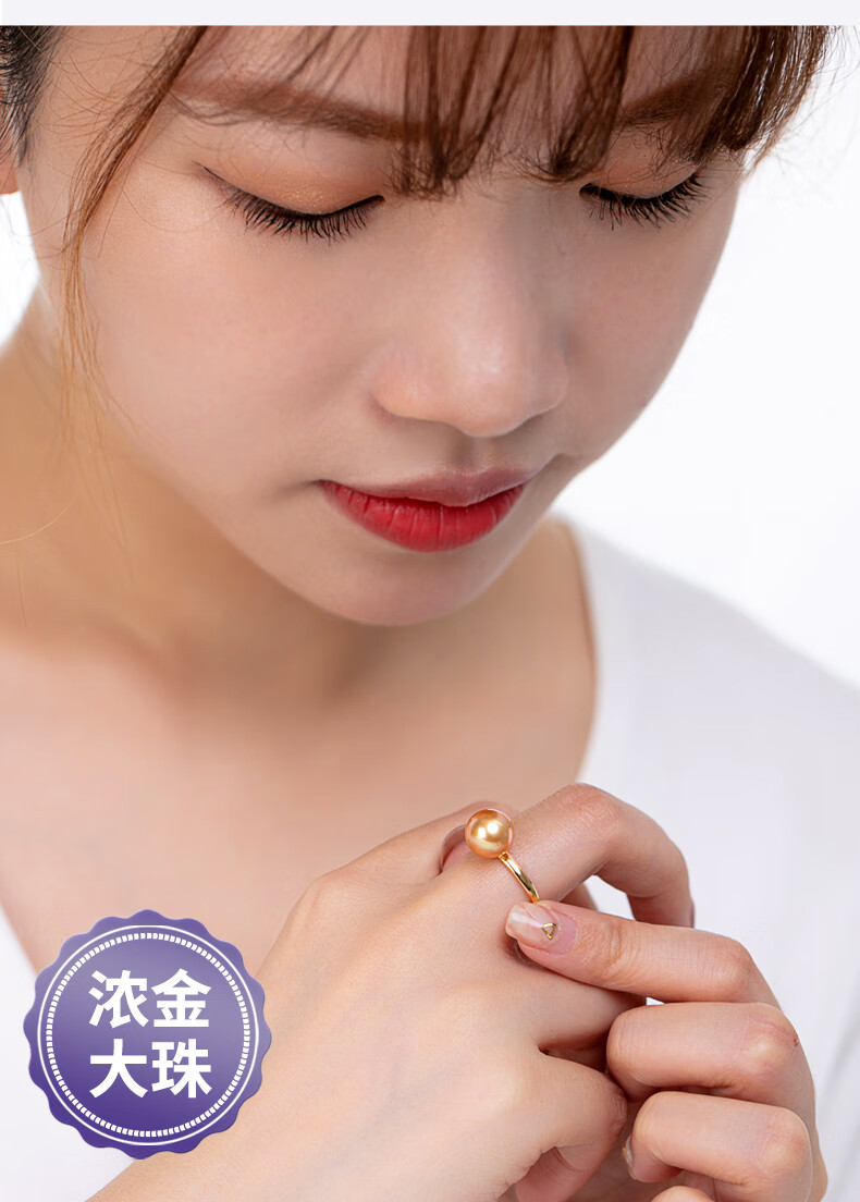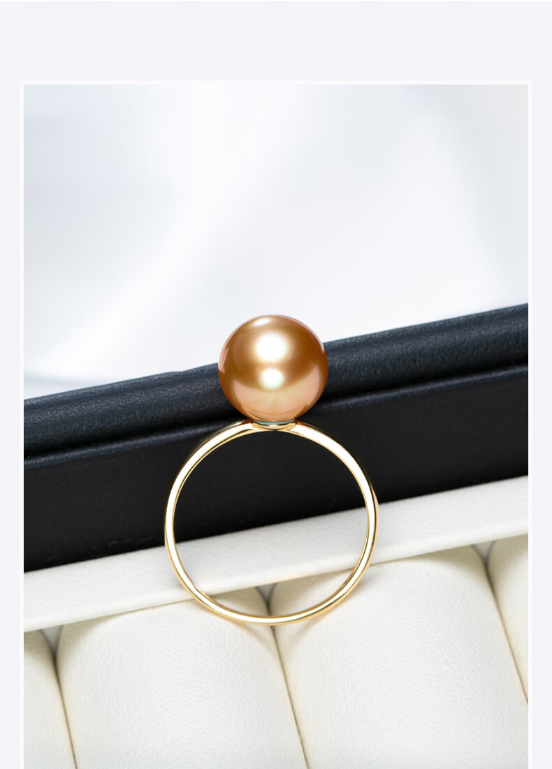 Haitong selected thick gold simple South Sea gold beads and pearl ring for women Jian Jie 18K gold seawater pearl ring S grade/almost flawless 10-11mm thick gold (No. 14 ring)