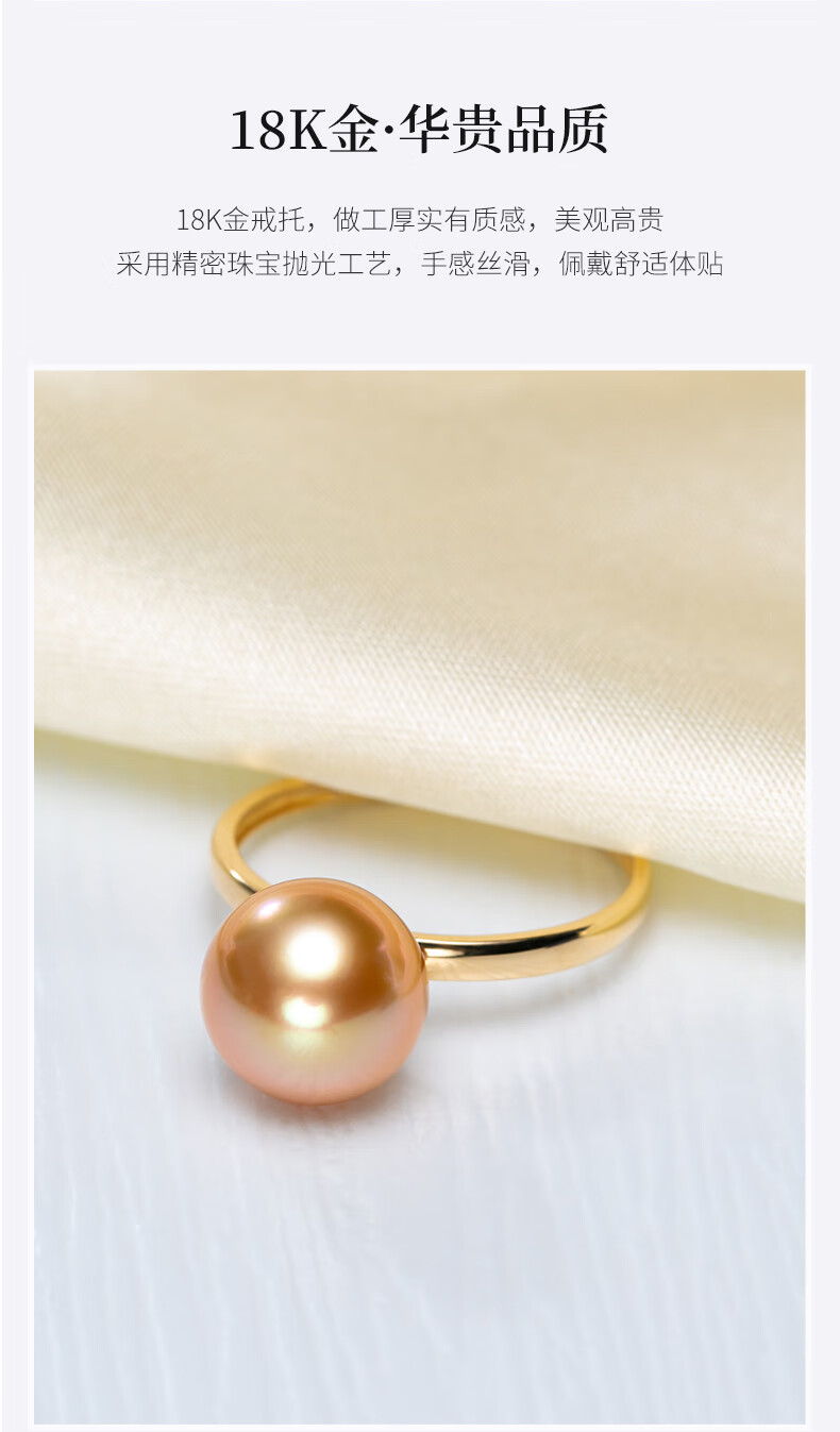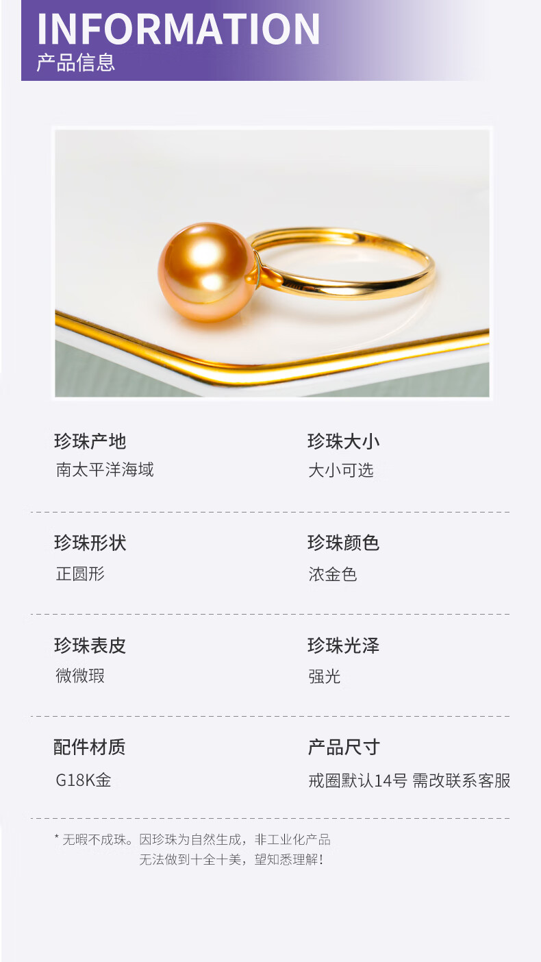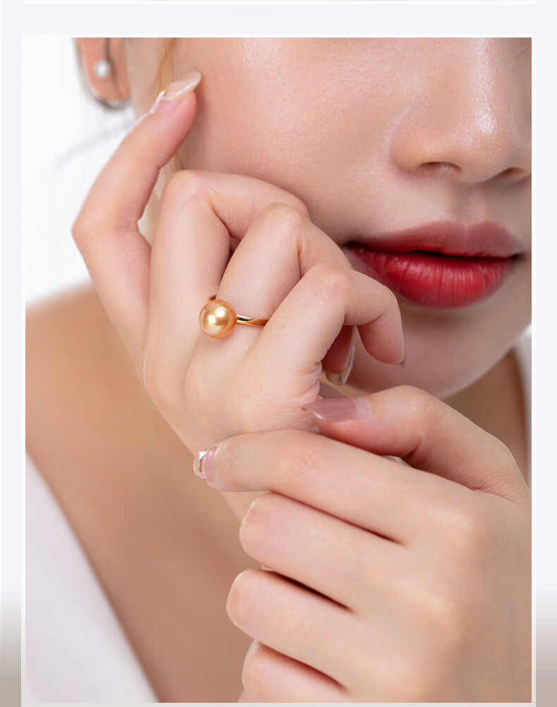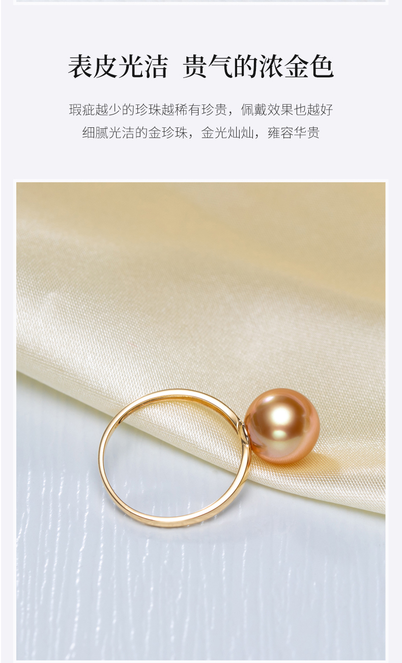 Haitong selected thick gold simple South Sea gold beads and pearl ring for women Jian Jie 18K gold seawater pearl ring S grade/almost flawless 10-11mm thick gold (No. 14 ring)