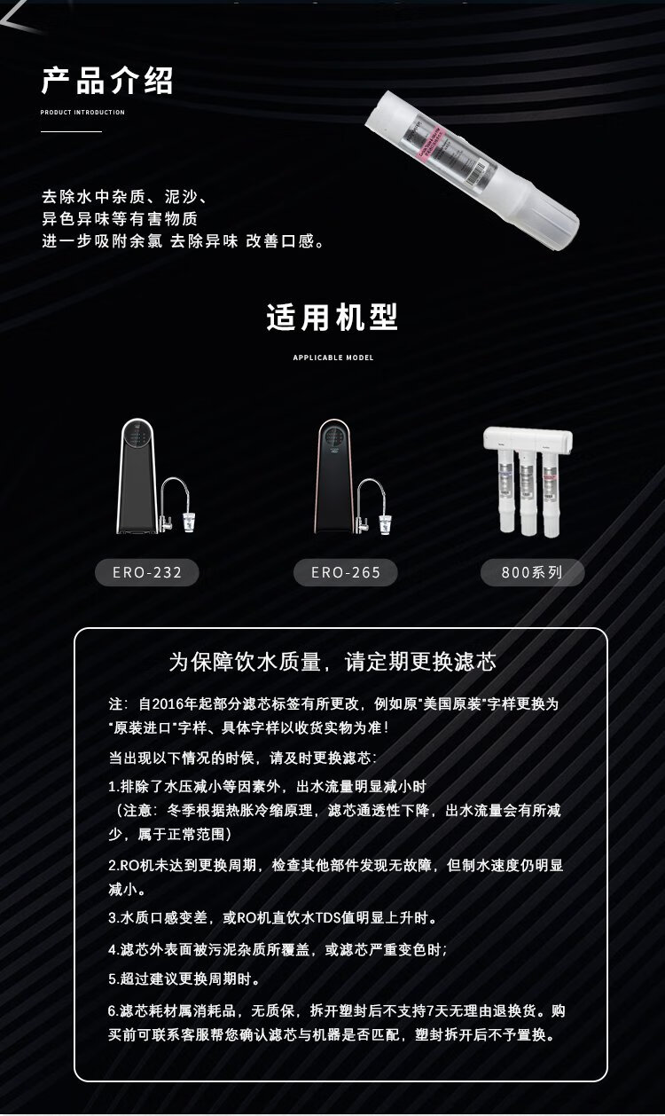 ECOWATER CTO filter element for household water purifier filter element suitable for ERO265/232/002-3 model, please contact customer service for details