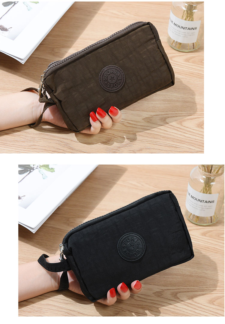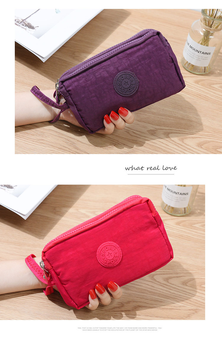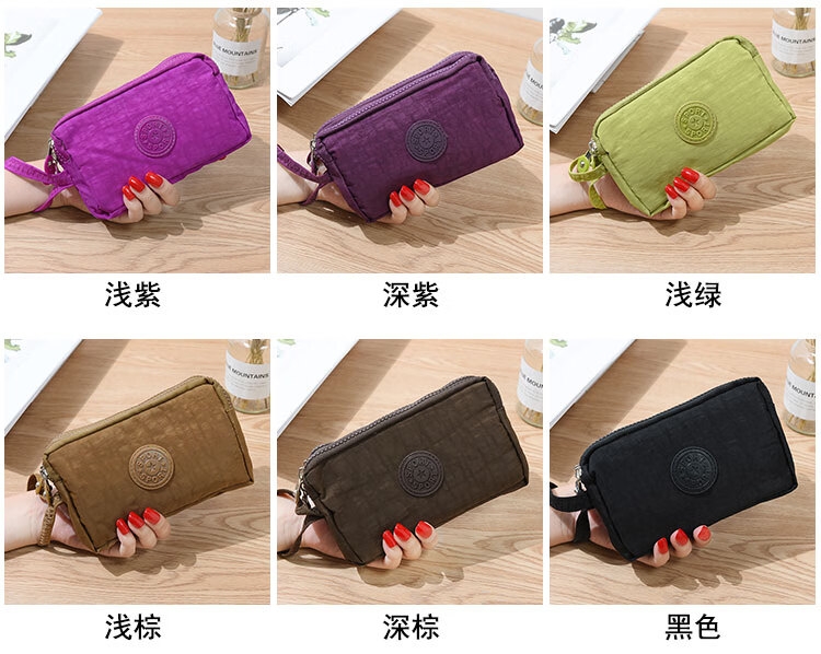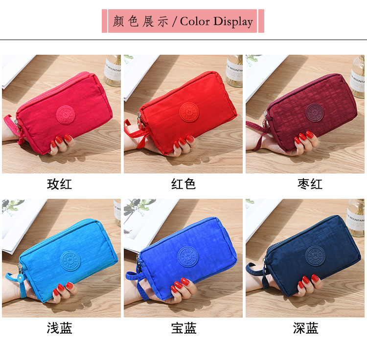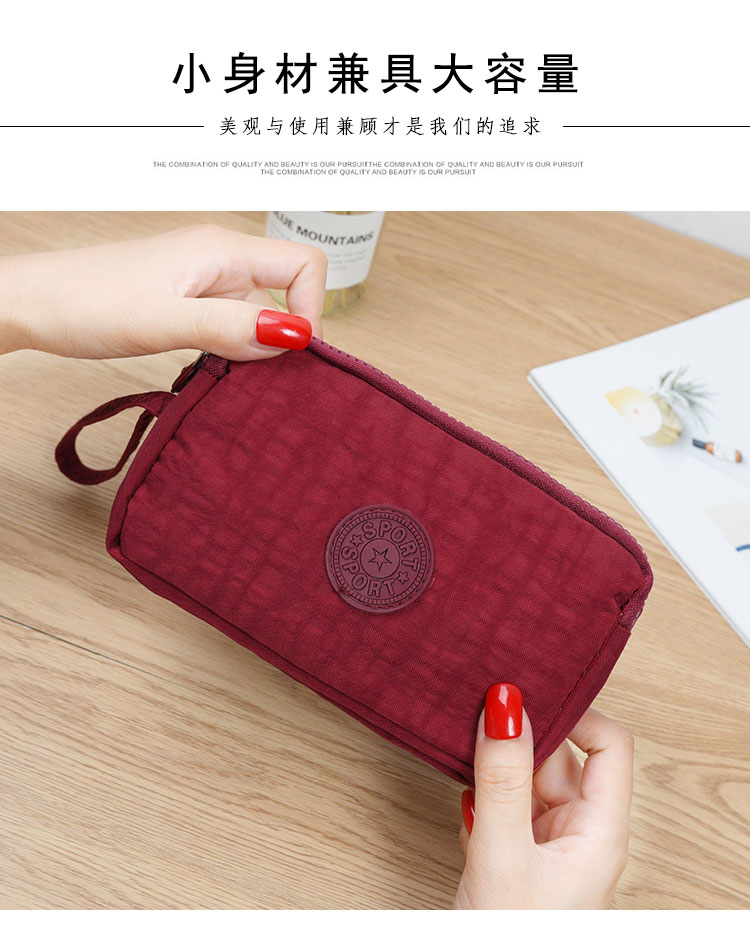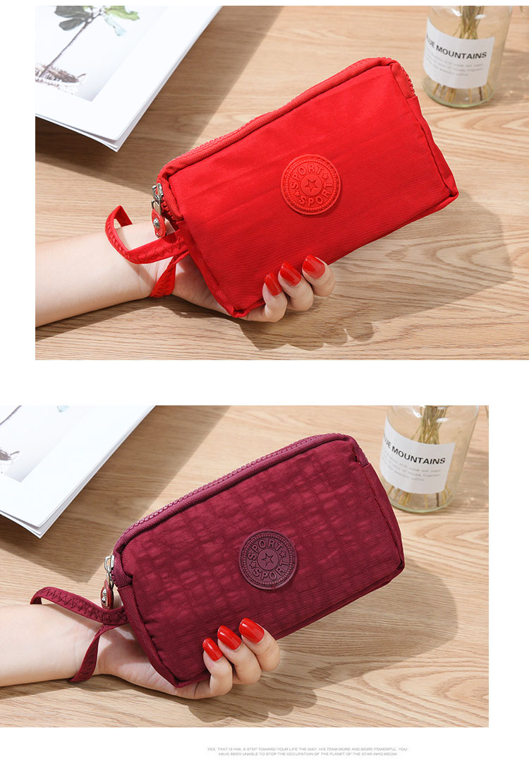 SHU GUO ER women's coin mobile phone bag three-layer zipper short mobile phone bag large horizontal hand coin purse maroon