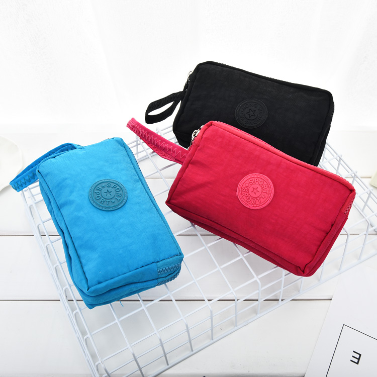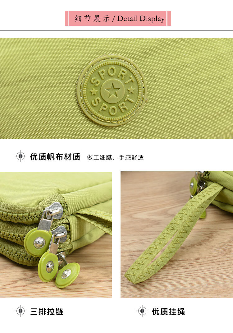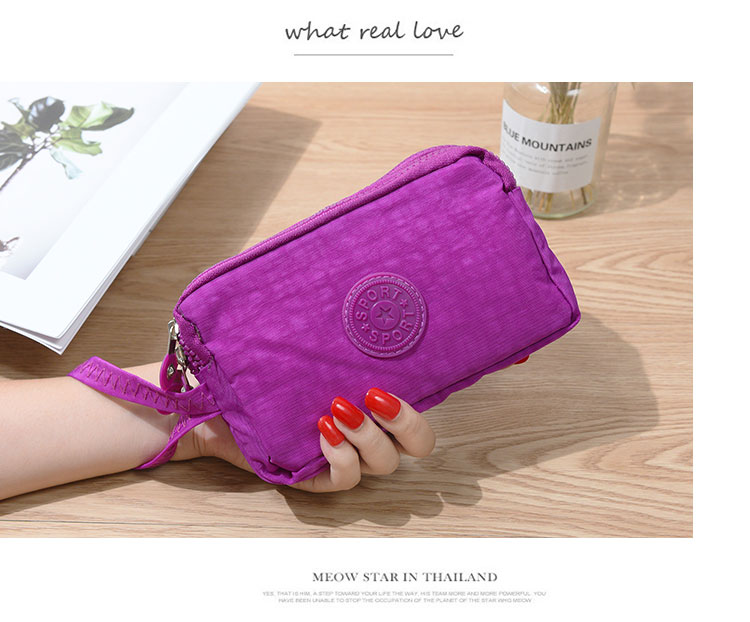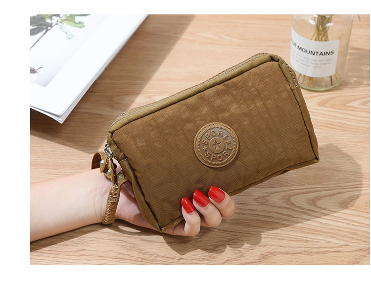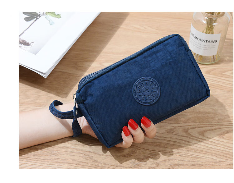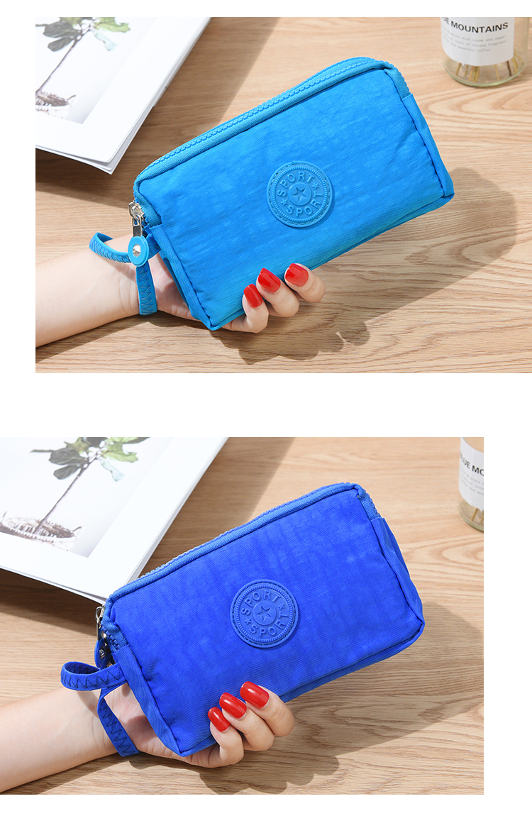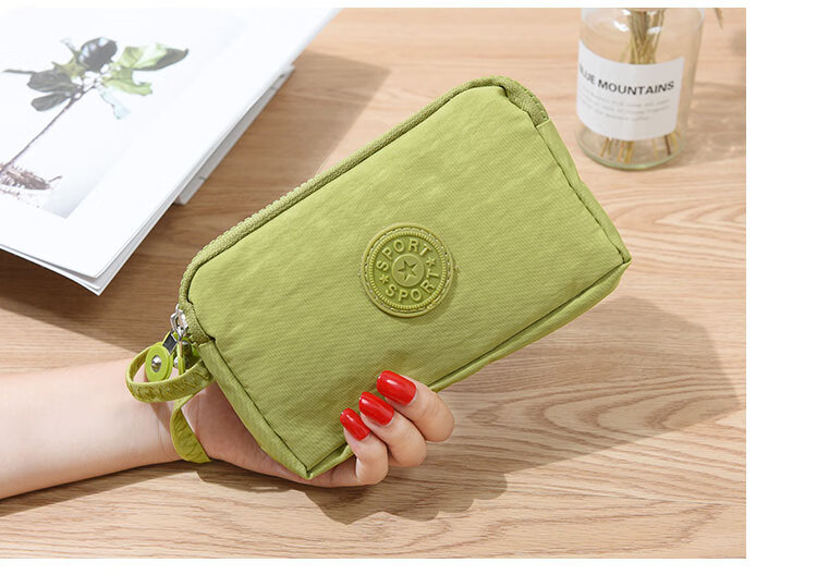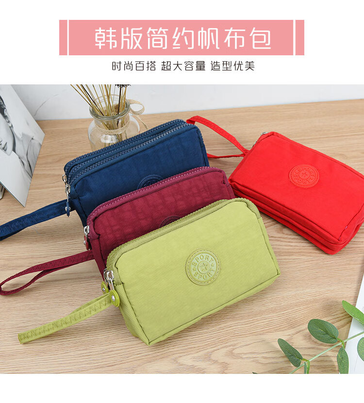 SHU GUO ER women's coin mobile phone bag three-layer zipper short mobile phone bag large horizontal hand coin purse maroon