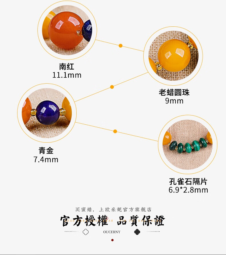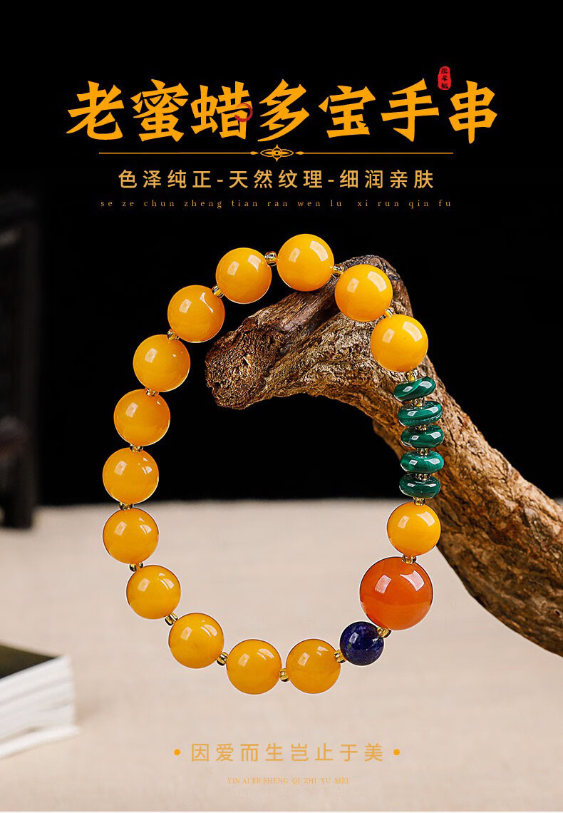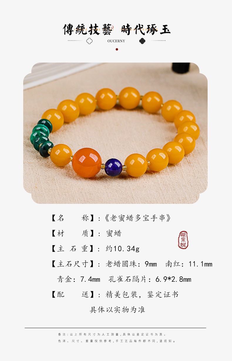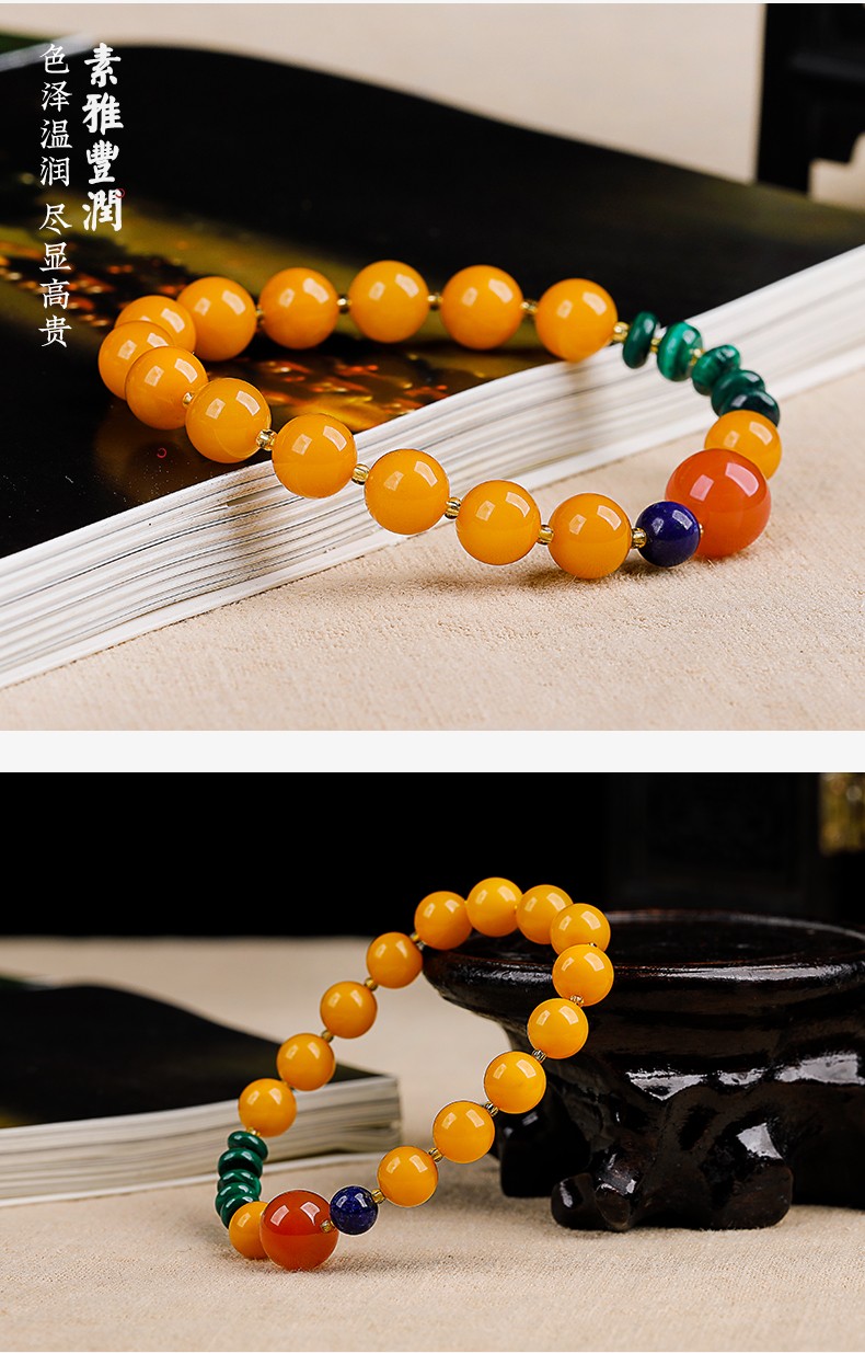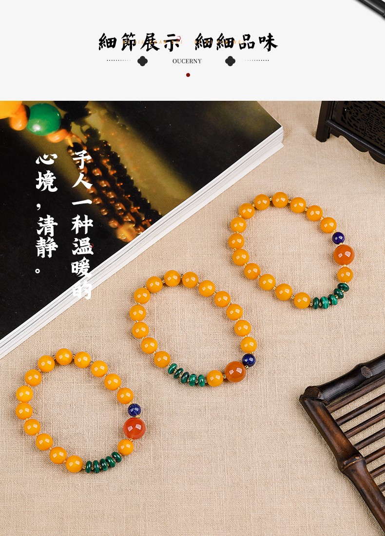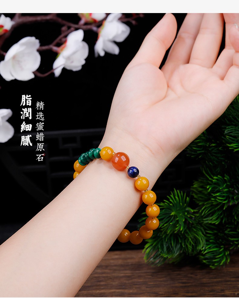 OUCERNY beeswax bracelet natural amber old beeswax southern red round beads malachite lapis lazuli single circle multi-treasure bracelet for men and women one item one certificate supports re-inspection