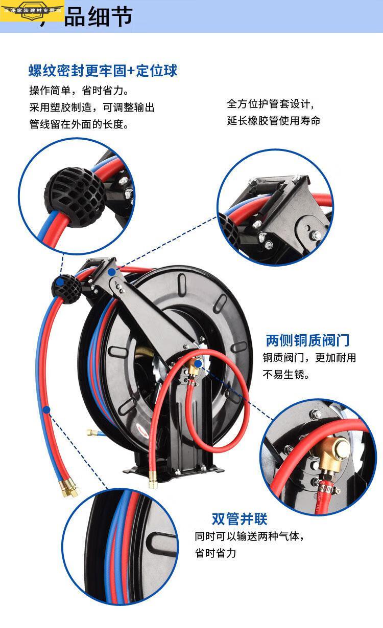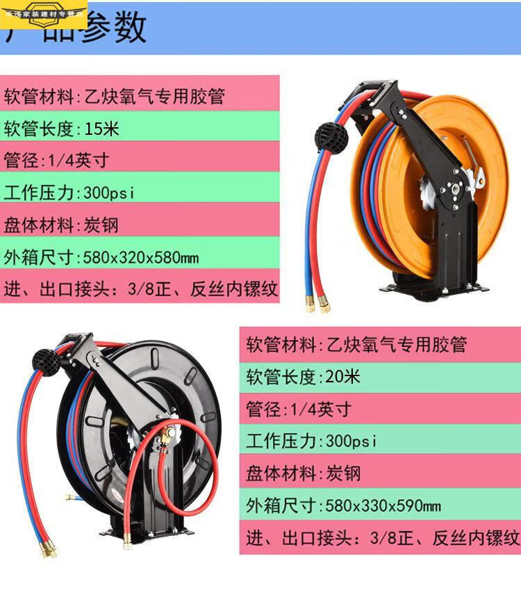 Festo oxygen acetylene drum parallel automatic telescopic reel double-tube drum metal reel oxygen welding cutting 20 meters small plate (yellow) oxygen acetylene drum 10 meters