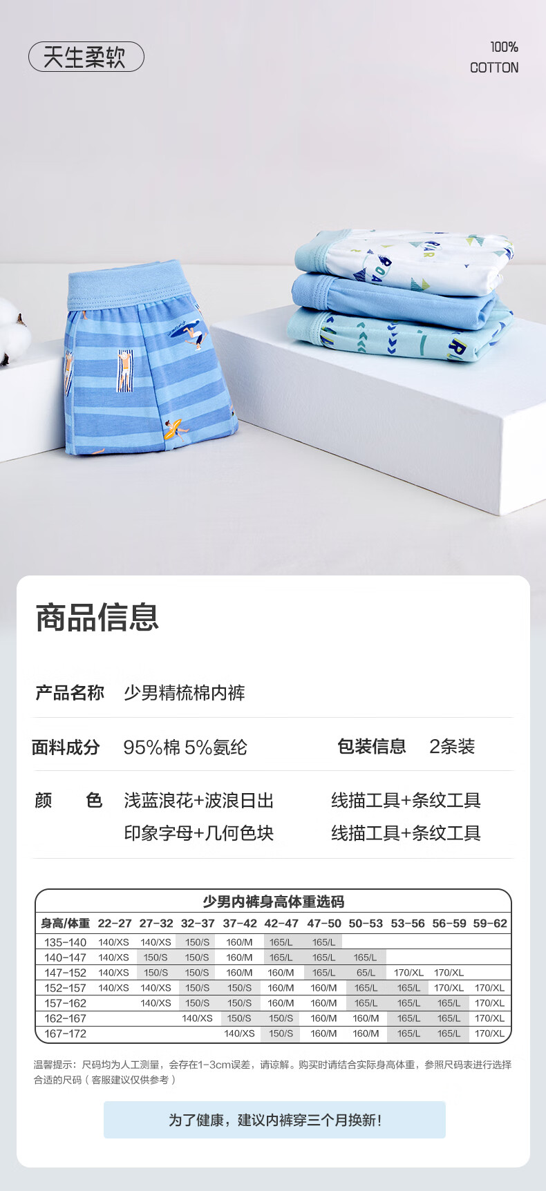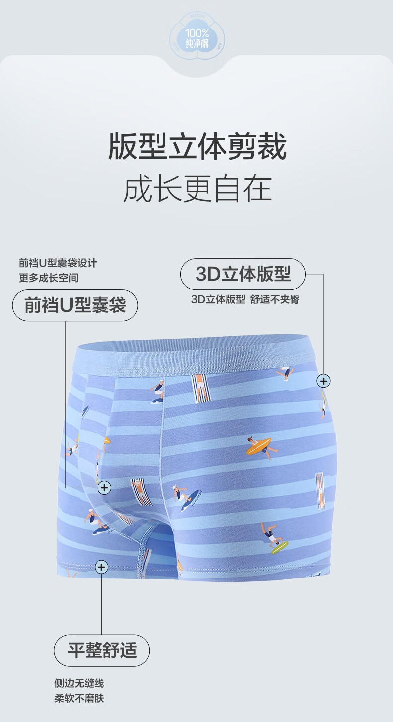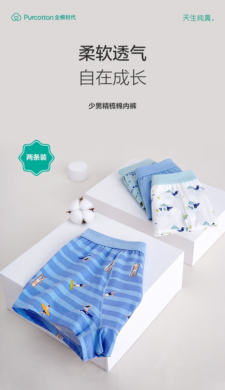 Cotton Era Pure Cotton Boys Underwear, 2-pack Surfer Boy+Water Mist Green (Mid-waist Boxer) 2-Pack 160