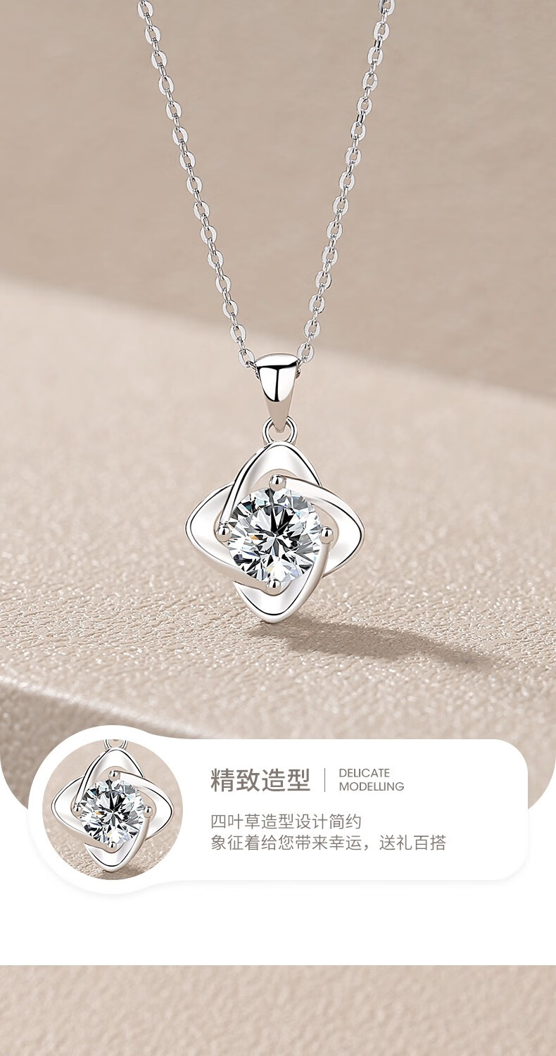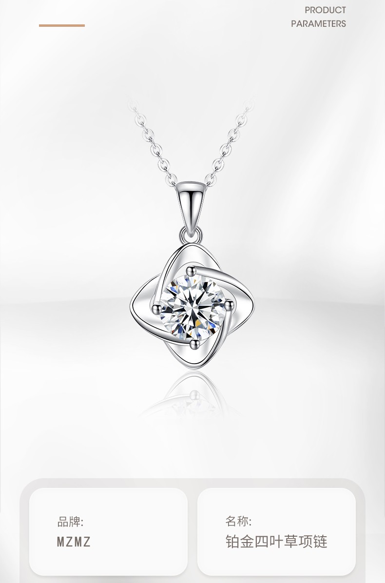 MZMZ platinum necklace women's four-leaf clover diamond PT950 platinum birthday gift for Chinese Valentine's Day for girlfriend and wife, light luxury model-bright zirconium can be engraved