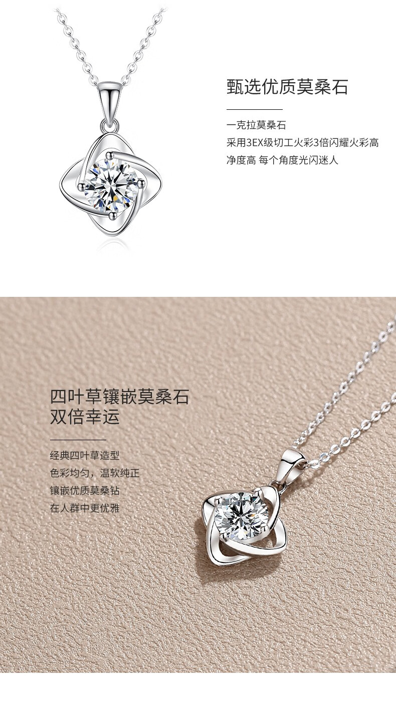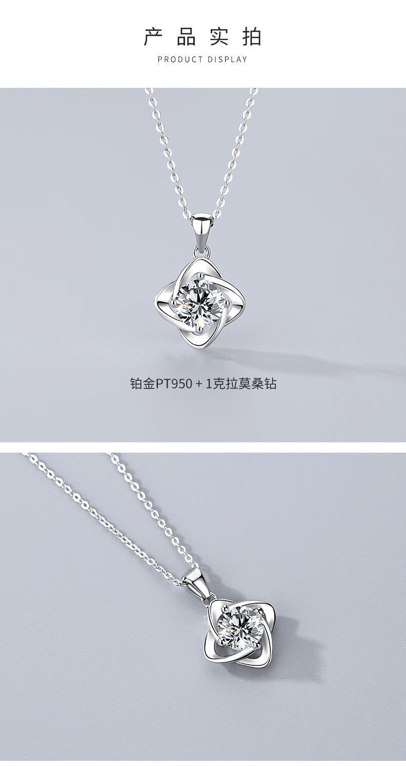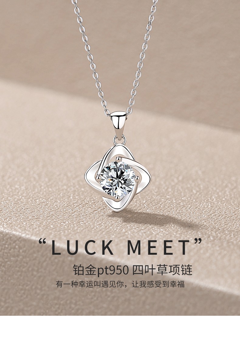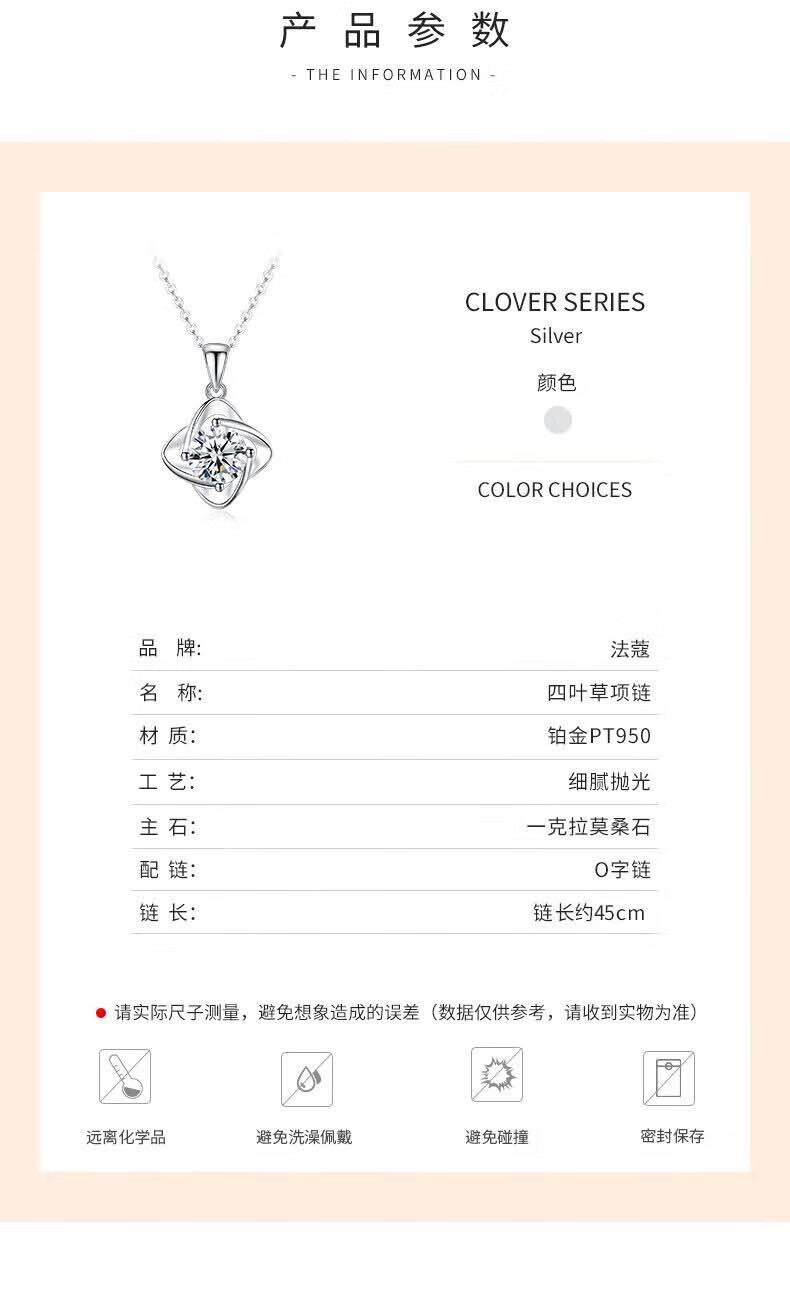Farcoko pt950 platinum four-leaf clover necklace for women platinum clavicle chain moissanite diamond pendant birthday gift for girlfriend platinum four-leaf clover necklace (one carat moissanite diamond) - comes with certificate free engraving
