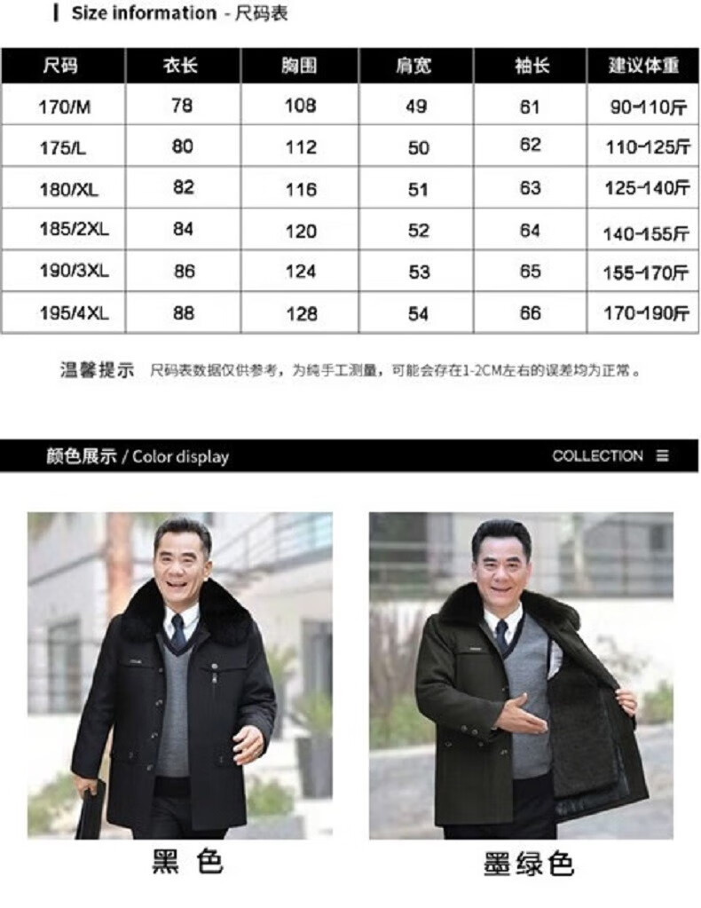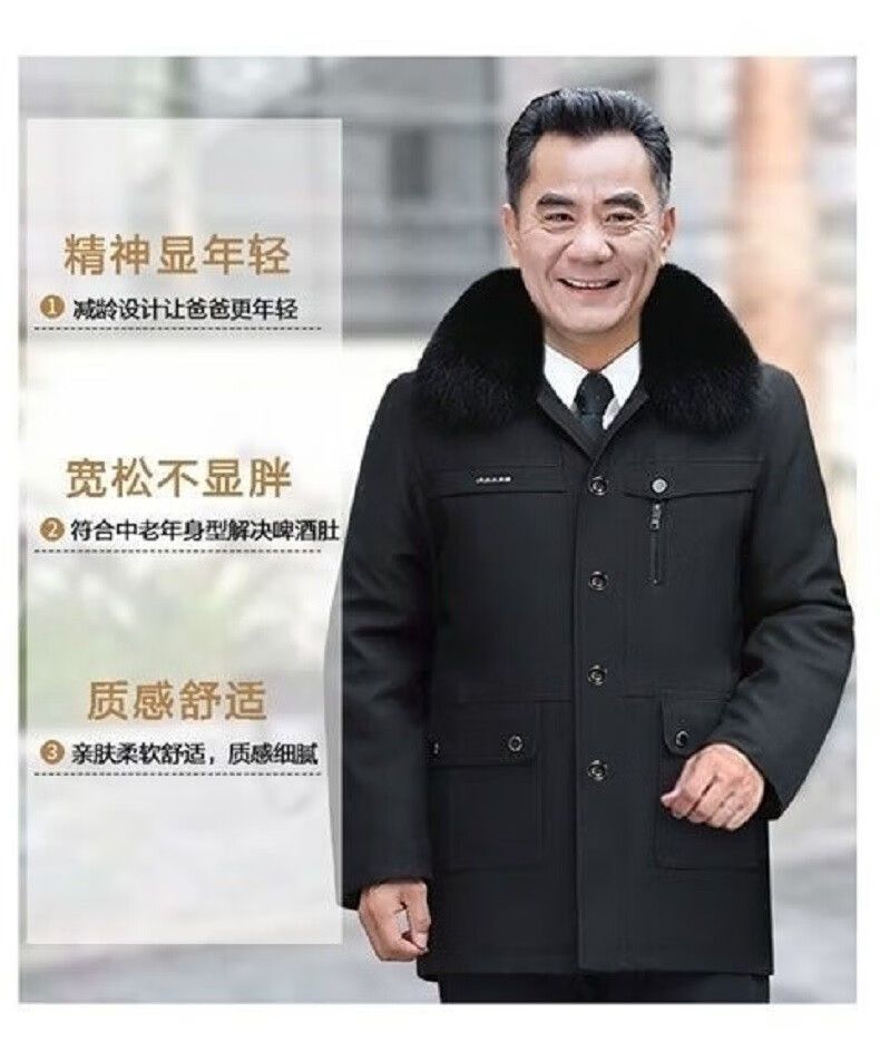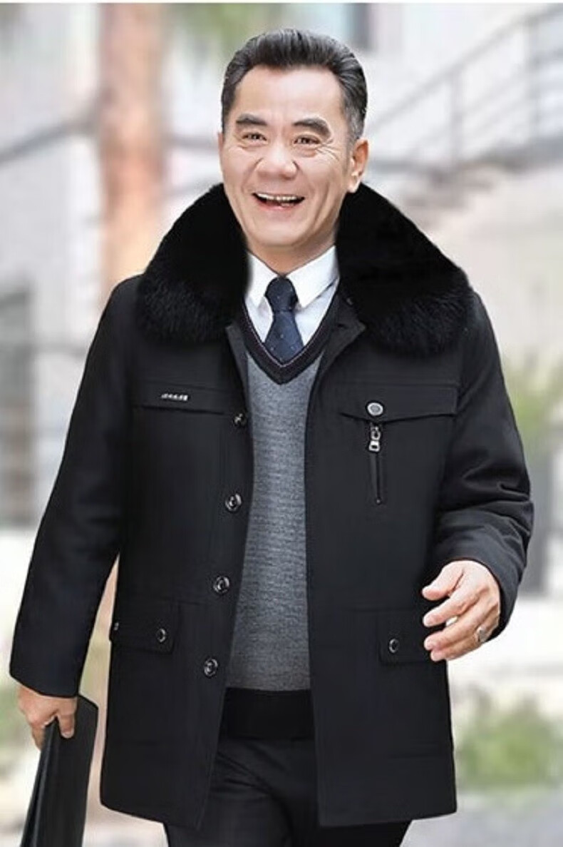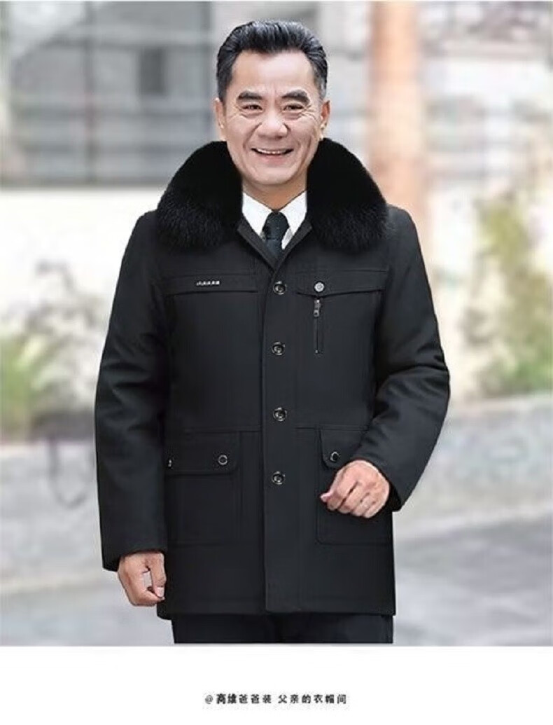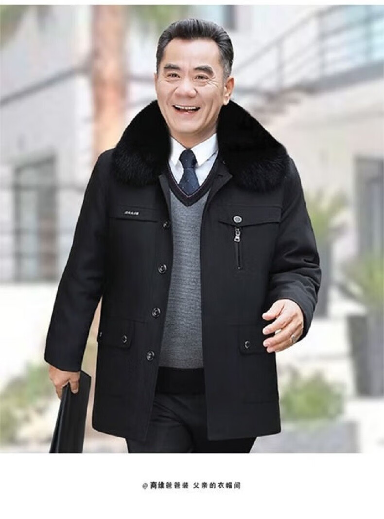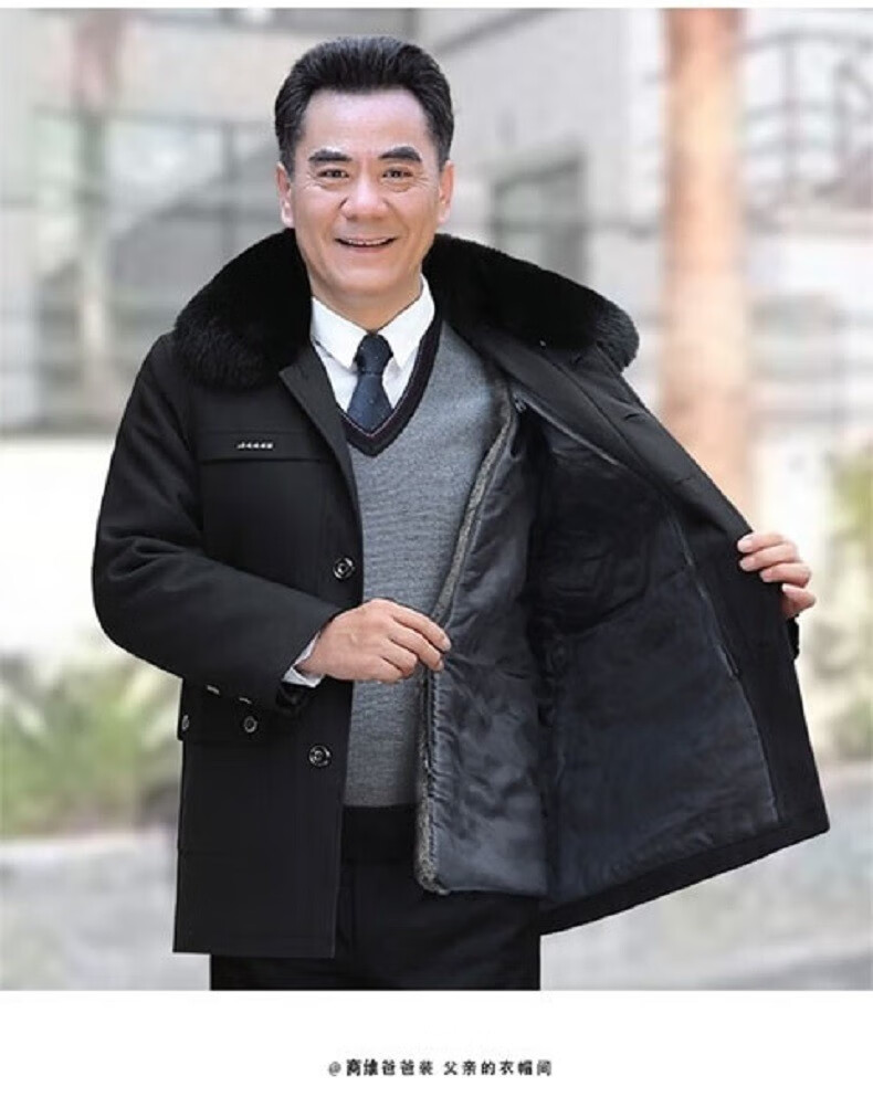 AFILMBY cotton-padded men's jackets for middle-aged and elderly men's autumn and winter velvet cotton jackets for dad men's casual trendy clothes for the elderly men black (removable liner) 2XL (120-140)