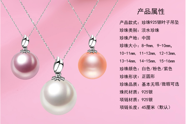 Pearls connected with shells, perfect round freshwater pearls, 925 silver leaf shape, solid pendant for women, 520, gift for girlfriend, 7.5-8mm, flawless purple pearls