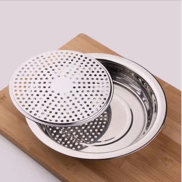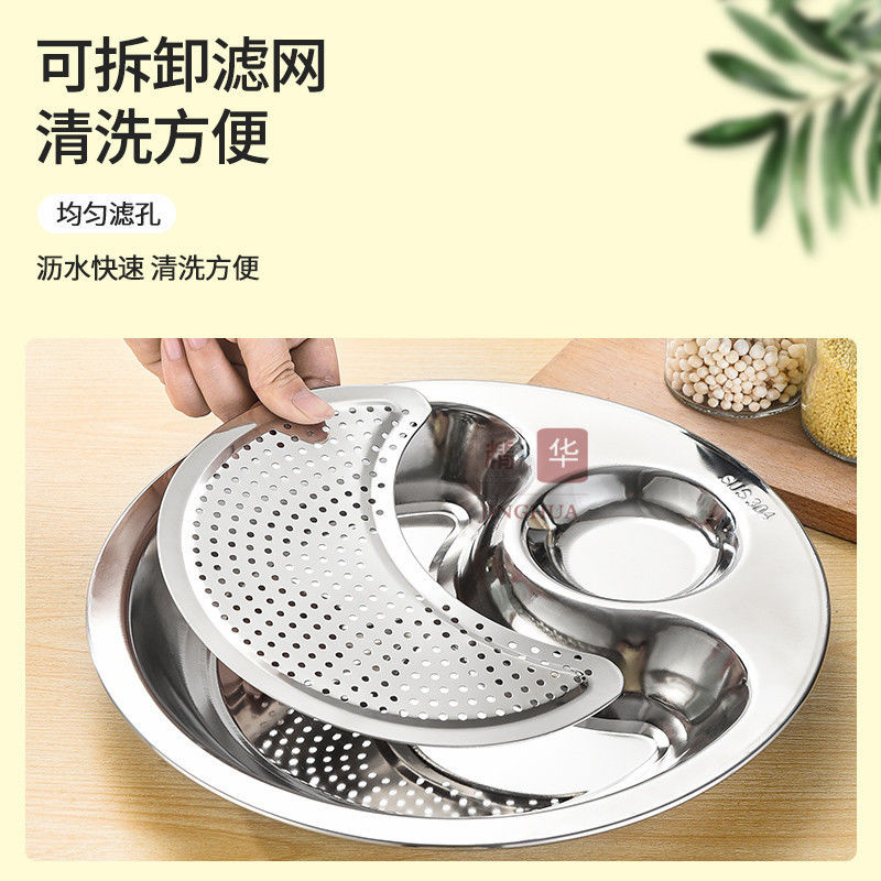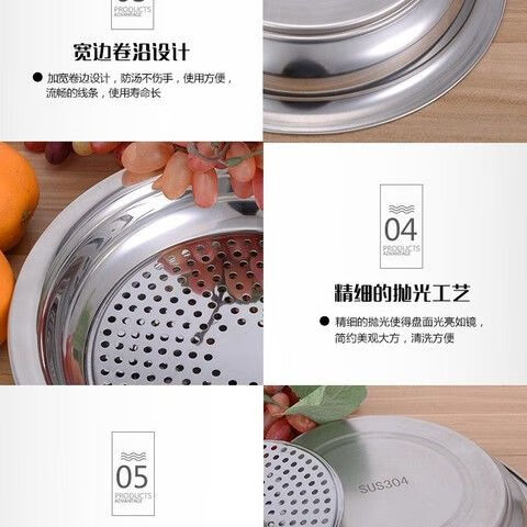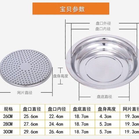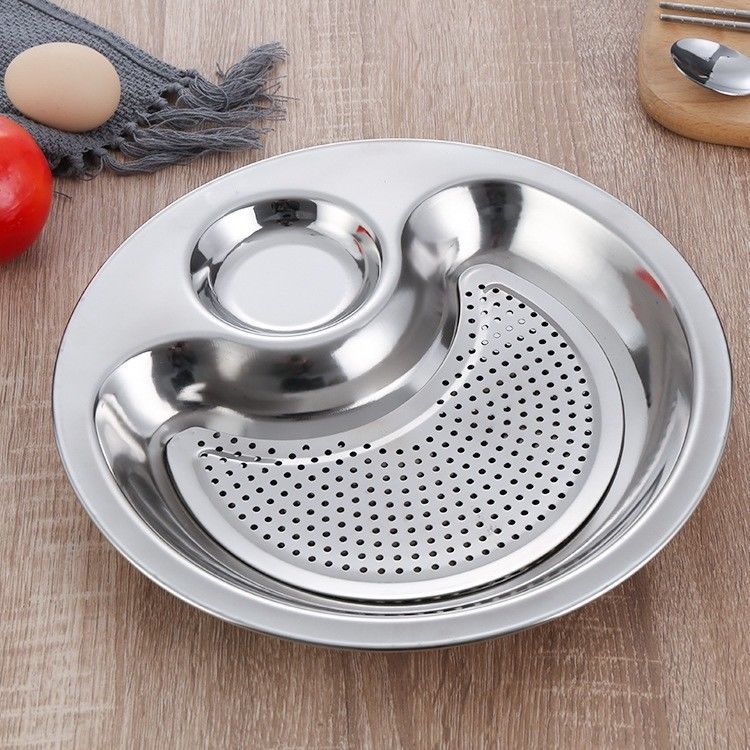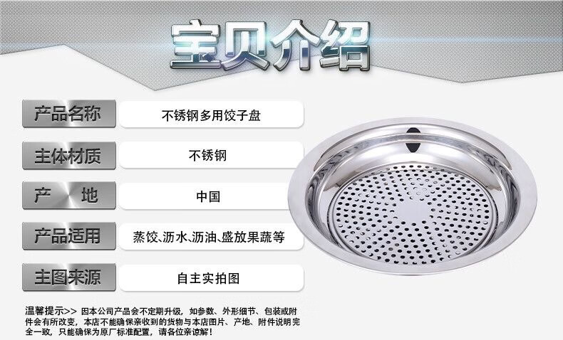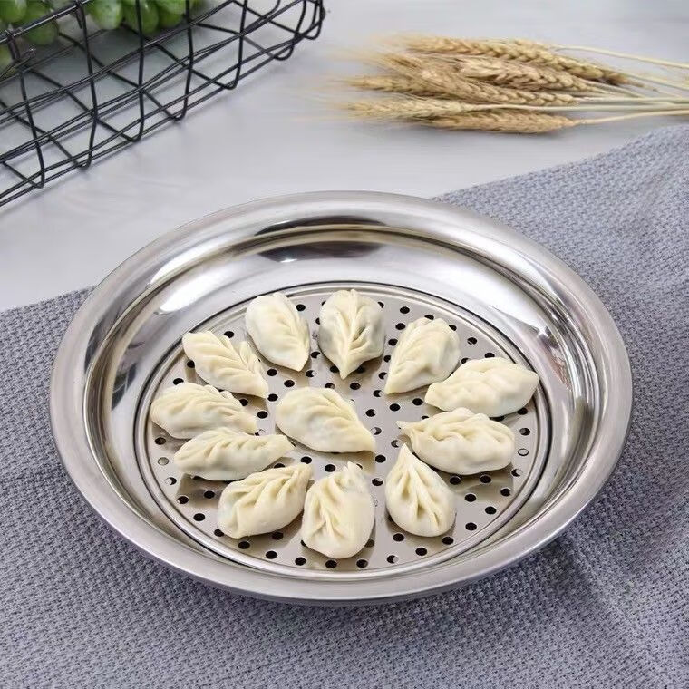 Peizhou dumpling plate stainless steel tray round plate dumpling plate household drain plate dumpling plate creative multi-purpose plate flat plate round flat plate thickened 30cm