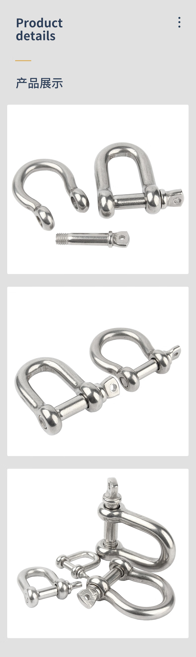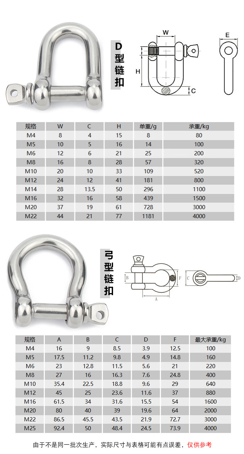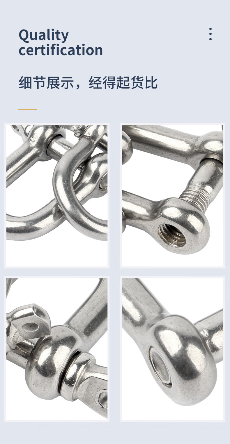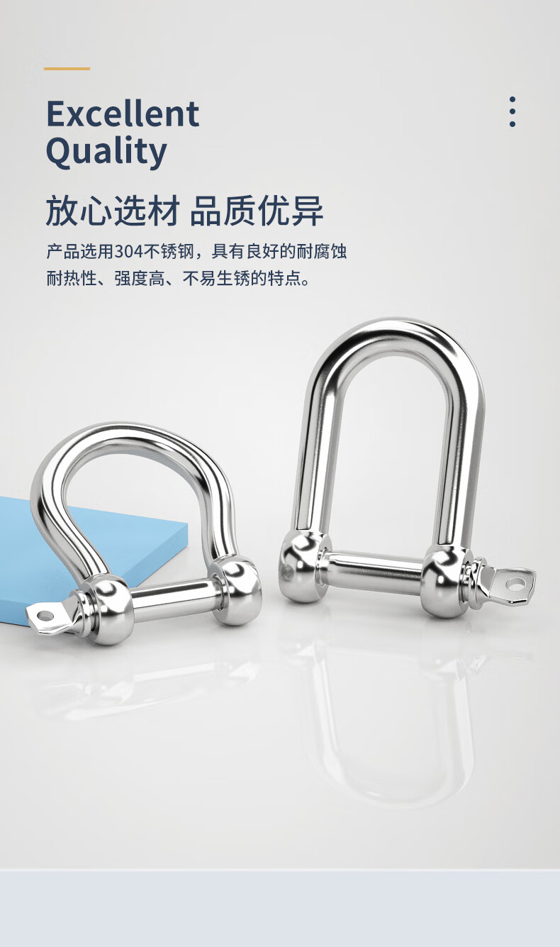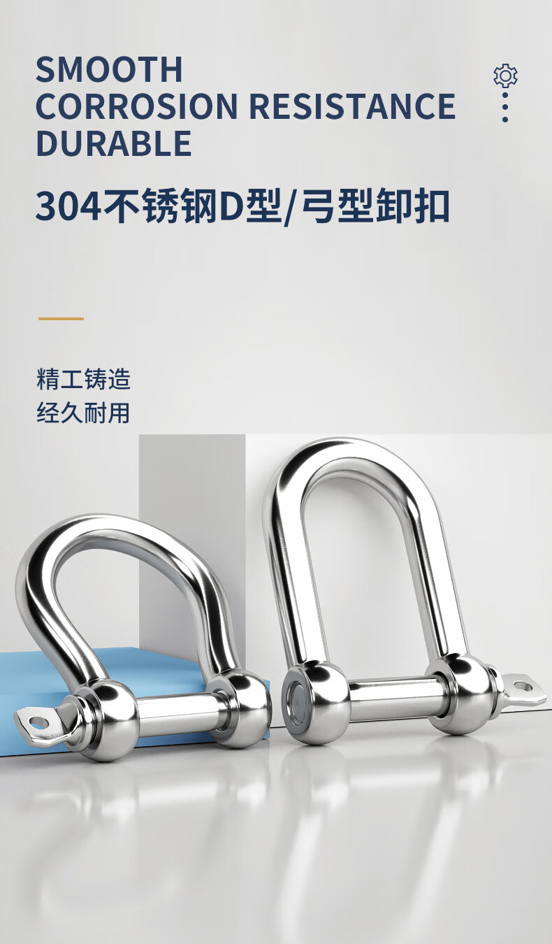 Guwanji national standard 304 stainless steel D-shaped shackle extended d-shaped lifting U-shaped connecting buckle chain steel buckle quick-connecting bow type 304 D type M4 1 piece, load-bearing about 0.1 tons