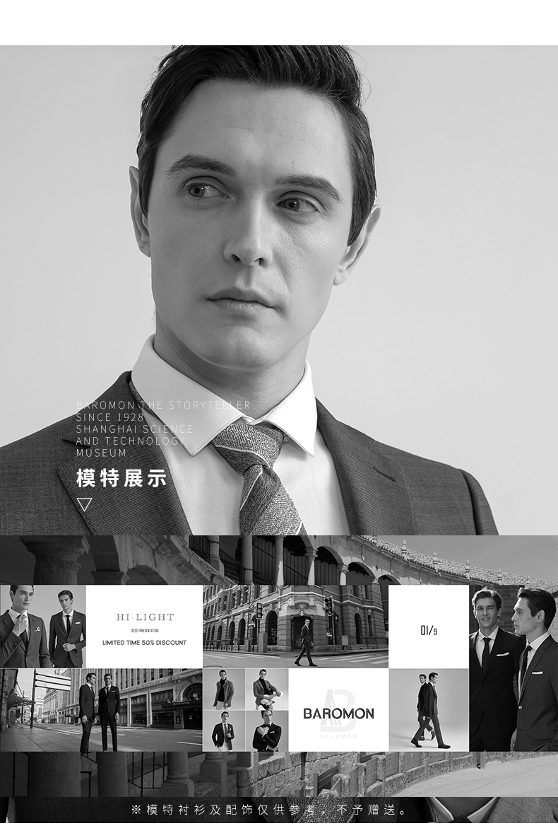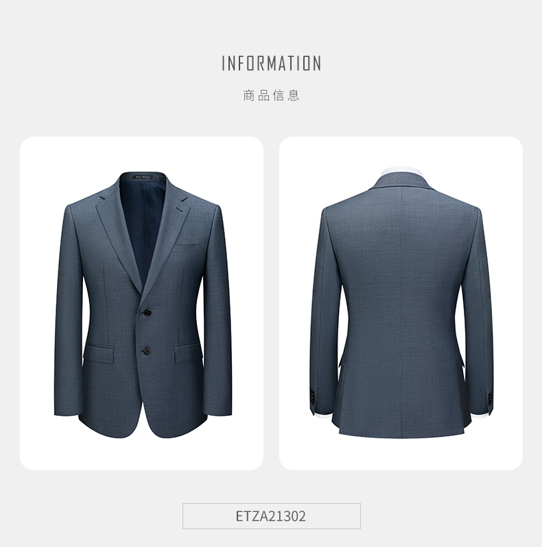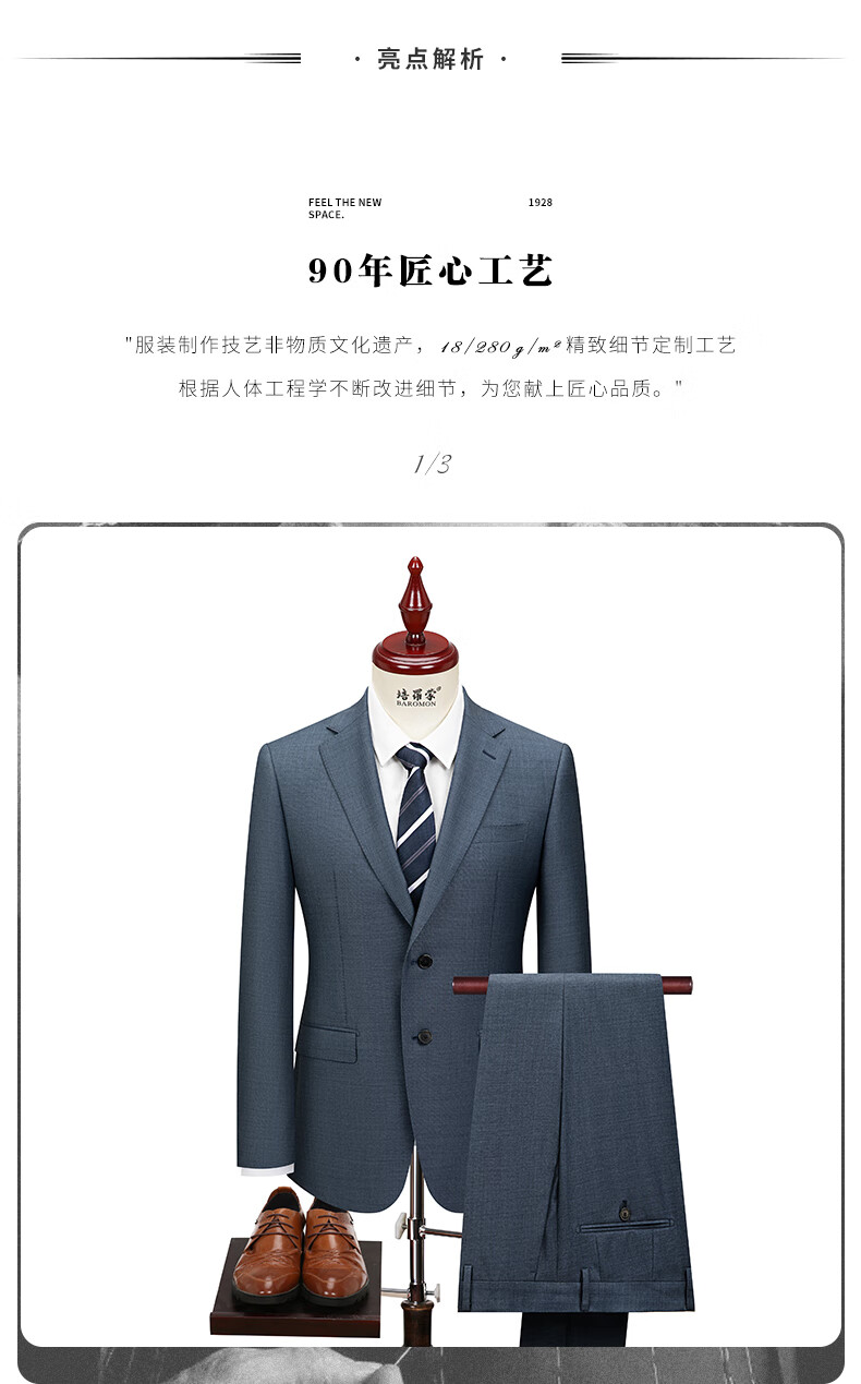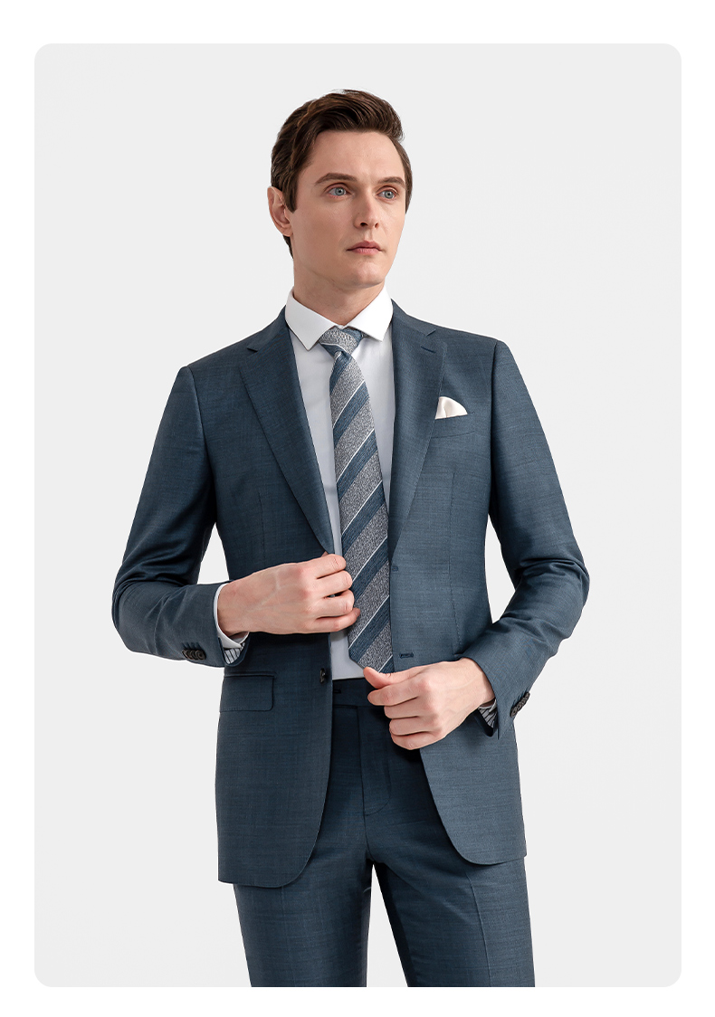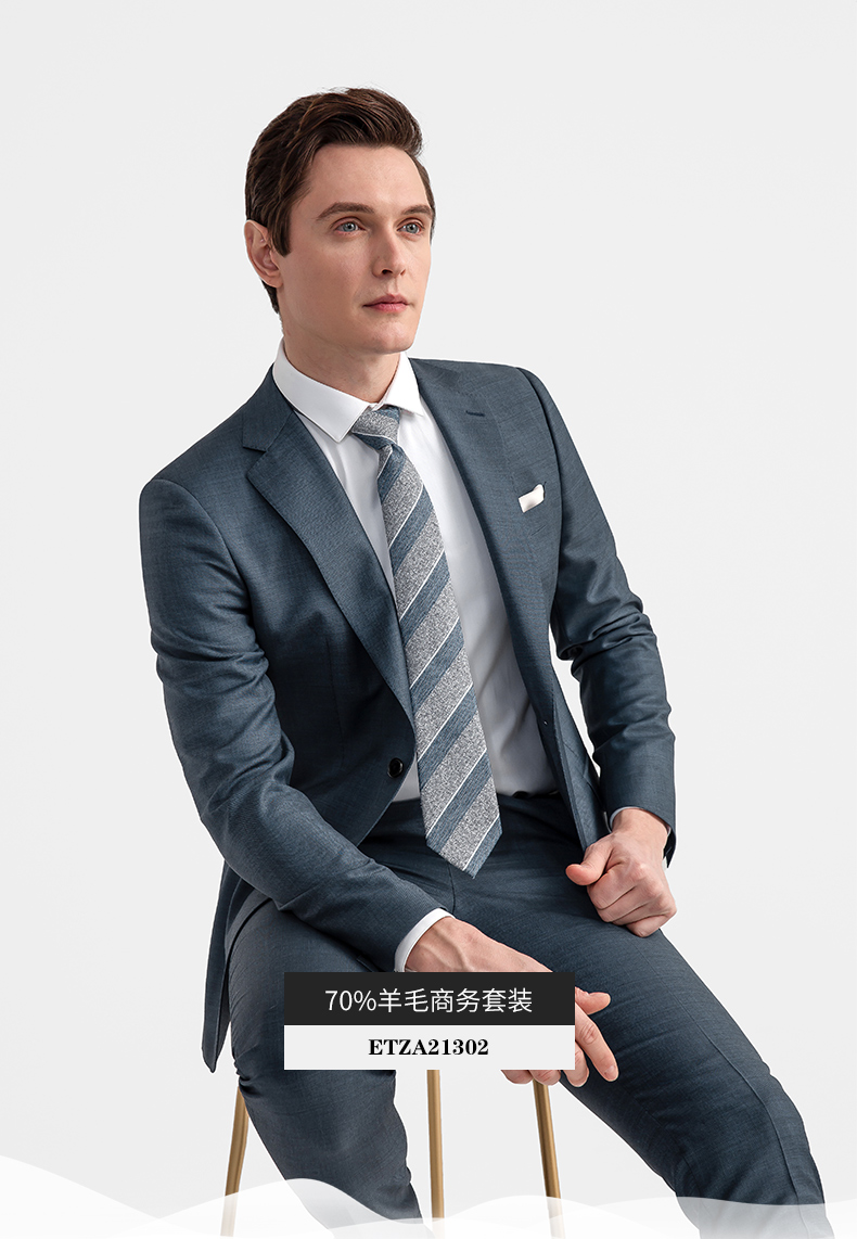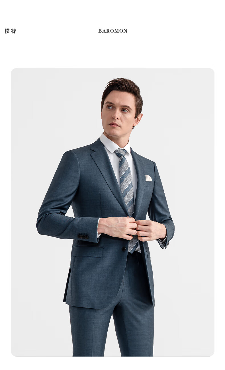 BAROMON 70% Wool Suit Men's Business Light Formal Suit Men's Suit Complete Men's Business Suit Men's Two-piece Set Blue Gray 175A Please note the size of the trousers