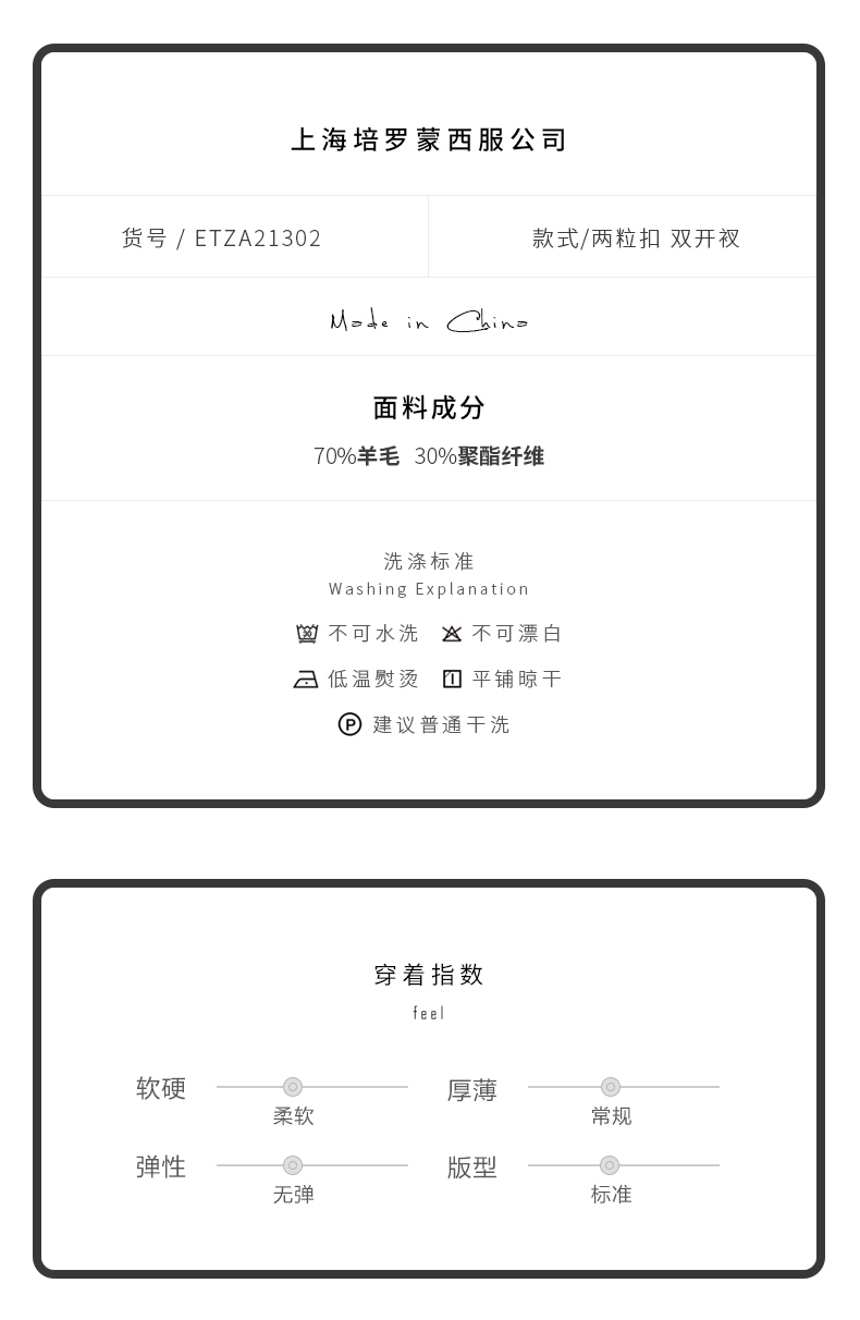 China (cm) 165 / 88-90 170 / 96-98 175 / 108-110 180 / 118-122 185 / 126-130
