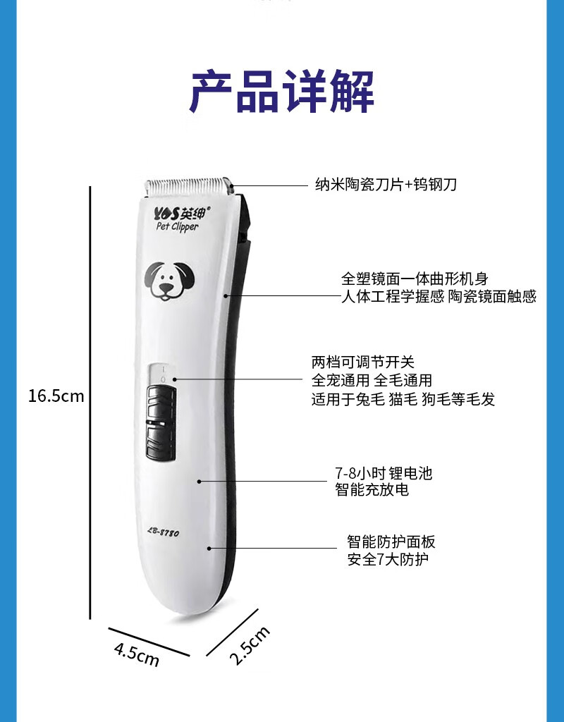Yingshen pet electric clipper dog shaver pet shop grooming cat pedicure hair clipper shaving dog hair razor Teddy clipper (3 heads for the whole body)