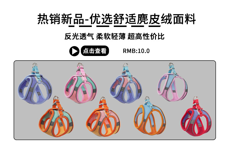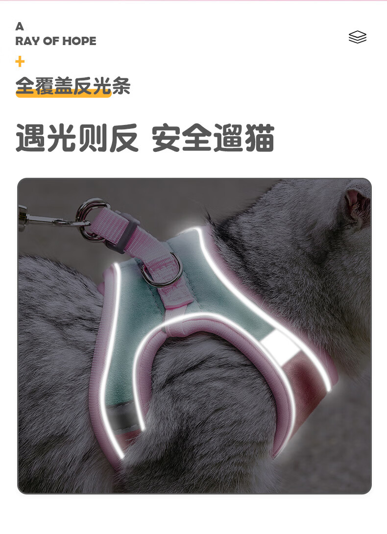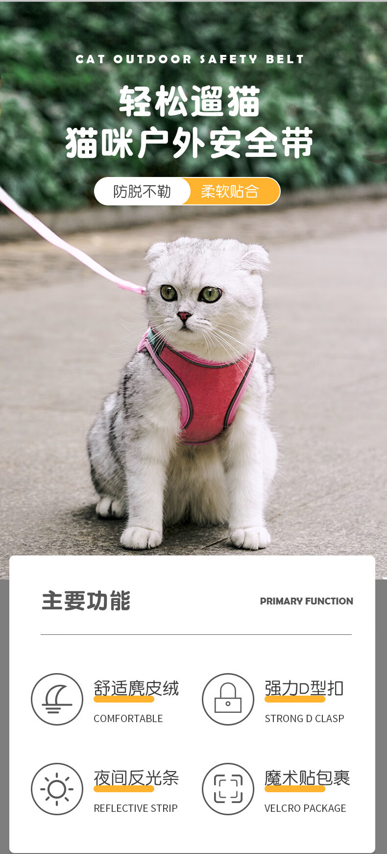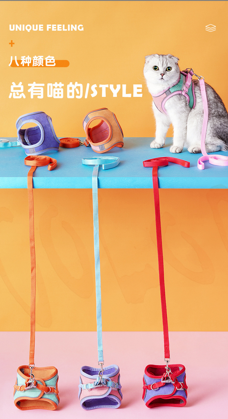 PEITE PET Cat Traction Rope Vest Type Harness When Going Out to Prevent Break-Out Cat Walking Rope Cute Kitten Reflective Traction Rope Blue and Pink Color Matching Comfortable Suede Rope Length 1.5m M Size (Chest 30-36cm) Suitable for 5-8 Jin Jin equals 0.5 kg cat